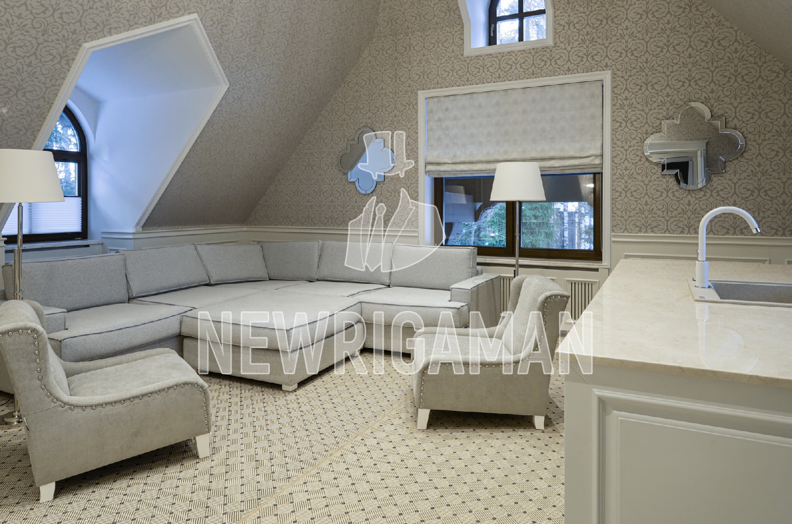 3 этаж - холл, бильярдная, студия с с/у и гардеробной, техническое помещение.