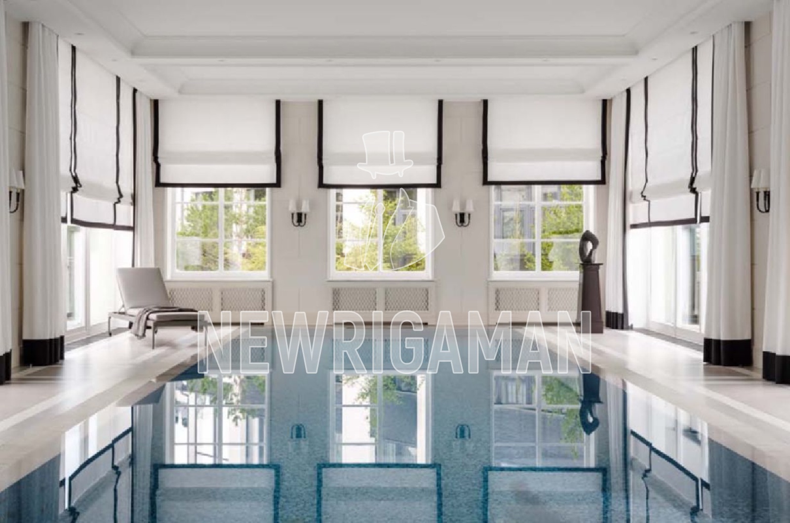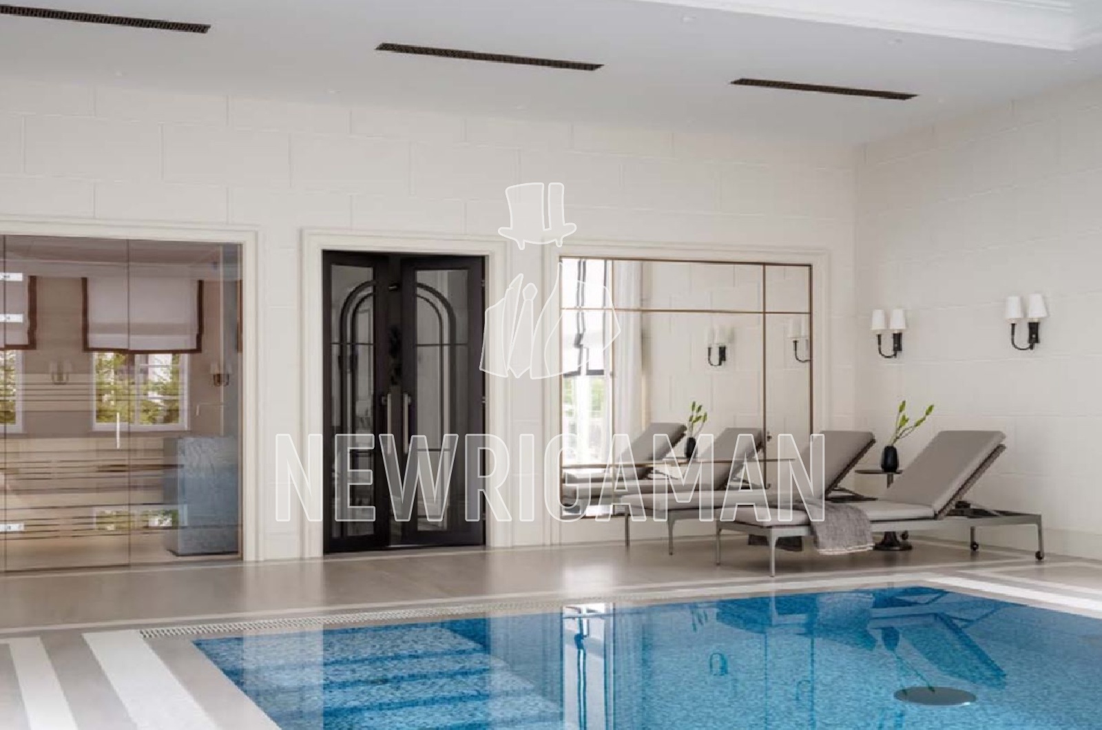 1 этаж - прихожая, холл, 2 гардеробные, гостиная, 2 гостевых с/y, мини-кухня, кухня-столовая, кухня рабочая зона, кабинет, постирочная, c/y персонала, СПА зона, массажная, бассейн, сауна, c/y,