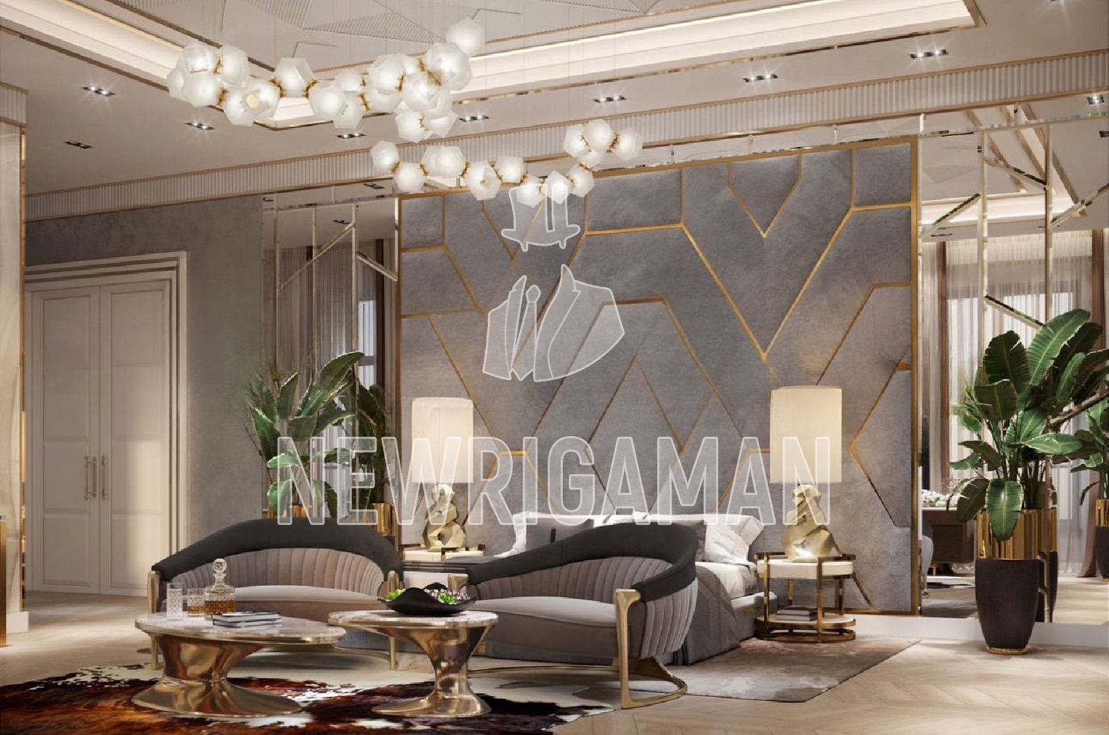 1 этаж - холл, прихожая, гардеробная, гостиная с камином, кухня, совмещенная с обеденной зоной, 2 спальни с гардеробными и с/у, комната отдыха, с/у, кладовая, 3 террасы,