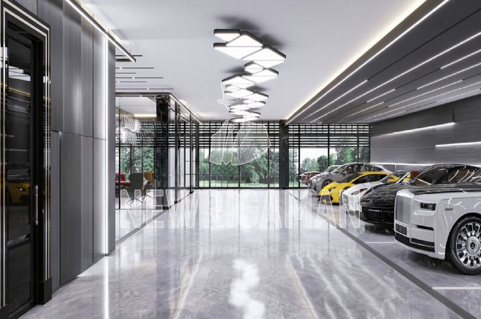 Цоколь - гараж на 20 автомобилей с панорамными окнами и автомобильным лифтом. Также планировкой предусмотрена спа-зона с бассейном, сауной, джакузи, хаммамом и душевой, с/у, терраса.