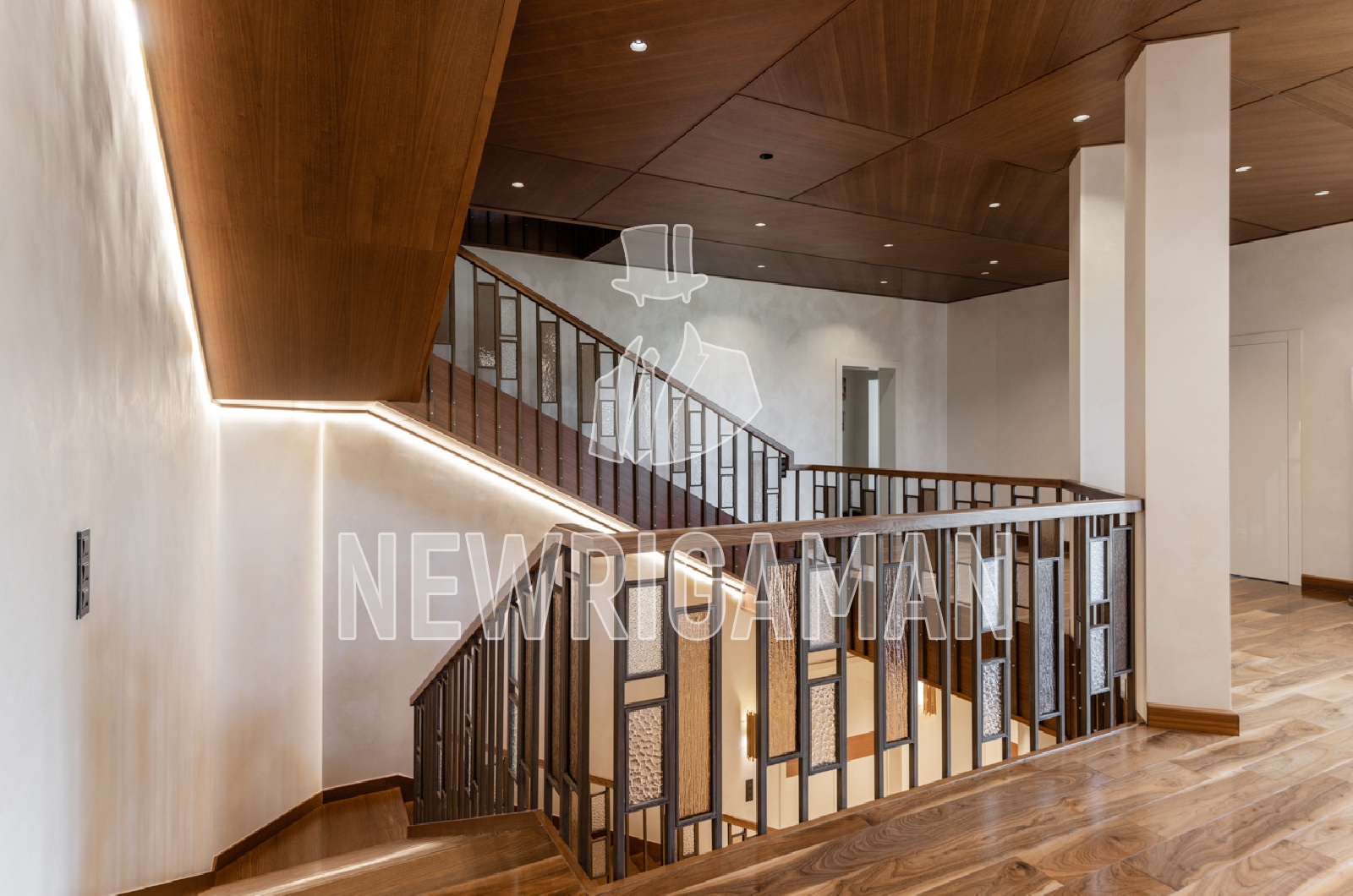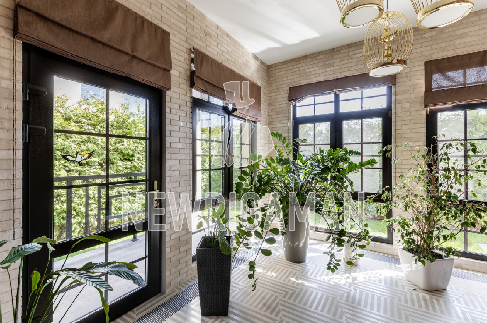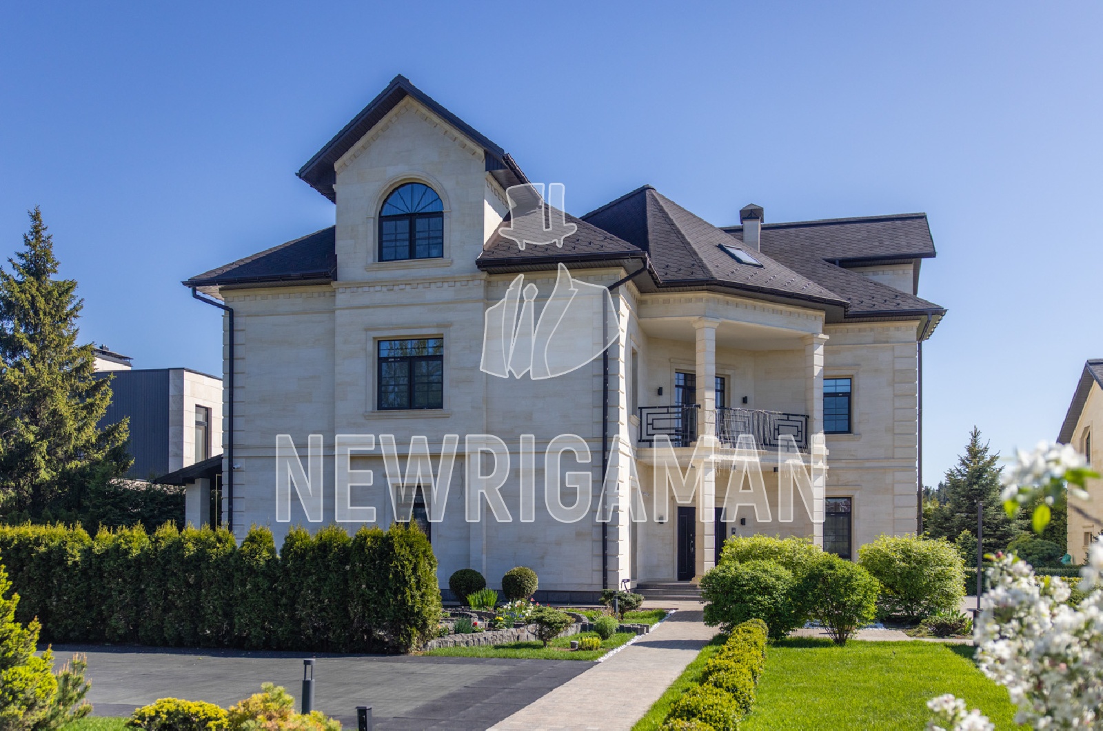 Продажа загородного дома общей площадью 700 кв.м. Новорижское шоссе, 19 км от МКАД. Коттеджный поселок Миллениум Парк. Этот двухэтажный дом с премиальной отделкой предлагает комфорт и роскошь наивысшего уровня. Полностью меблирован и оснащен техникой ведущих производителей. Светлая гостиная вытянута вдоль 3 больших окон. Кухня и столовая спланированы без стен и перегородок. Столовая выходит в зимний сад, окруженный с двух сторон панорамными окнами. Расположен дом всего в 2 минутах ходьбы от прекрасного парка Лабиринт и в 4 минутах ходьбы от двух каналов с живописными прогулочными тропами. На участке общей площадью 32 сотки расположена баня из клееного бруса, выполнен дорогой ландшафтный дизайн, подчеркивающий респектабельность дома. Гараж на 2 автомобиля и квартира для персонала вынесены в отдельное здание, обеспечивая комфортное проживание и удобство. Также на участке создано мини-футбольное поле, где вы сможете проводить время с друзьями и семьей.