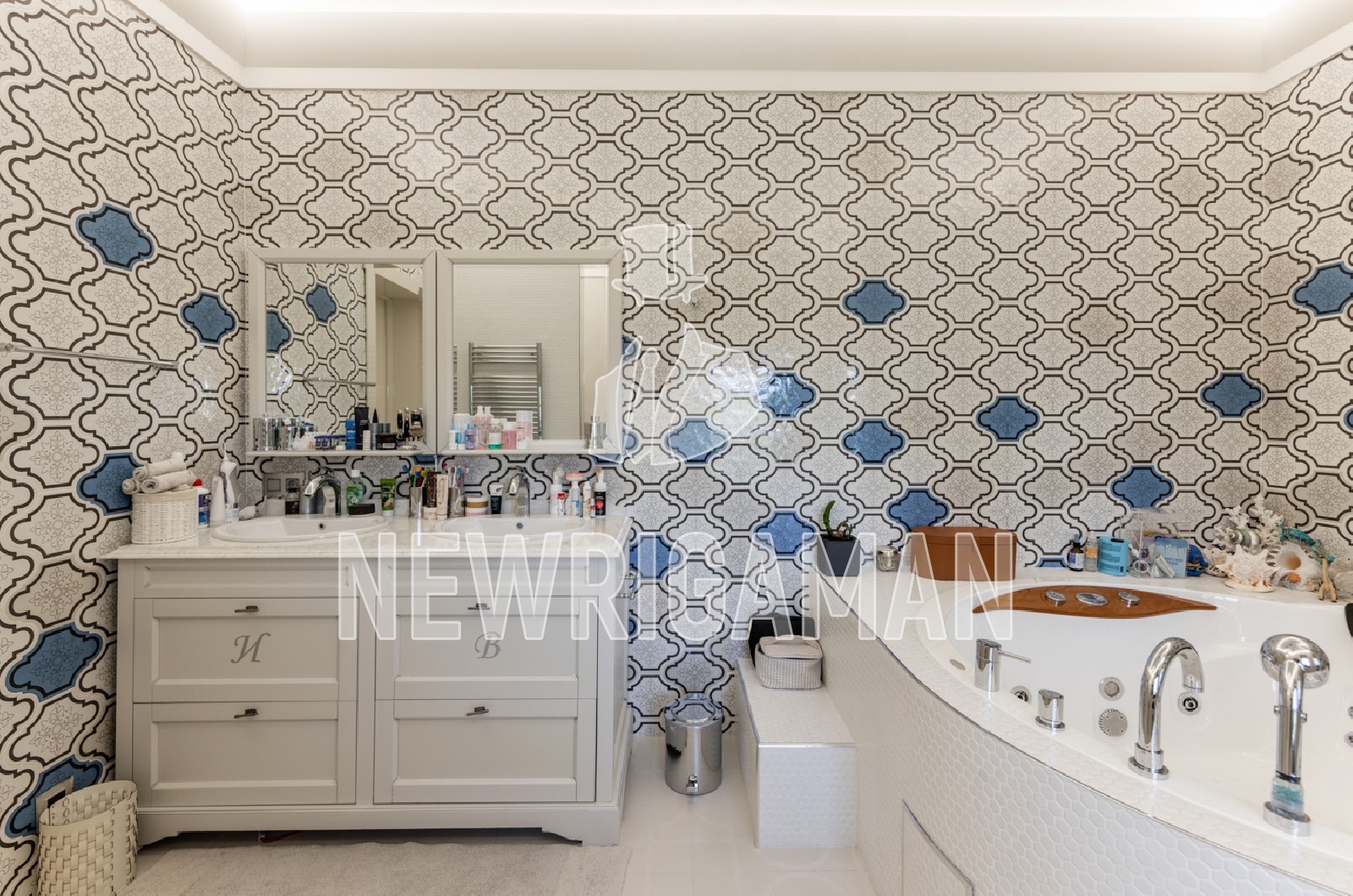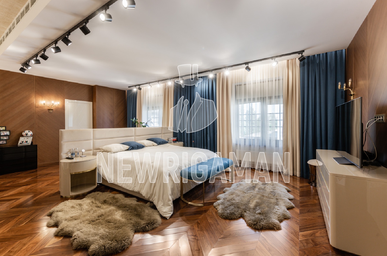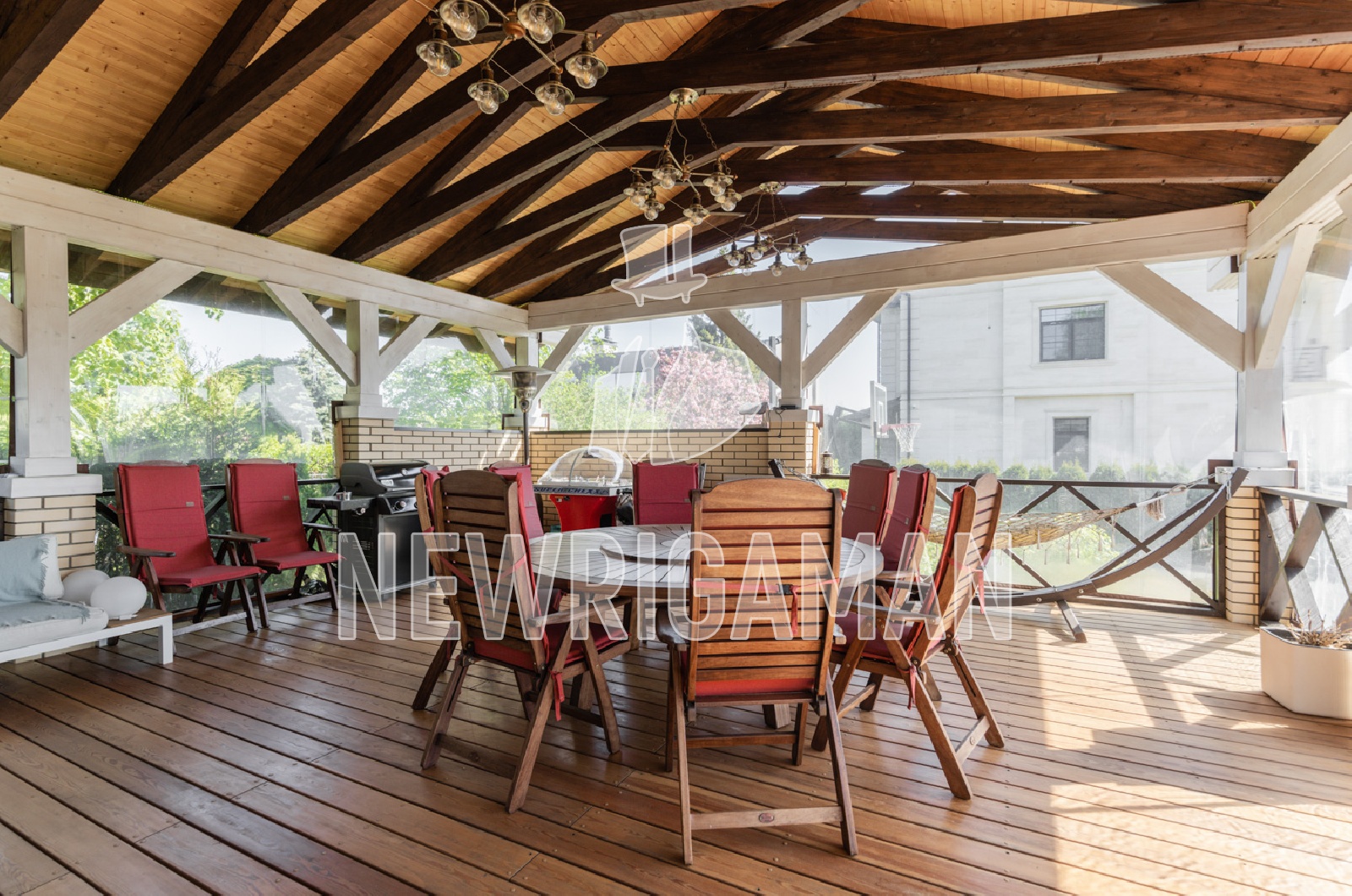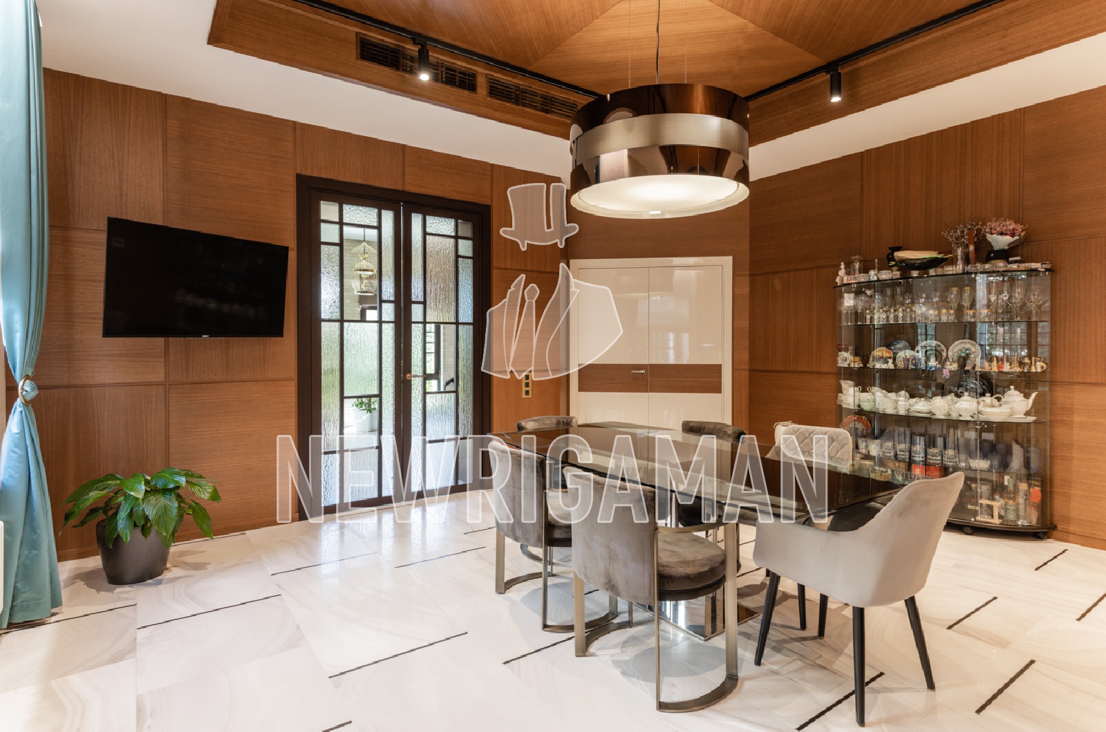 Продажа загородного дома общей площадью 700 кв.м. Новорижское шоссе, 19 км от МКАД. Коттеджный поселок Миллениум Парк. Этот двухэтажный дом с премиальной отделкой предлагает комфорт и роскошь наивысшего уровня. Полностью меблирован и оснащен техникой ведущих производителей. Светлая гостиная вытянута вдоль 3 больших окон. Кухня и столовая спланированы без стен и перегородок. Столовая выходит в зимний сад, окруженный с двух сторон панорамными окнами. Расположен дом всего в 2 минутах ходьбы от прекрасного парка Лабиринт и в 4 минутах ходьбы от двух каналов с живописными прогулочными тропами. На участке общей площадью 32 сотки расположена баня из клееного бруса, выполнен дорогой ландшафтный дизайн, подчеркивающий респектабельность дома. Гараж на 2 автомобиля и квартира для персонала вынесены в отдельное здание, обеспечивая комфортное проживание и удобство. Также на участке создано мини-футбольное поле, где вы сможете проводить время с друзьями и семьей.
