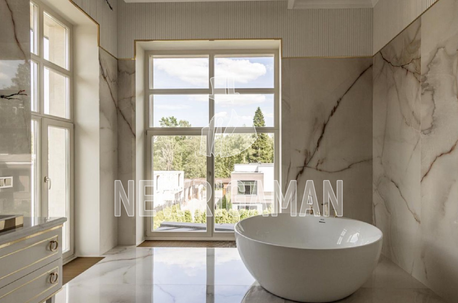 Продажа загородного дома площадью 702 кв.м. Рублево-Успенское шоссе, 21 км от МКАД. Коттеджный поселок Ново-Успенский. Дом представляет собой великолепный пример современной архитектуры с кирпичными стенами и монолитными перекрытиями. Фасады выполнены из натурального камня, а деревянные панорамные окна из лиственницы добавляют интерьеру естественного света и уюта. В отделке использованы высококачественные материалы, в частности итальянский керамогранит, натуральный мрамор, а также представлена премиальная сантехника из Италии и Германии. Функционально удобная планировка, просторные помещения и панорамное остекление расширяют пространство и предусматривают комфортное проживание для большой семьи. Современные инженерные системы включают центральное кондиционирование, автоматическую регулировку теплых полов и конвекторное отопление, создавая комфортные условия в любое время года. Площадь участка 15 соток.