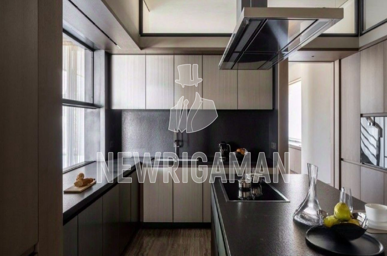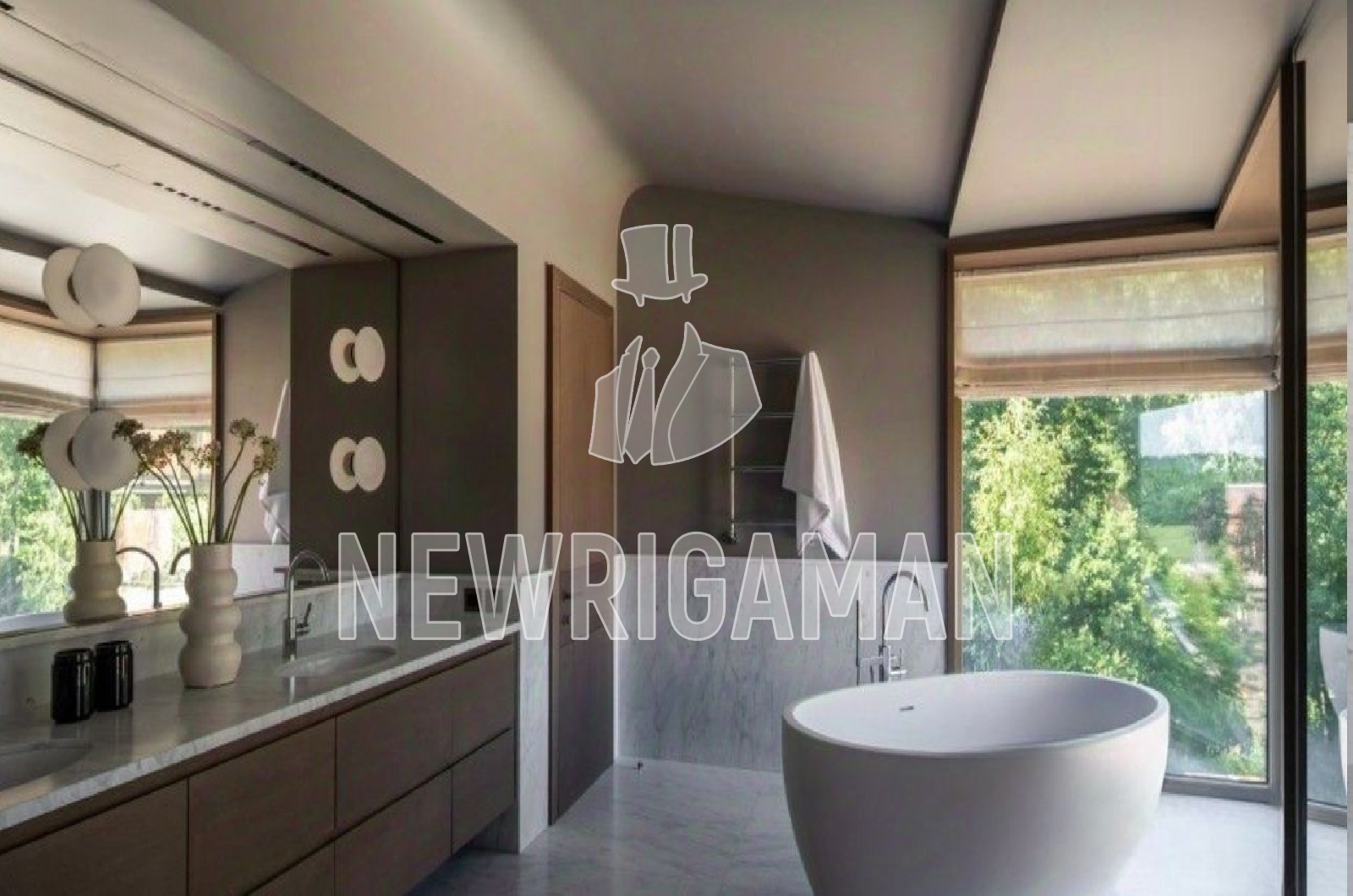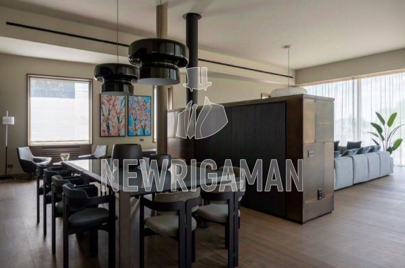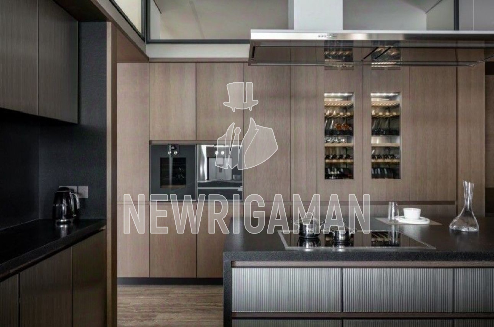 1 этаж -холл, гардеробная, кухня, столовая, гостиная-салон с панорамным остеклением и камином, зона спа: фитнес-зал, массажная, сауна, хамам, с/у, гостевой блок, гараж на 3м/м, блок для персонала, рабочая кухня, кладовая, постирочная,