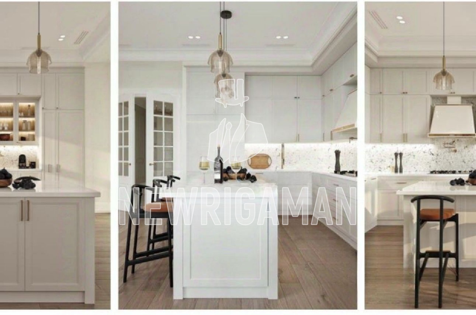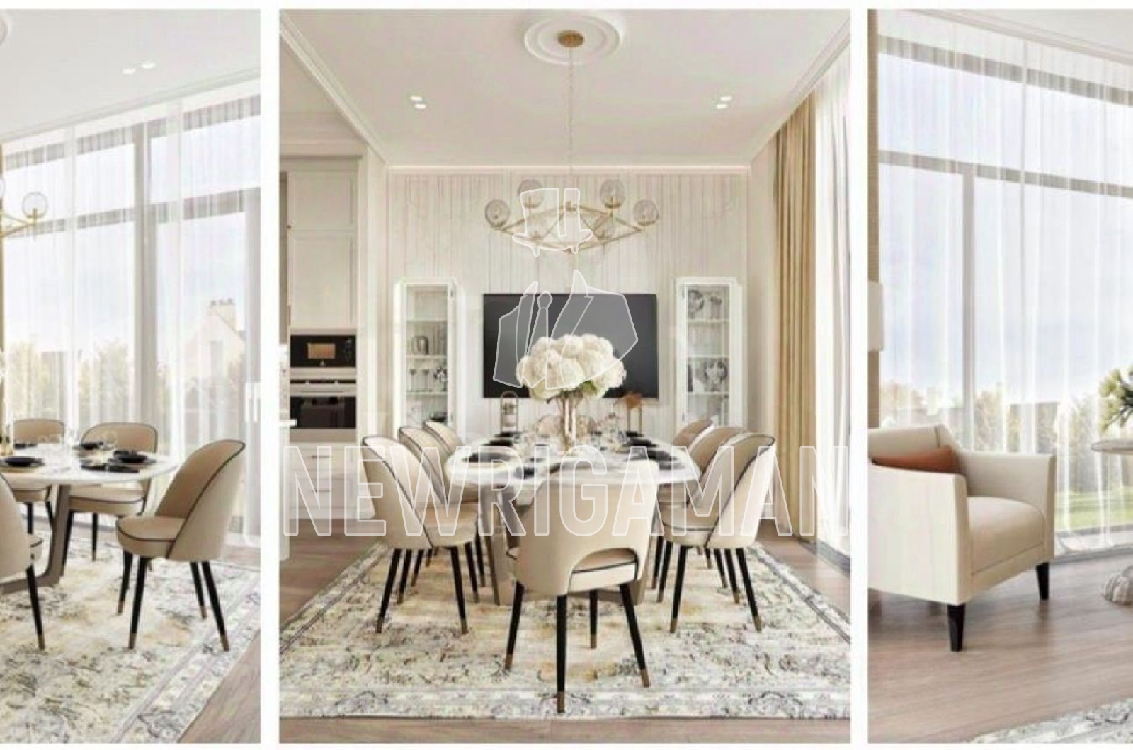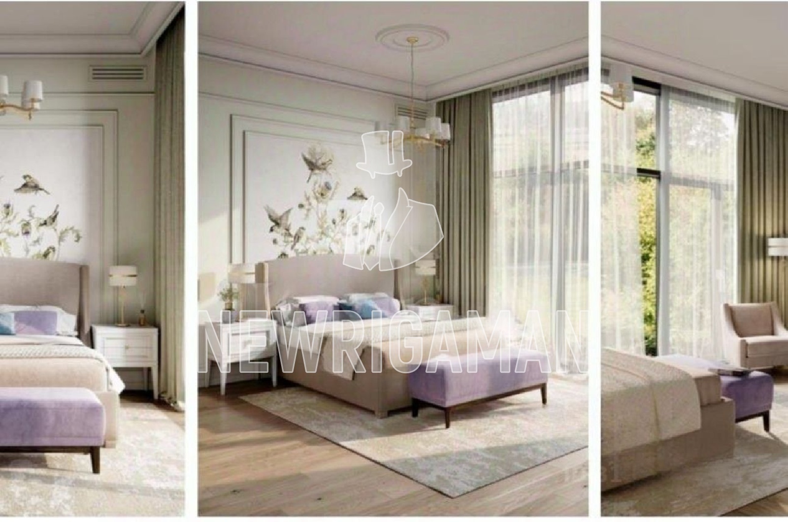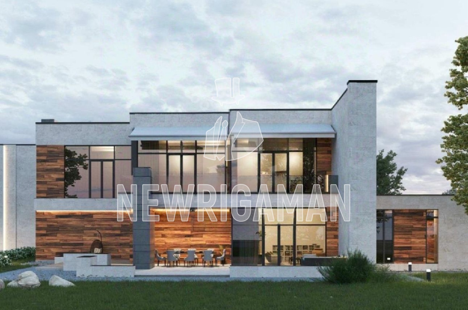 1 этаж - холл, гардеробная, кладовая, гостевая спальня с с/у, гостиная со вторым светом, кухня столовая, выход на террасу с зимним садом, детская спальня с с/у и гардеробной совмещена с блоком для няни (спальня, с/у) с отдельным входом, котельная, блок для персонала с отдельным входом: гостиная, 2 спальни с санузлами, хоз. помещение, гараж на 1 м/м с кладовой,
