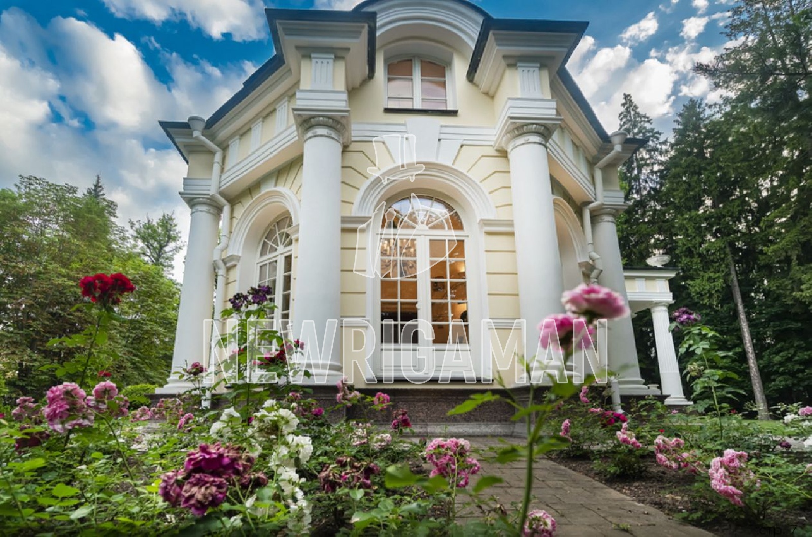 Продажа загородного дома площадью 970 кв.м. Рублево-успенское шоссе 9 км от МКАД. Коттеджный посёлок Ландшафт. Дом построен в 3 этажа, под ключ. Усадьба от известного архитектора в стиле слегка ироничного итальянского барокко построена в густом хвойном лесу, превращенном в небольшой парк. Парадный фасад почти полностью симметричный и, с учетом барочной стилистики, достаточно сдержанный. Внутреннее убранство усадьбы соответствует его архитектуре: дом наполнен антикварными предметами интерьера, лепниной ручной работы, специально подобранные для этого дома дубовые полы, старинный камин, множество деталей было создано или привезено индивидуально под этот проект. Отдельно стоящий гараж на 2 м/м с квартирой для персонала на втором этаже.