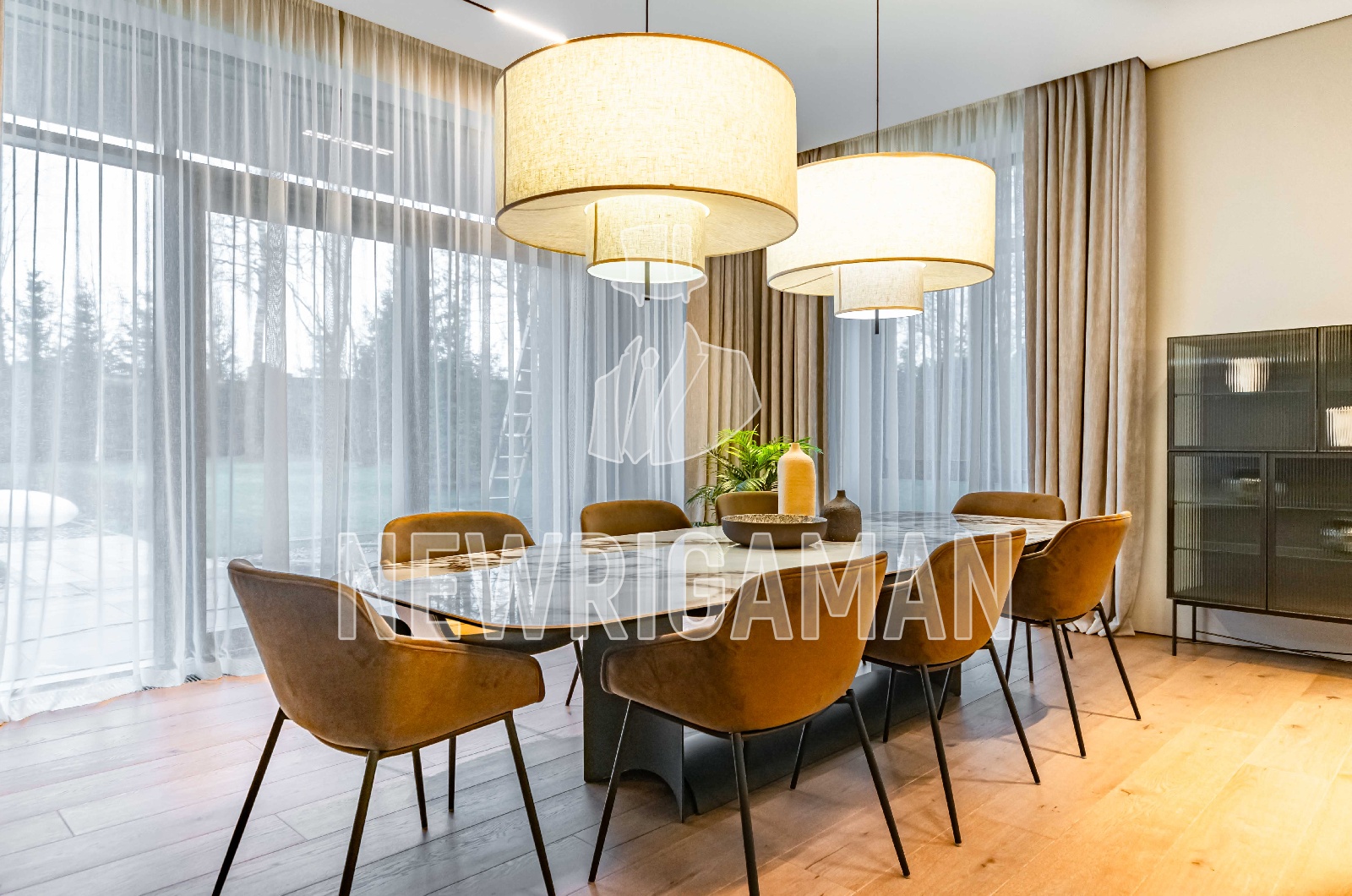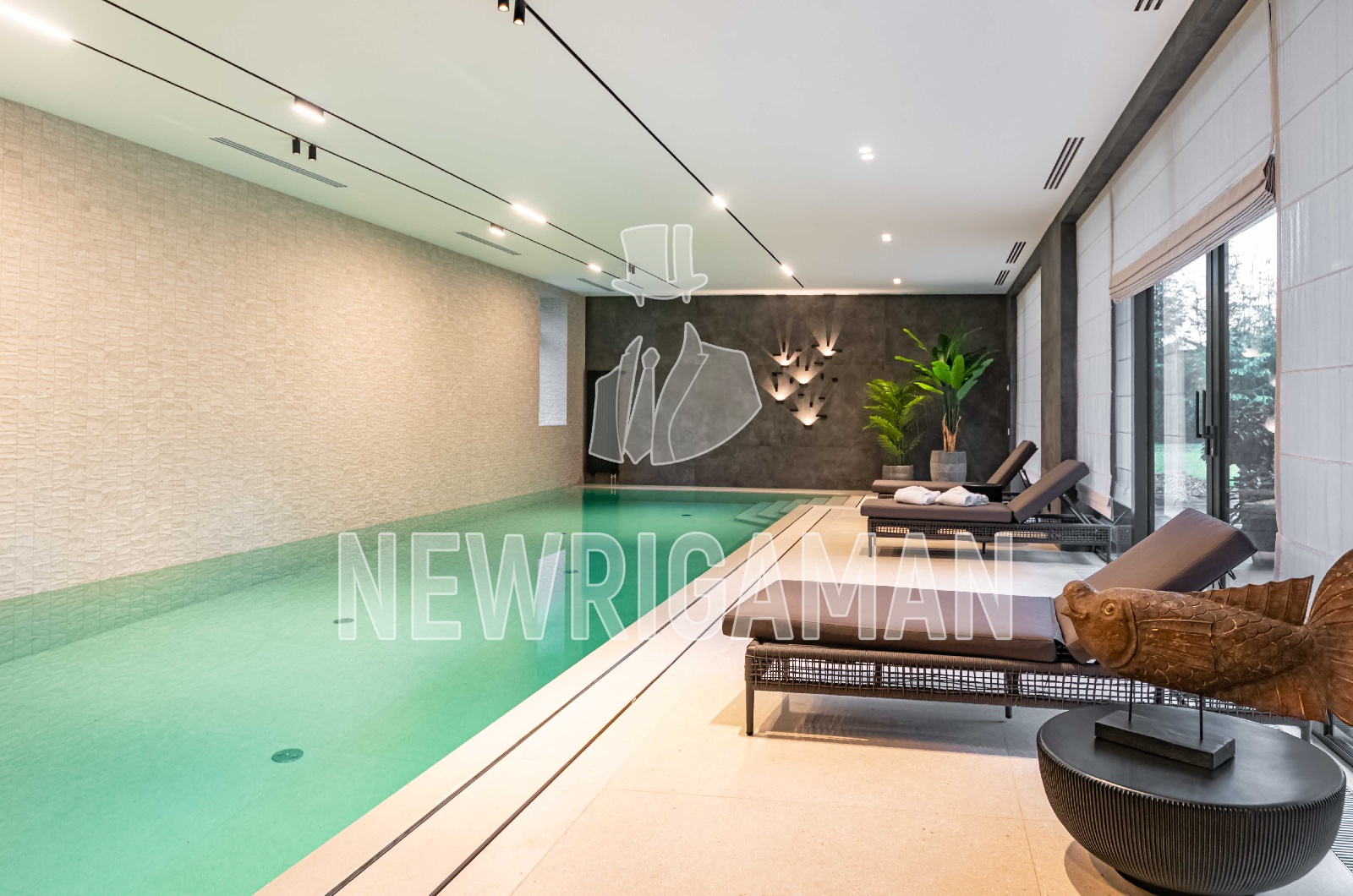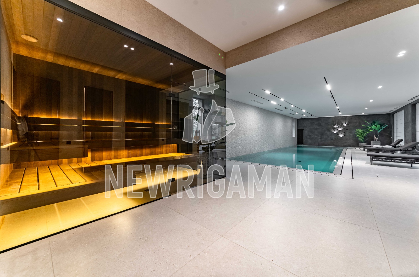 1 этаж - холл, гардеробная, гостиная с камином, кухня-столовая, кабинет, с/у, терраса, спа зона, бассейн, хамам, сауна, блок для персонала, спальня, гараж,