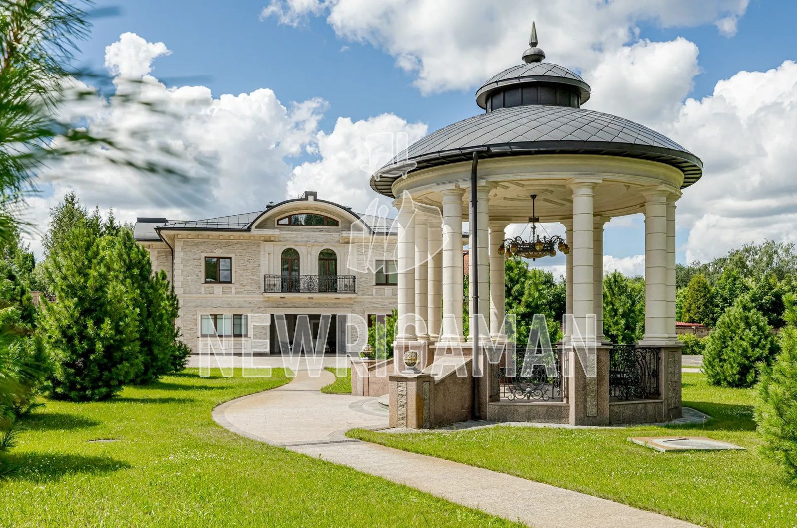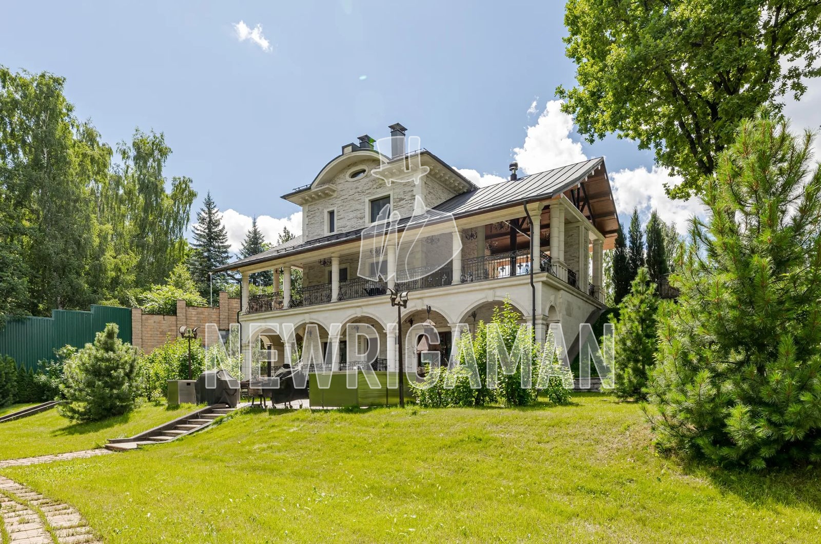 Продажа загородного дома общей площадью 2350 кв.м. Коттеджный поселок Горки-2. Рублево-Успенское шоссе, 15 км от МКАД. Дом построен в 3 этажа, без отделки. Дом с бассейном на ландшафтном участке с вековыми деревьями и выходом к Москве-реке. На участке расположены отдельно стоящий дом для гостей с двухэтажным банным комплексом из сруба. Гараж на 4 машиноместа с 2-мя квартирами для персонала и охраны. Залита площадка под футбольное поле, есть фруктовый сад. Площадь участка 120 соток.
