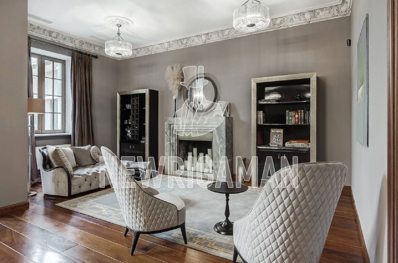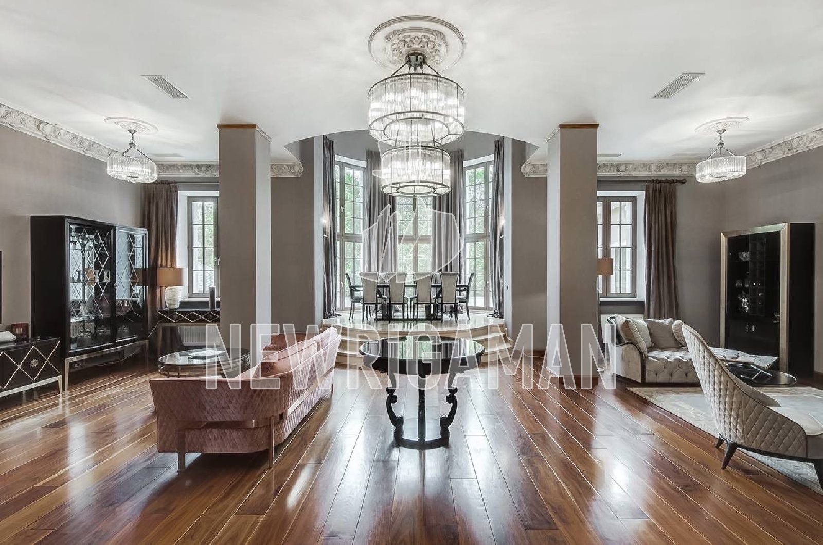 1 этаж - холл с гардеробной зоной, гостиная со вторым светом и камином, кухня, отделенная от просторной столовой, гостевая спальня с гардеробной и гостевым с/у, кабинет, спа зона под отделку - с сауной и душевой, гараж на два машиноместа,