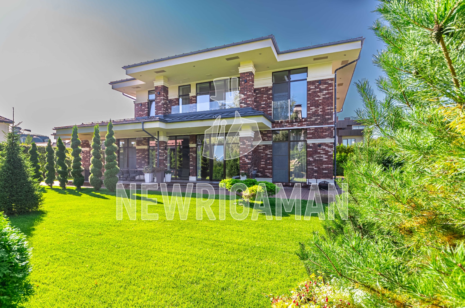Системы: умный дом, очистки воды, газовый котёл - Buderos. На просторном участке площадью 12 соток выполнен ландшафтный дизайн. По периметру участка высажены туи, создающие атмосферу уединения, хвойные и плодовые деревья, кустарники, выстелен газон, установлена система автополива. Имеется спортивная площадка, зона барбекю.