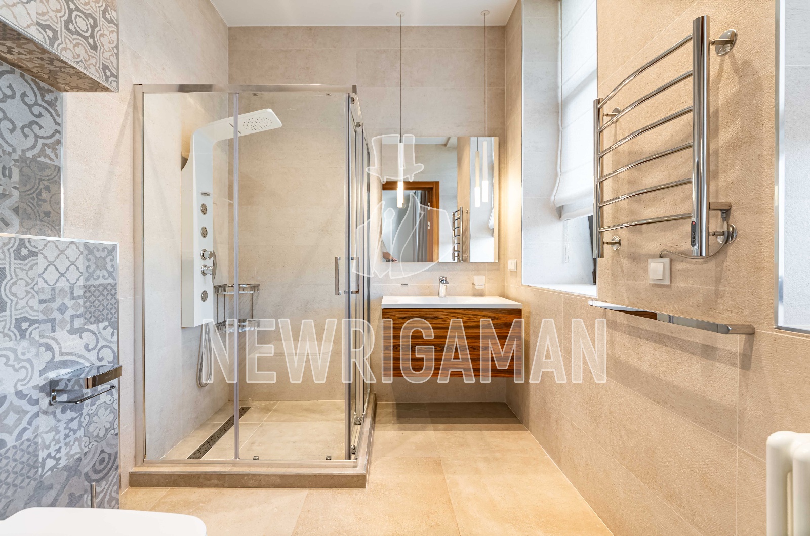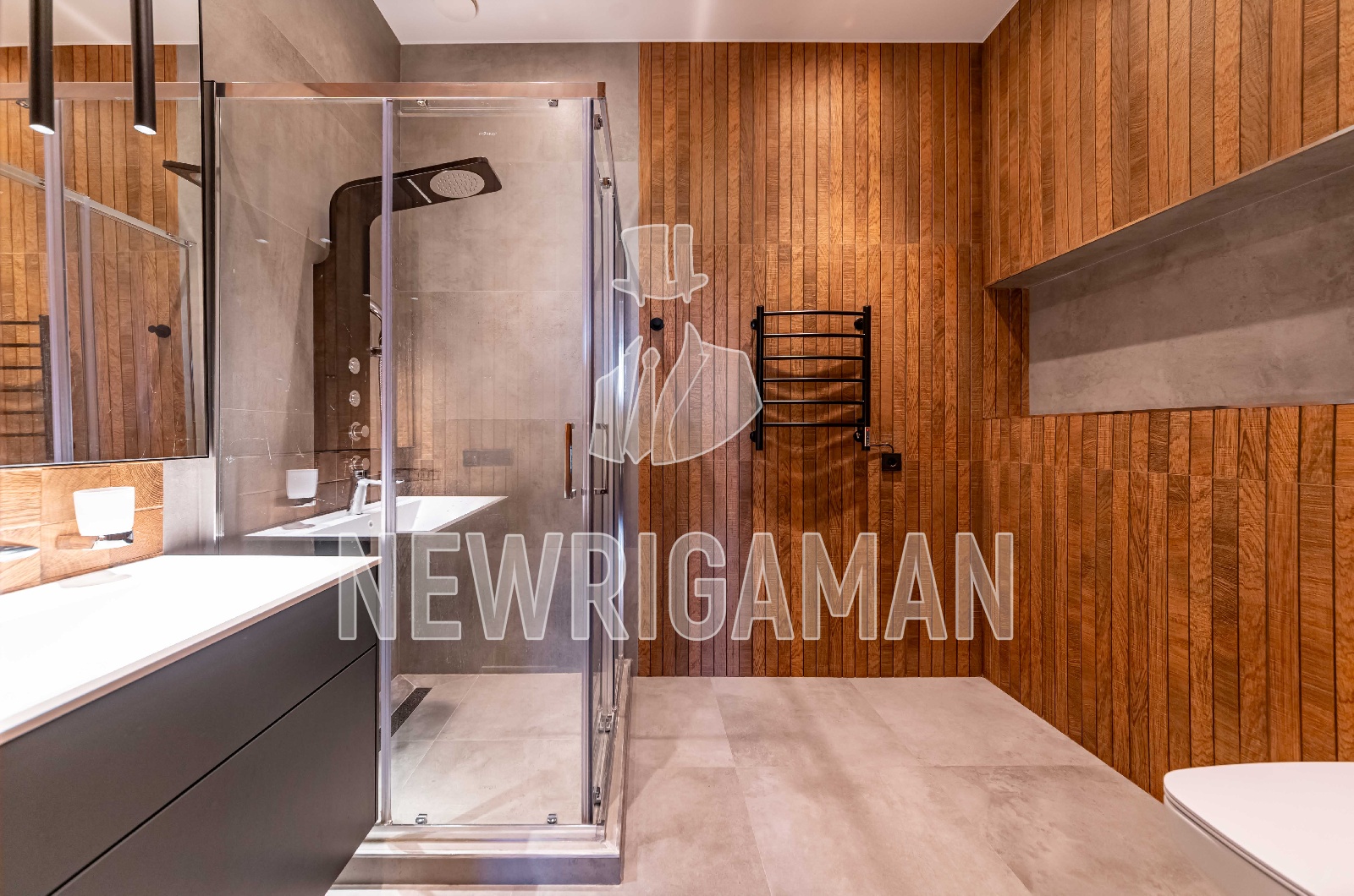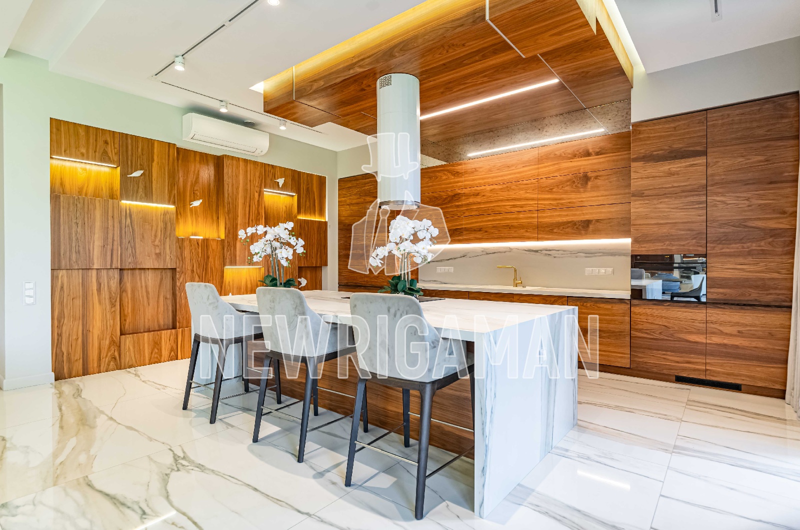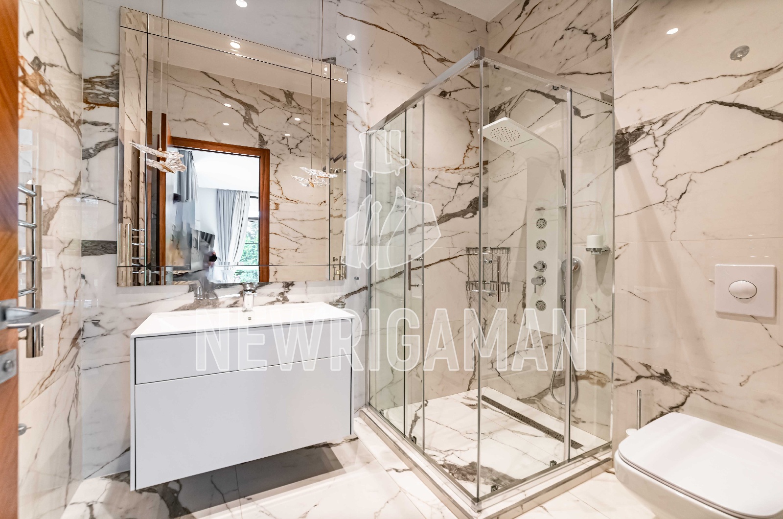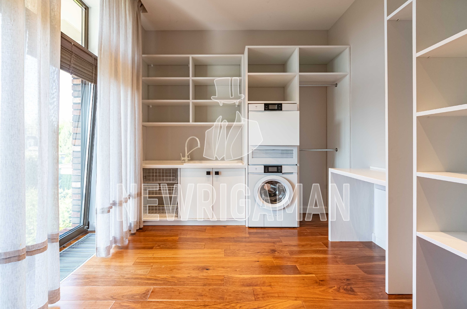Техника: посудомоечная машина, пароварка, индукционная варочная поверхность, стиральная и сушильная машина V-ZUG, кинотеатр SONY. Сантехника: Cezares Bellagio, Rimless, Jacob Delafon Terrace, Rimless, KRION Tono, Keuco Royal Reflex.