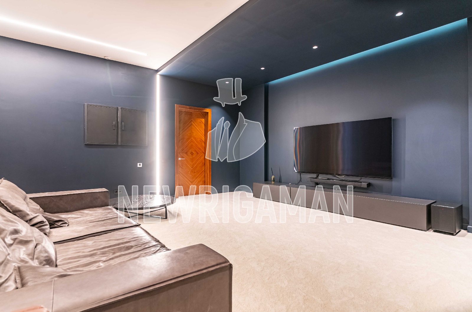 1 этаж - холл с гардеробной, объединенное пространство кухни, столовой и гостиной с выходом на террасу и зоной барбекю, кабинет-гардеробная с с/у, спальня с собственной ванной комнатой и гардеробной, гостевой с/у, кинотеатр, фитнес, котельная,