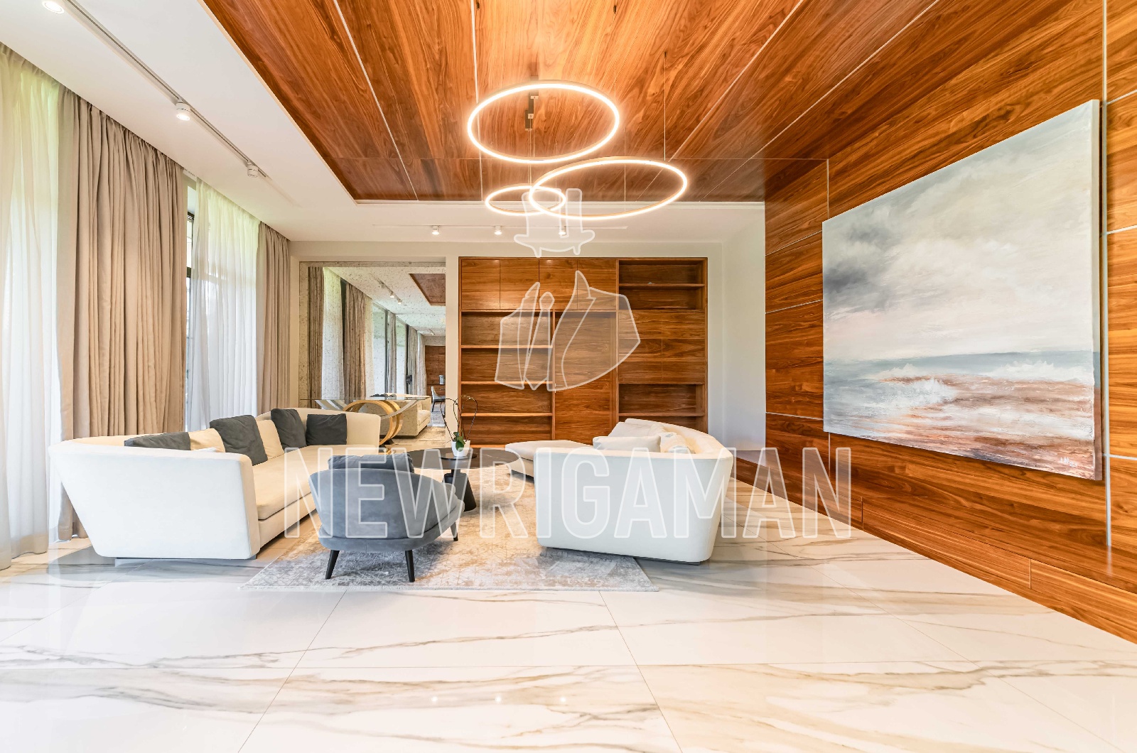 Продажа загородного дома общей площадью 450 кв.м. Новорижское шоссе, 19 км от МКАД. Коттеджный поселок Миллениум Парк. Дом построен в 2 этажа, под ключ. Интерьеры дома выполнены с использованием высококачественных материалов, а эксклюзивная мебель и предметы декора от ведущих мировых производителей подчеркивают стильный дизайн. Панорамные окна наполняют внутренние пространства естественным светом, окна жилых комнат ориентированы на 3 стороны света. На всех окнах шторы блэкаут. Мебель: Minotti, BAXTER