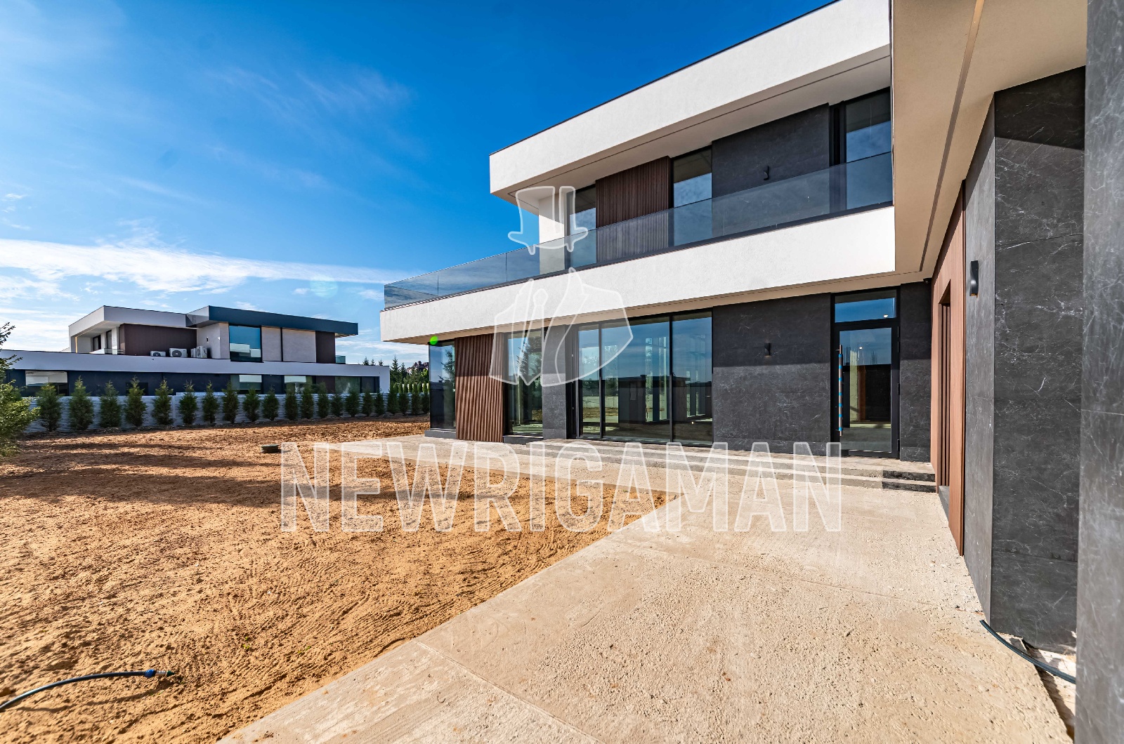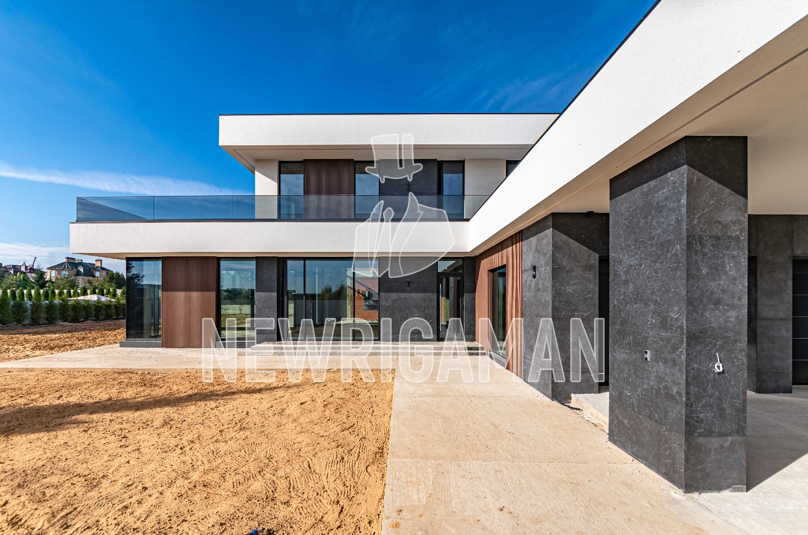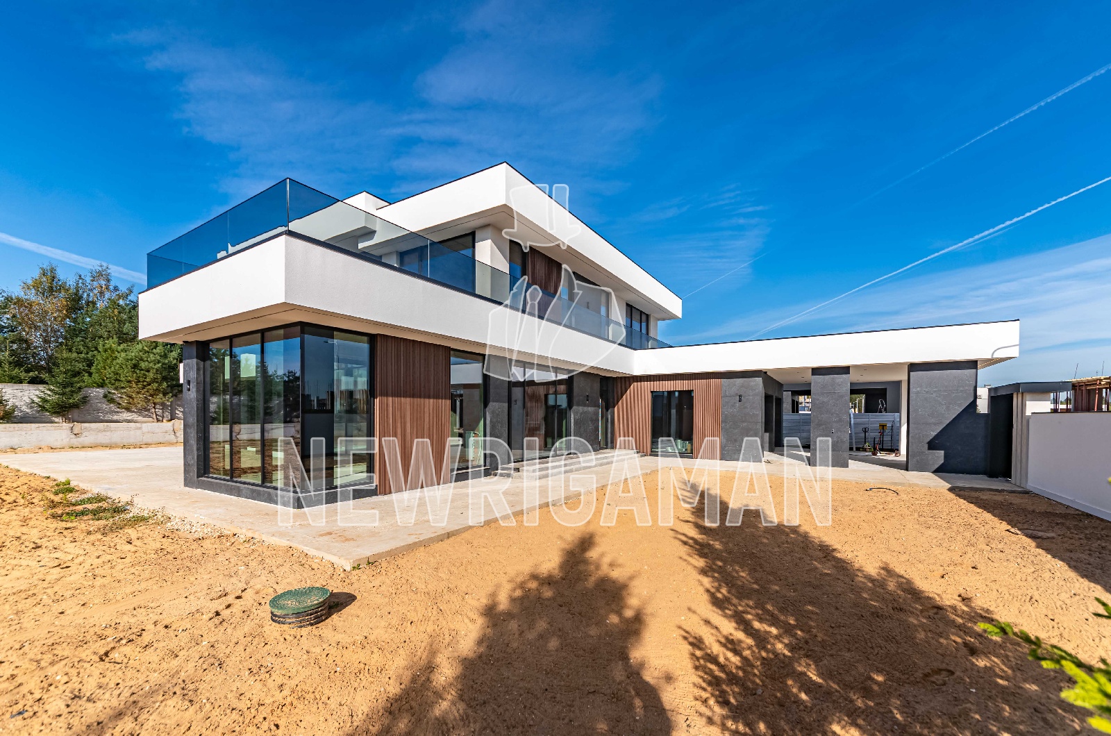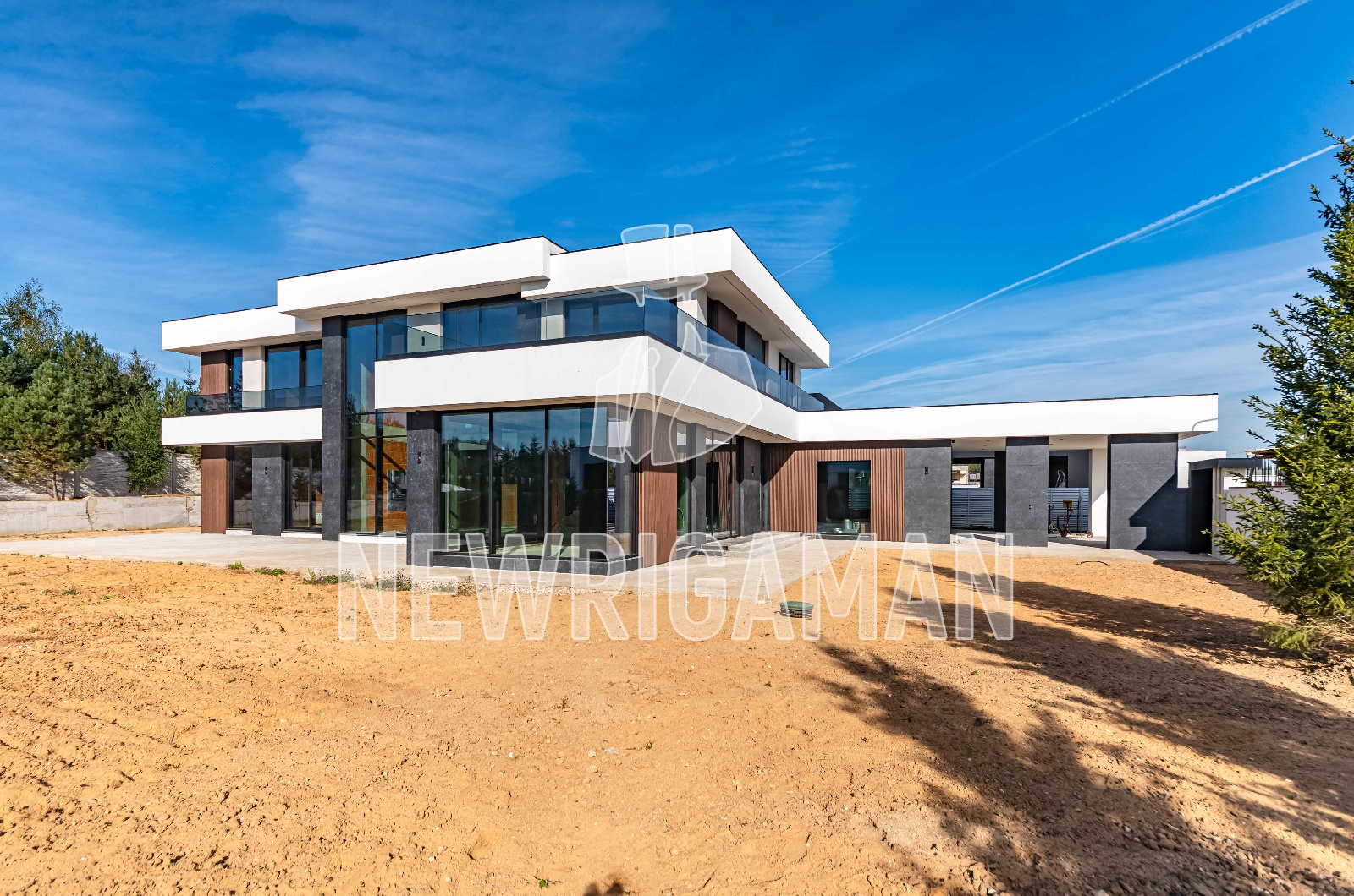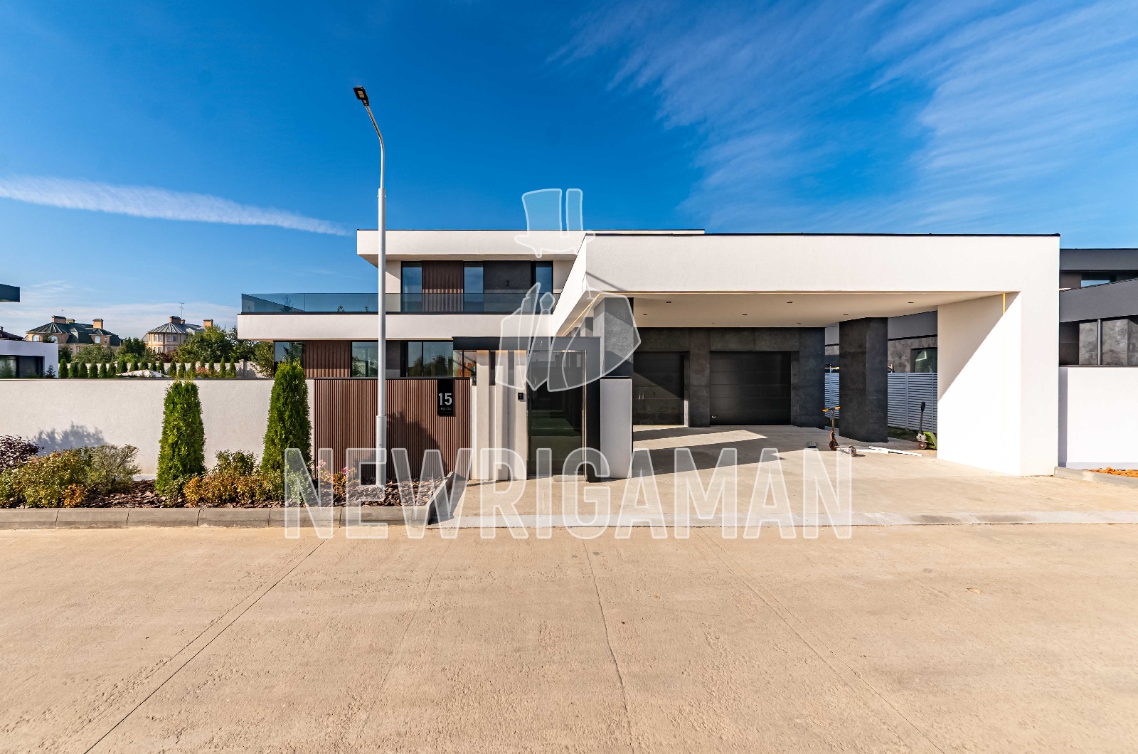 1 этаж - кухня, гостиная, столовая, бойлерная, комната для персонала с с/у, гардеробная, гостевая спальня с с/у и гардеробной, кабинет, спа зона с комнатой отдыха, навес на 2 м/м и гараж на 2 м/м,
