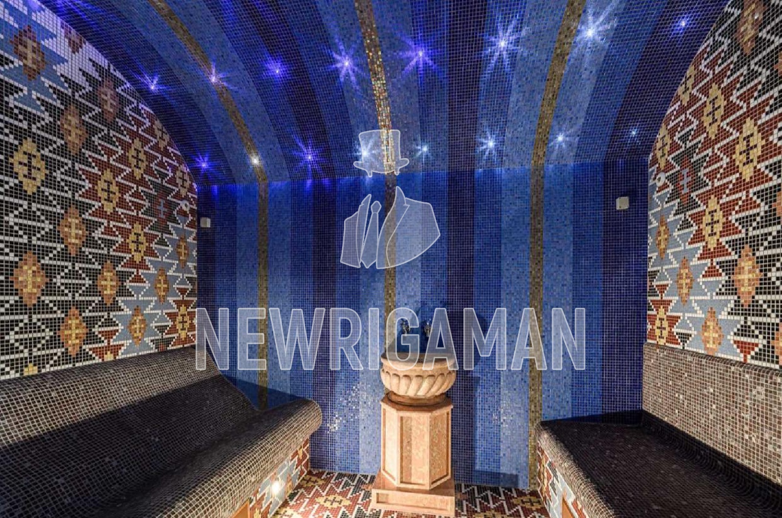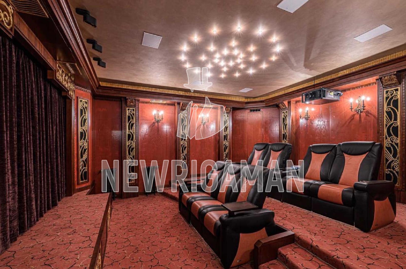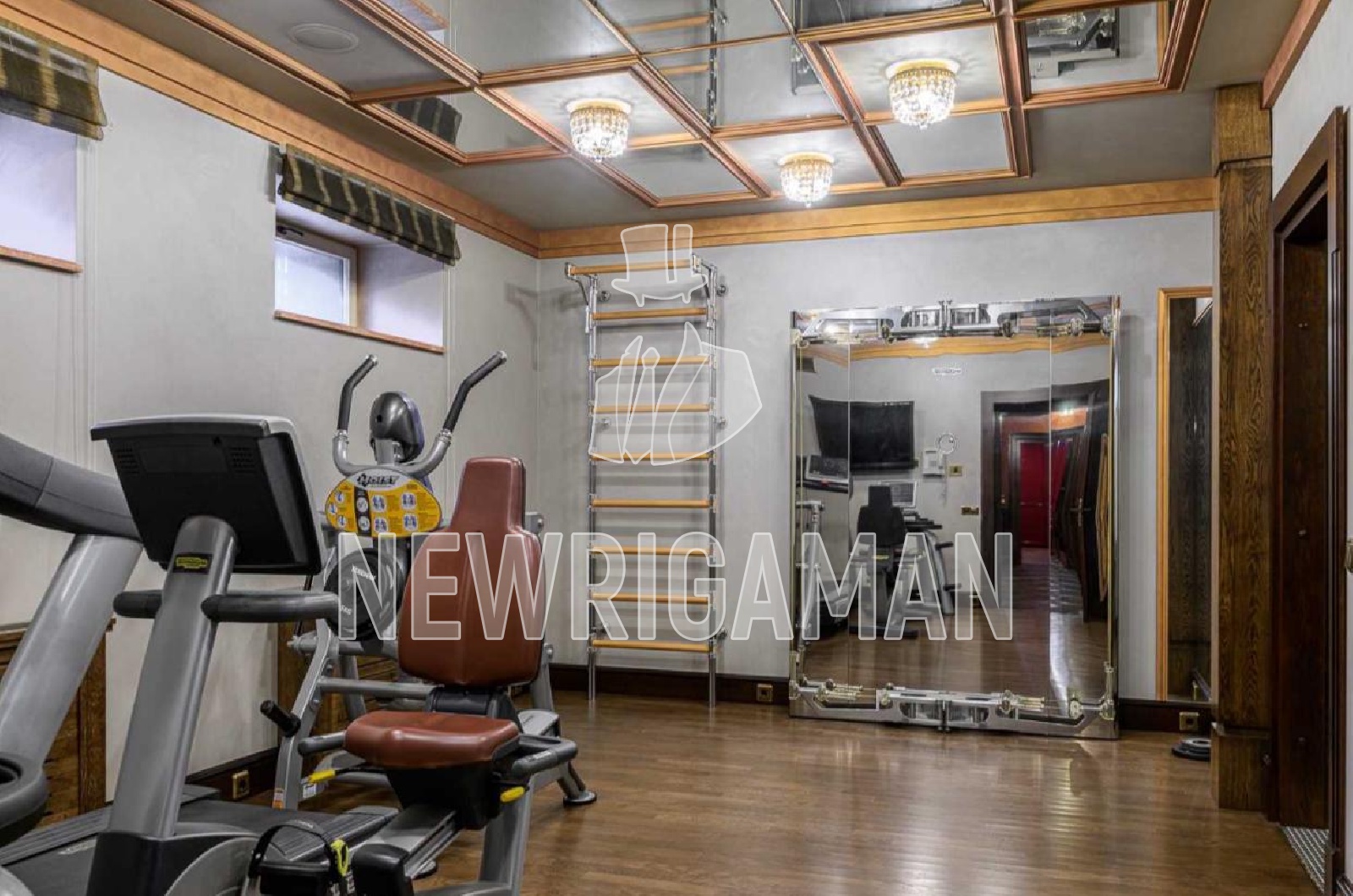 Цокольный этаж - бильярдная, домашний кинотеатр, сезонная гардеробная, гостевая спальня, с/у, спортзал, гардеробная с хранением для шуб, рабочая кухня с отдельным доступом для персонала, котельная.