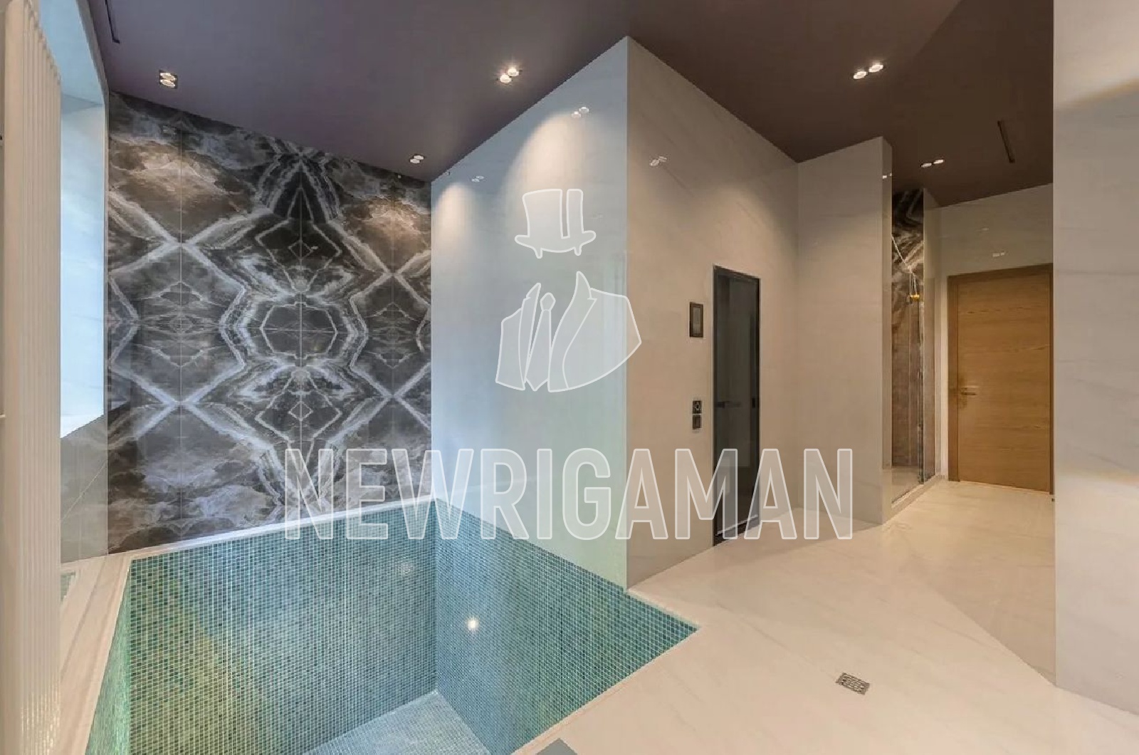 1 этаж - холл, гостиная со вторым светом и камином, кухня-столовая с выходом на террасу, гостевой с/у, гостевая спальня, спортзал, спа-зона, гардеробная, постирочная, гараж на 2 автомобиля,