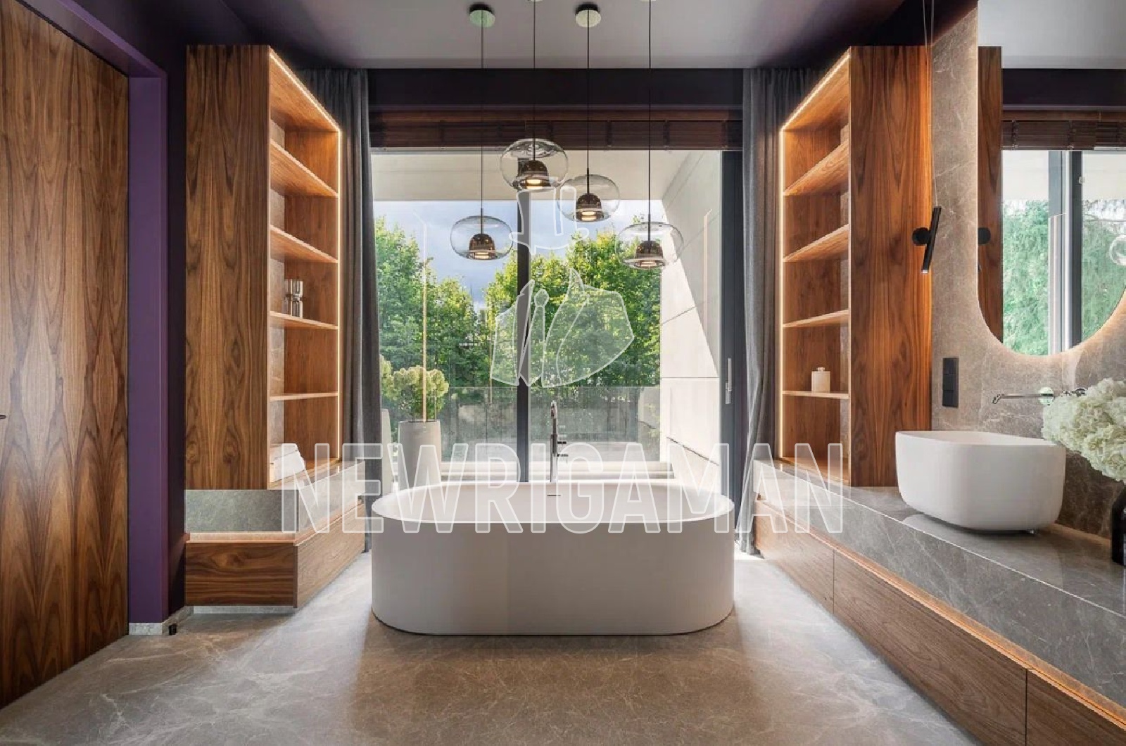 2 этаж - 4 спальни с с/у и гардеробными, кабинет, библиотека, детская игровая, 2 террасы, постирочная, блок для персонала.