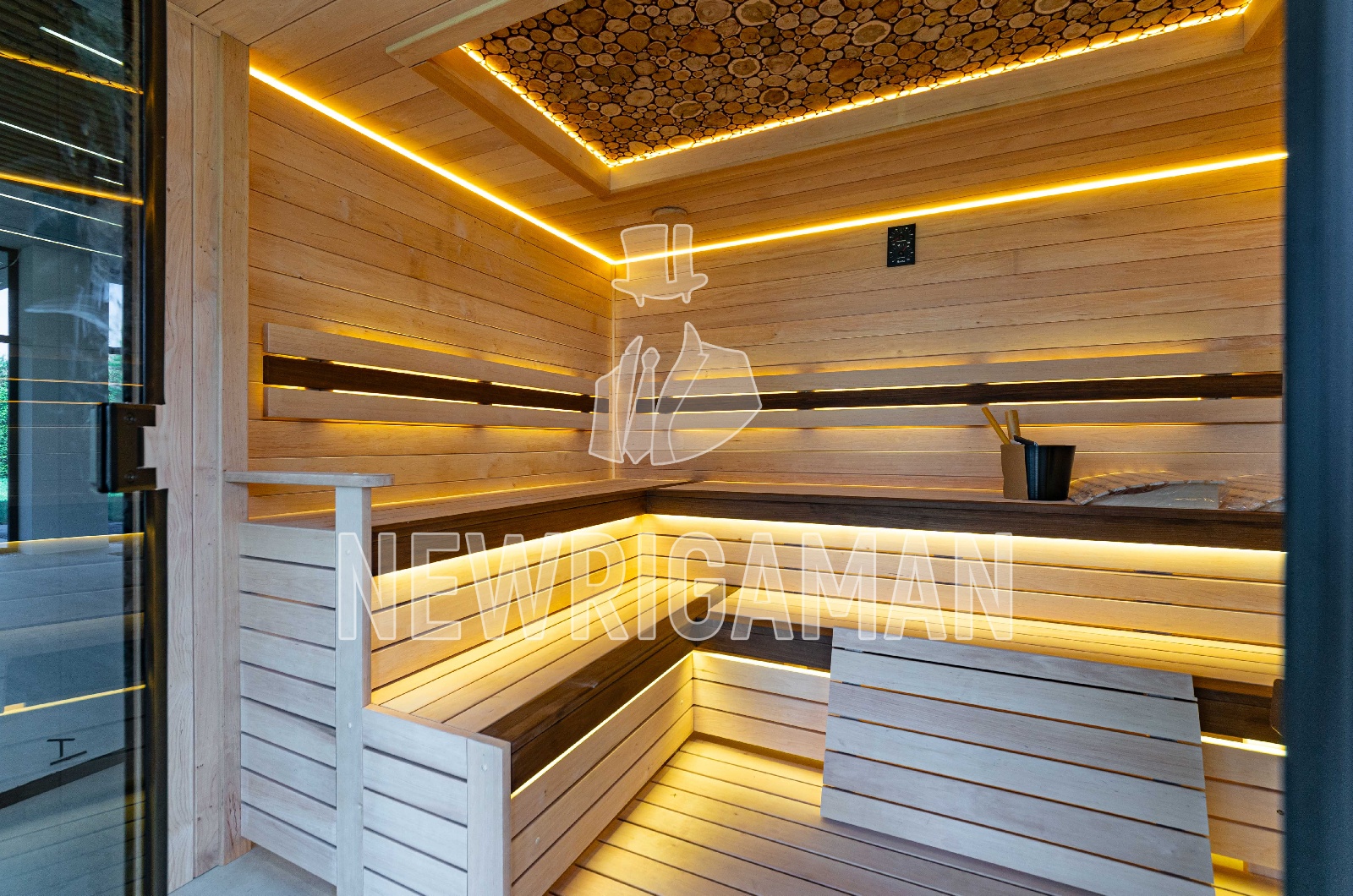 1 этаж - холл, гардеробная, кухня-столовая-гостиная с выходом на веранду, с/у, гостевая спальня с с/у и гардеробной, бассейн, с/у, сауна, котельная, постирочная, тех. помещение, гараж на 2 м/м,