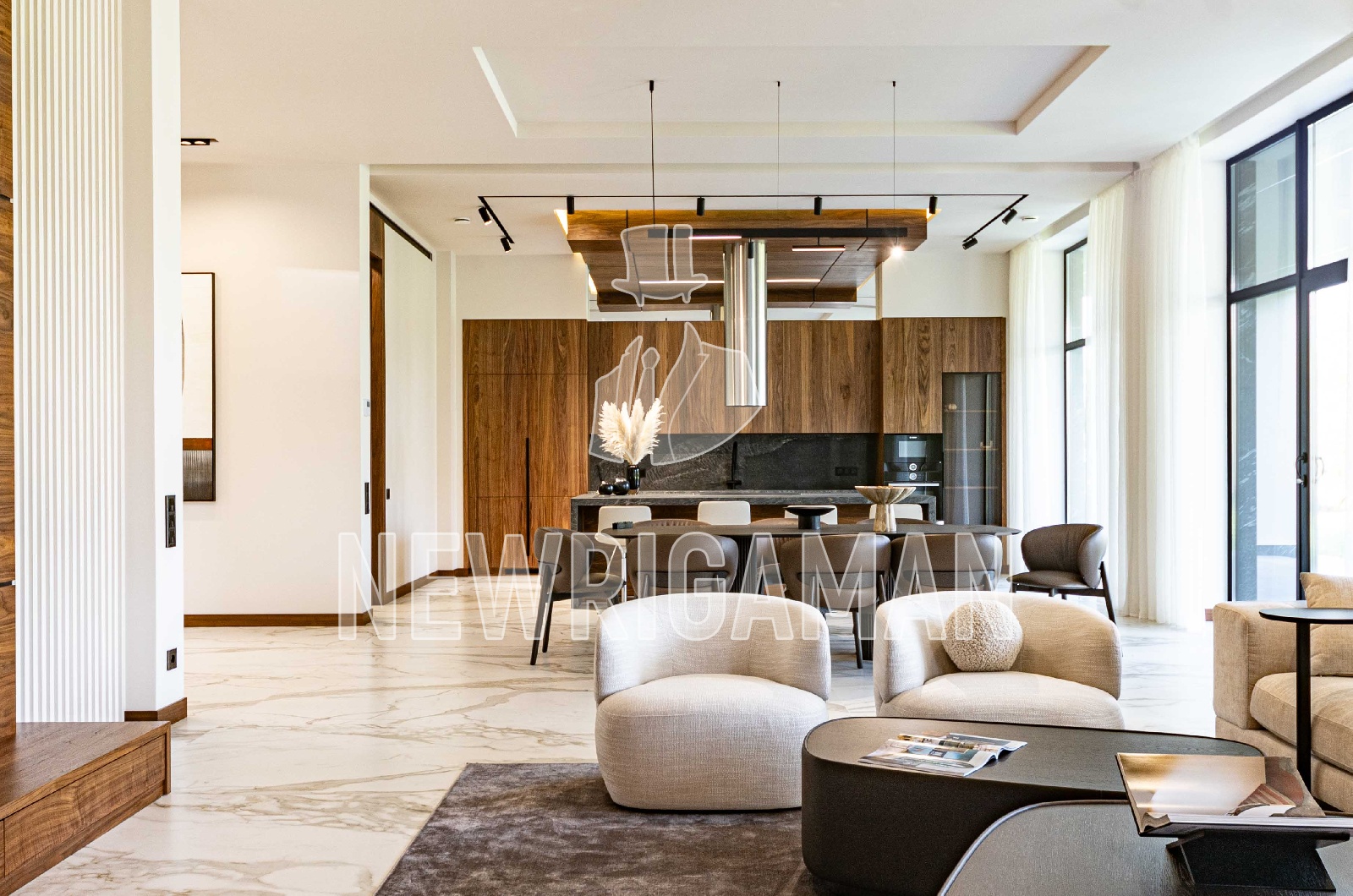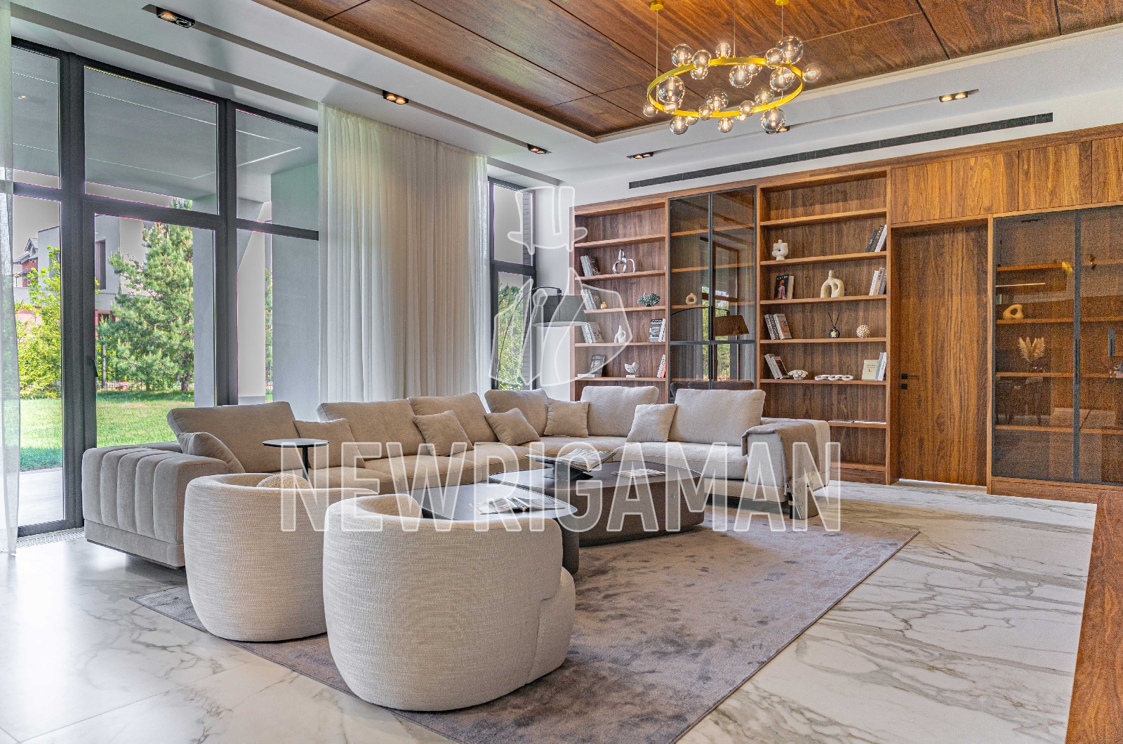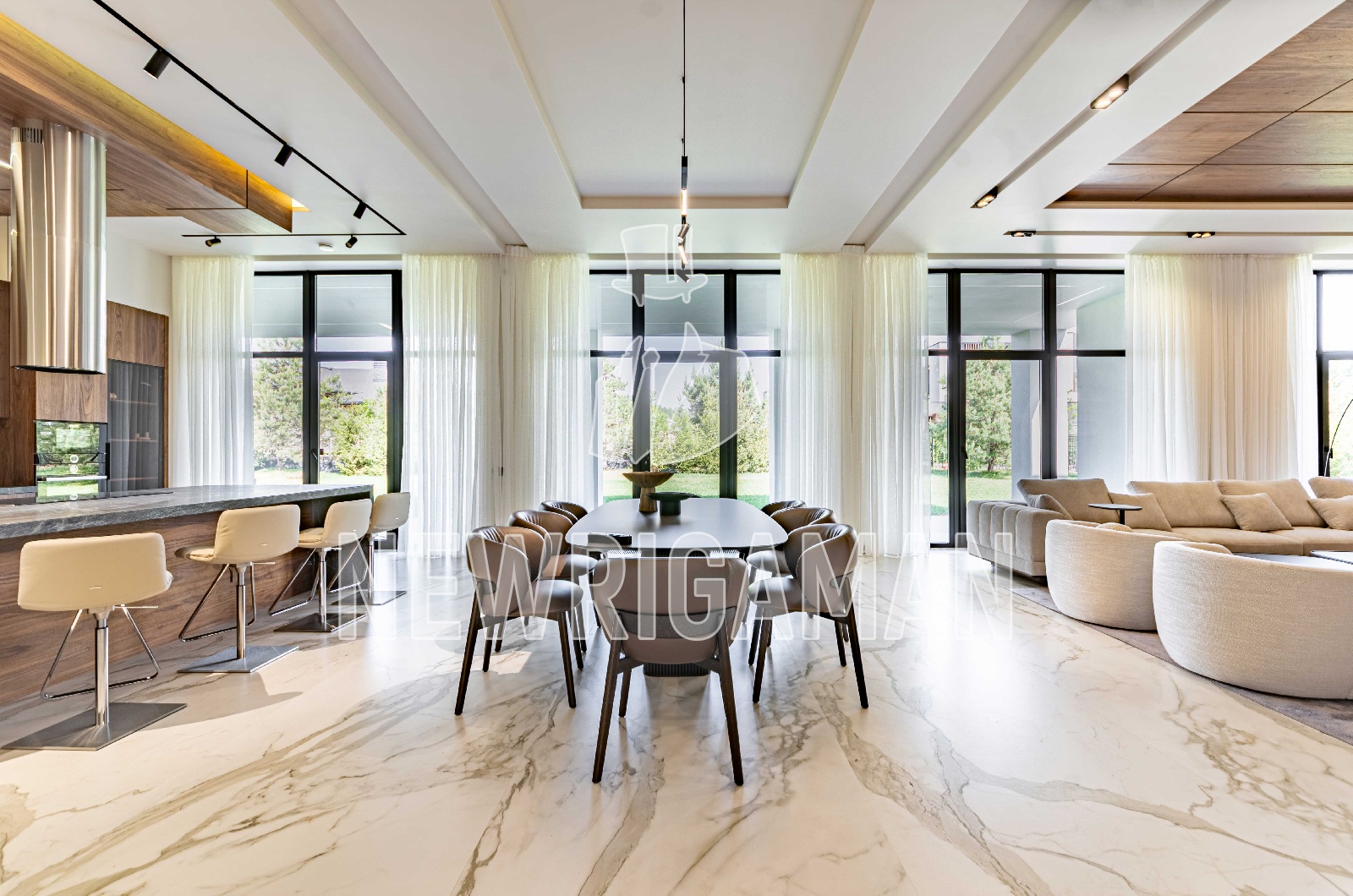 Продажа загородного дома общей площадью 700 кв.м. Коттеджный поселок Мэдисон Парк. Новорижское шоссе, 24 км от МКАД. Дом построен из кирпича в 2 этажа, под ключ. Выполнена дизайнерская светлая отделка с мебелью и декором. Просторные помещения, высокие потолки и грамотная планировка, включая панорамное остекление в пол. Центральное кондиционирование, две кухни. Фасад и интерьер выполнены в современном стиле, с использованием только высококачественных премиум материалов. Оборудован всей необходимой бытовой техникой и сантехникой. Участок в приватной части поселка на юго-западной стороне. Выполнен ландшафт с автополивом. Площадь участка 16.1 сотка.