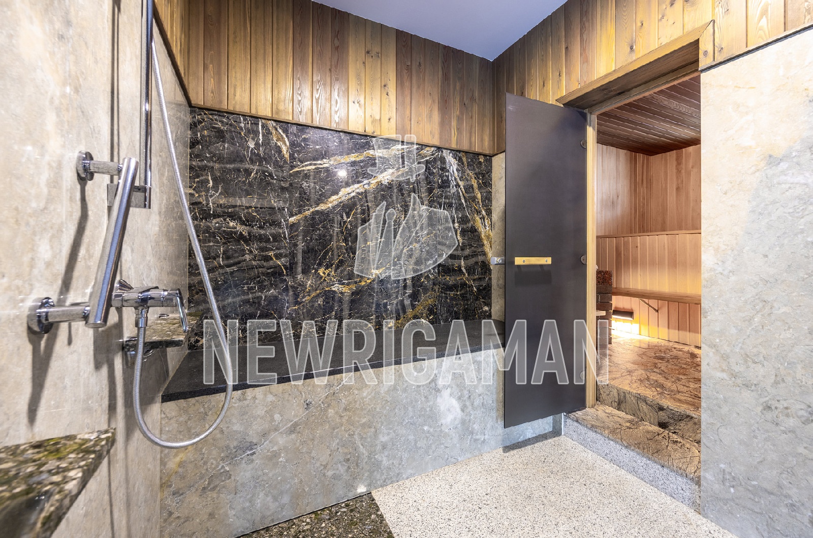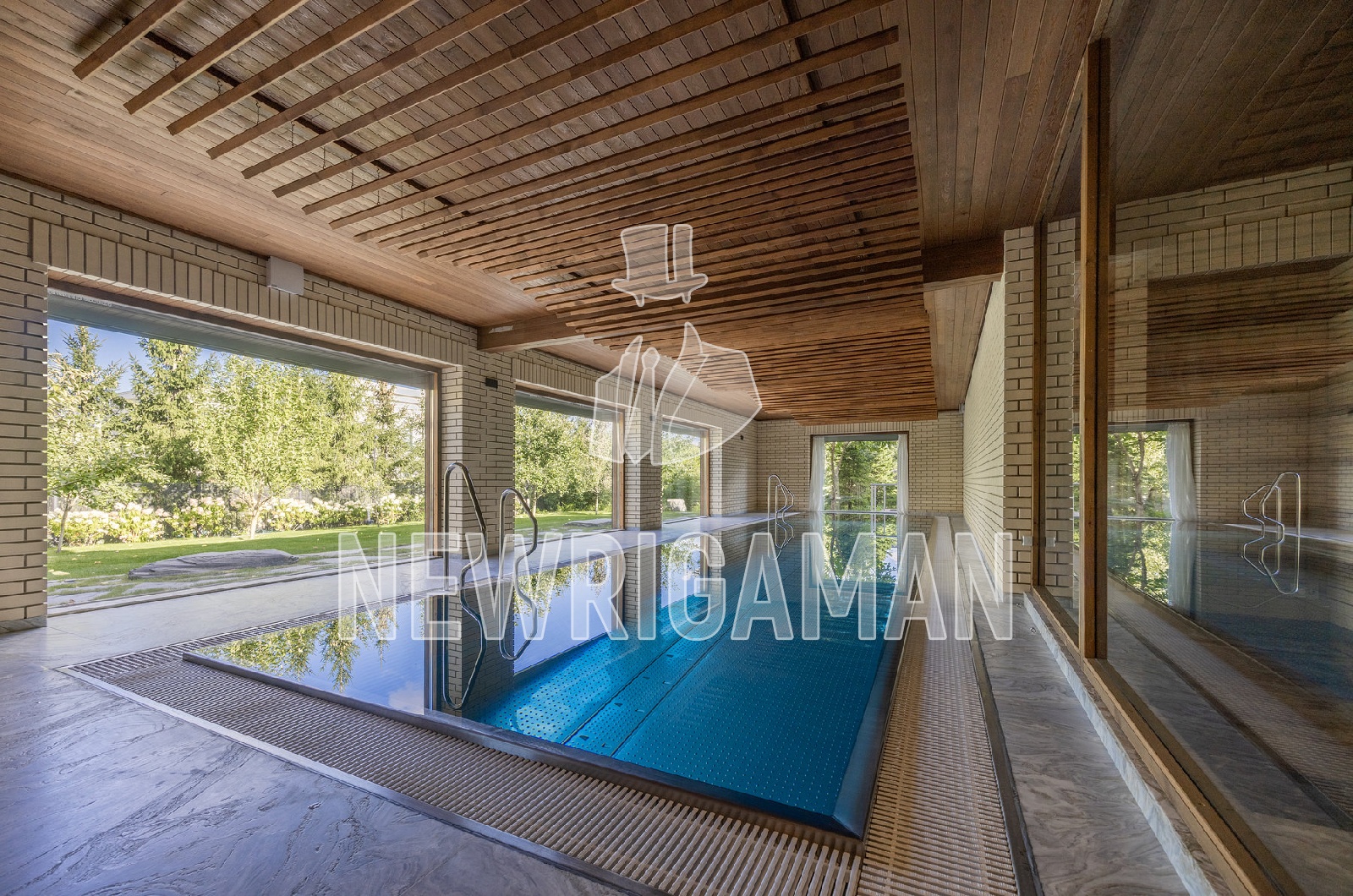 1этаж - холл с лифтом, гардеробная, гостиная, столовая, кухня, кабинет, гостевая спальня, 2 с/у, зона-спа с бассейном и сауной, комната для персонала,