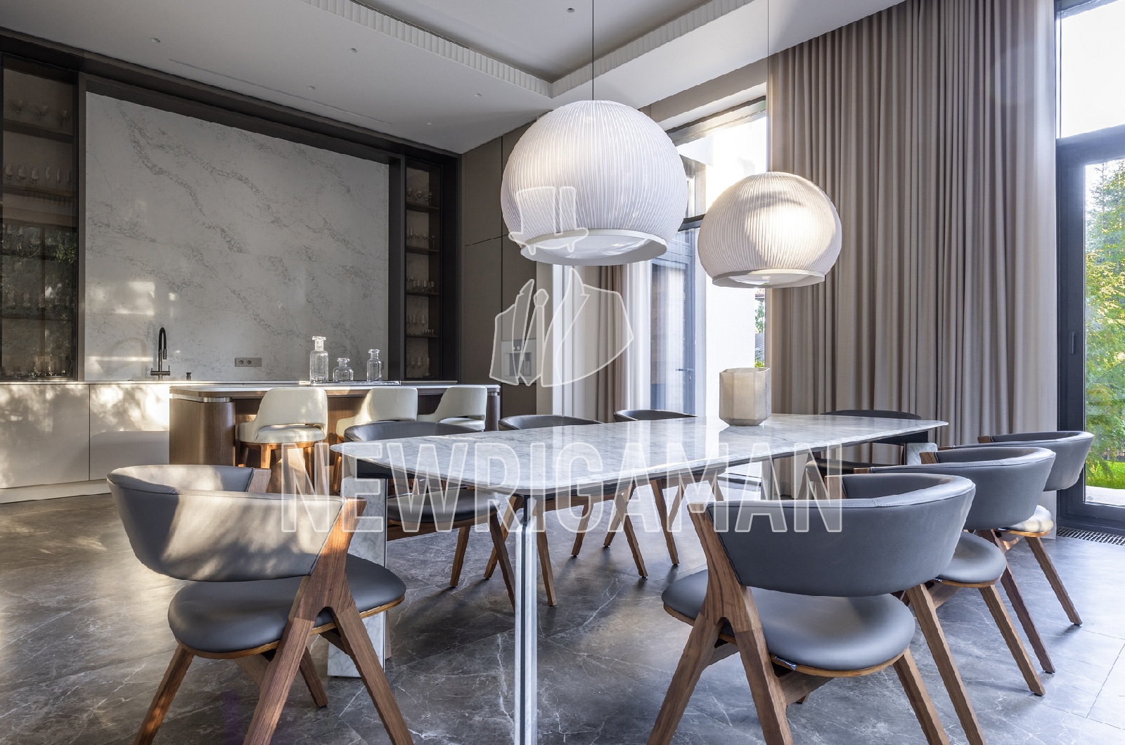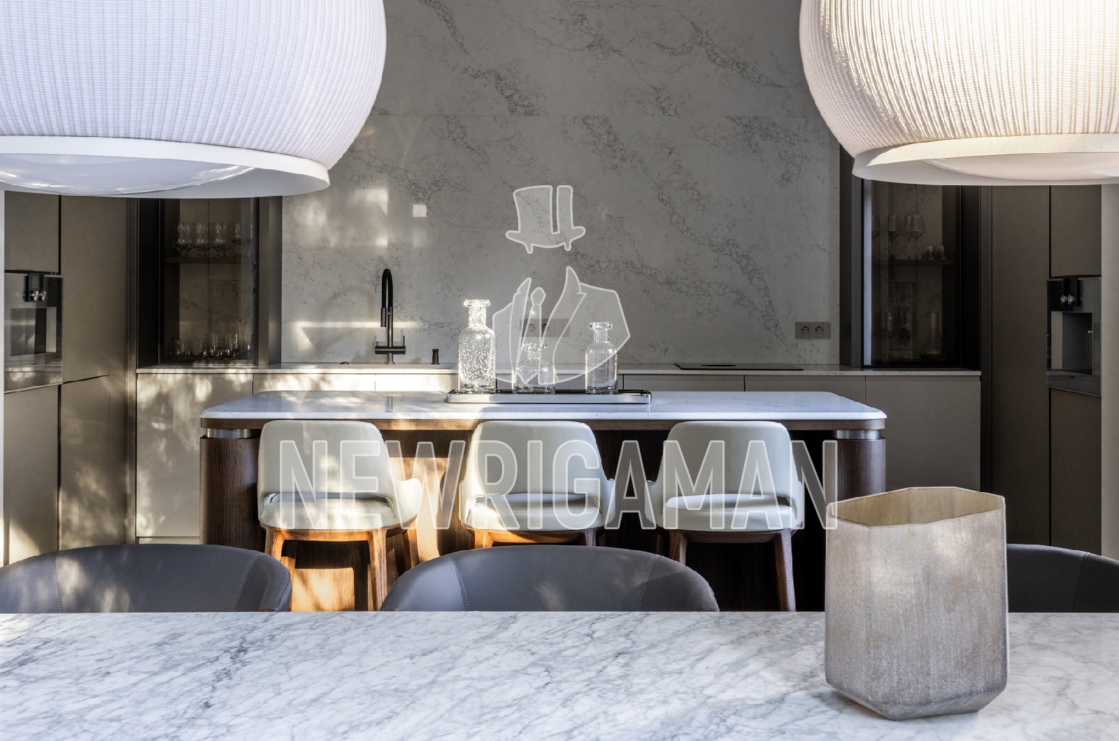 1 этаж - холл, просторная гостиная с дровяным камином, кабинет с с/у и гардеробной, спа-зона: бассейн 12 м, сауна, хаммам, кухня+столовая+шеф кухня с кладовкой, просторная терраса с летней кухней и зоной BBQ, гараж на 2 м/м,