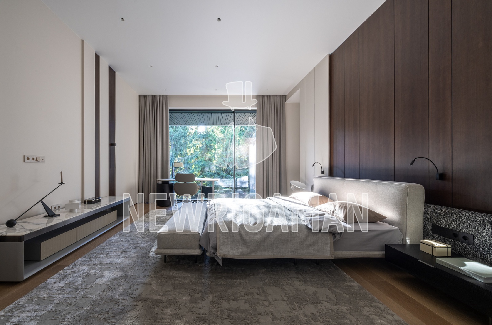 Продажа загородного дома общей площадью 1200 кв.м. Новорижское шоссе, 26 км от МКАД. Коттеджный поселок Шервуд. Дом построен в 2 этажа. Выполнена дизайнерская отделка полностью под ключ со всей мебелью, техникой и коврами. Фасад дома выполнен из высококачественных материалов. В гостиной мебель из последней коллекции итальянского бренда Minotti. Удобная и очень современная планировка всех спален, особенно хозяйского блока. Канальное кондиционирование. Приточная вентиляция с функцией увлажнения воздуха. Дом утопает в вековом хвойном лесу в самом центре поселка на солнечной стороне. На участке выполнен ландшафтный дизайн. Гараж на 2 машиноместа. Лесной участок площадью 23 сотки в самом центре посёлка.