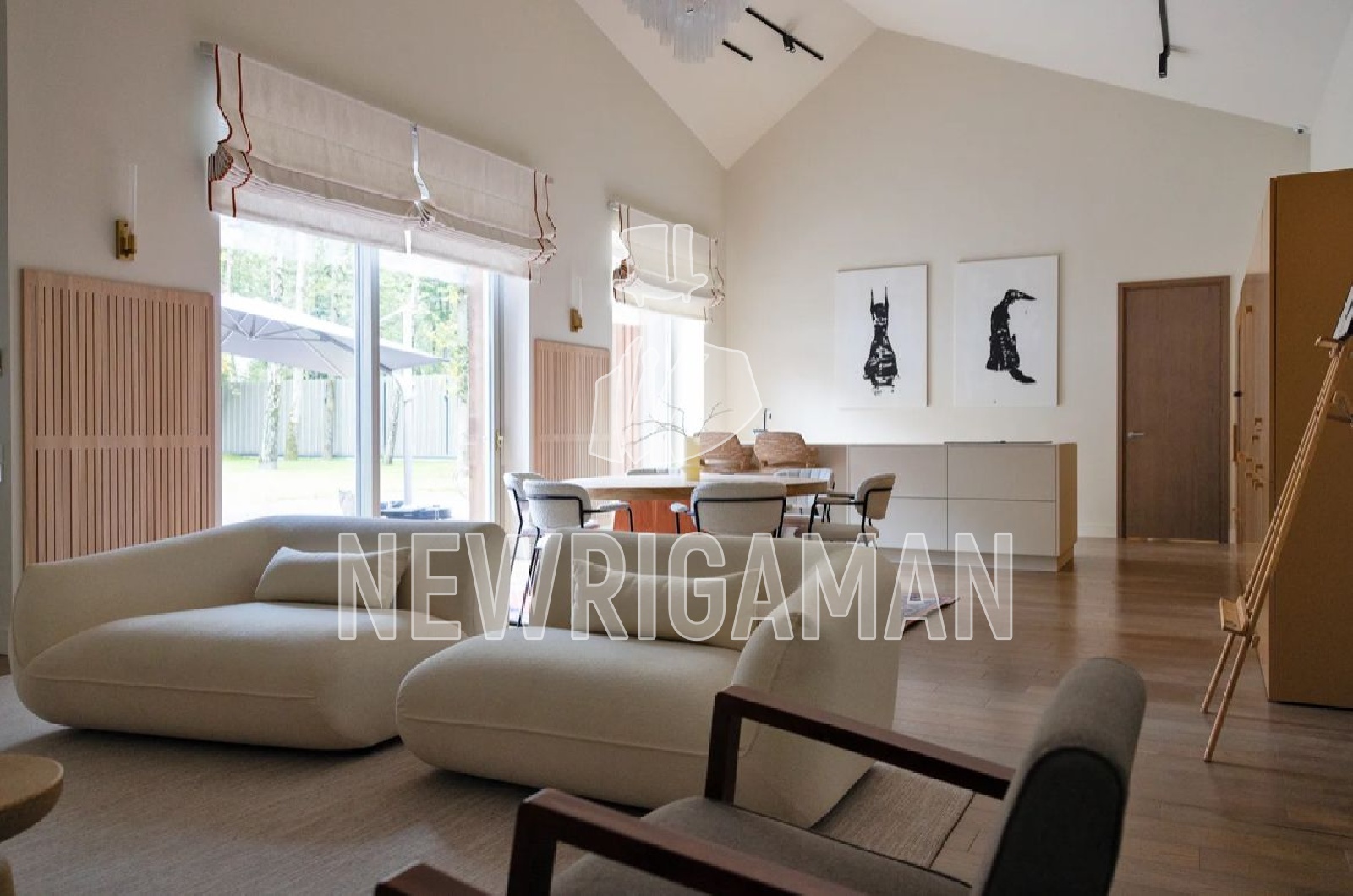 Продажа загородного дома общей площадью 550 кв.м. Коттеджный поселок Горки-8. Рублево-Успенское шоссе, 16 км от МКАД. Дом построен в 1 этаж, под ключ. Высокое качество строительства и отделки. Интерьер выполнен в скандинавском стиле с элементами рустика и contemporary: светлые пространства, натуральные материалы, фактурные акценты и воздушность создают гармонию уюта и масштаба. Технологичность не уступает эстетике: приточно-вытяжная вентиляция, кондиционирование, повышенное давление воды, водоочистка, электроприводы штор, датчики протечек, видеонаблюдение, закладные под бассейн на участке, мощность 25 кВт электричества. Гараж на 2 машины с полноценной квартирой для персонала над ним (2 комнаты, кухня, душевая), рядом - парковка ещё на 3 автомобиля. Участок площадью 25 соток утопает в зелени под вековыми дубами.