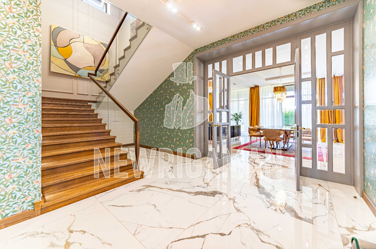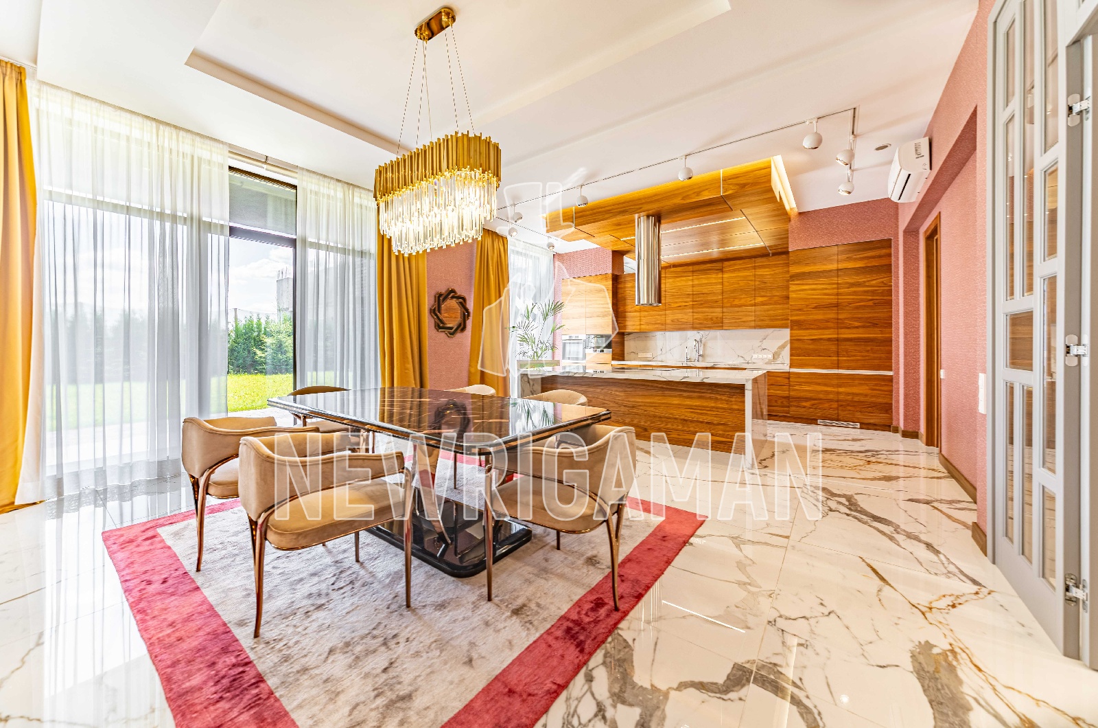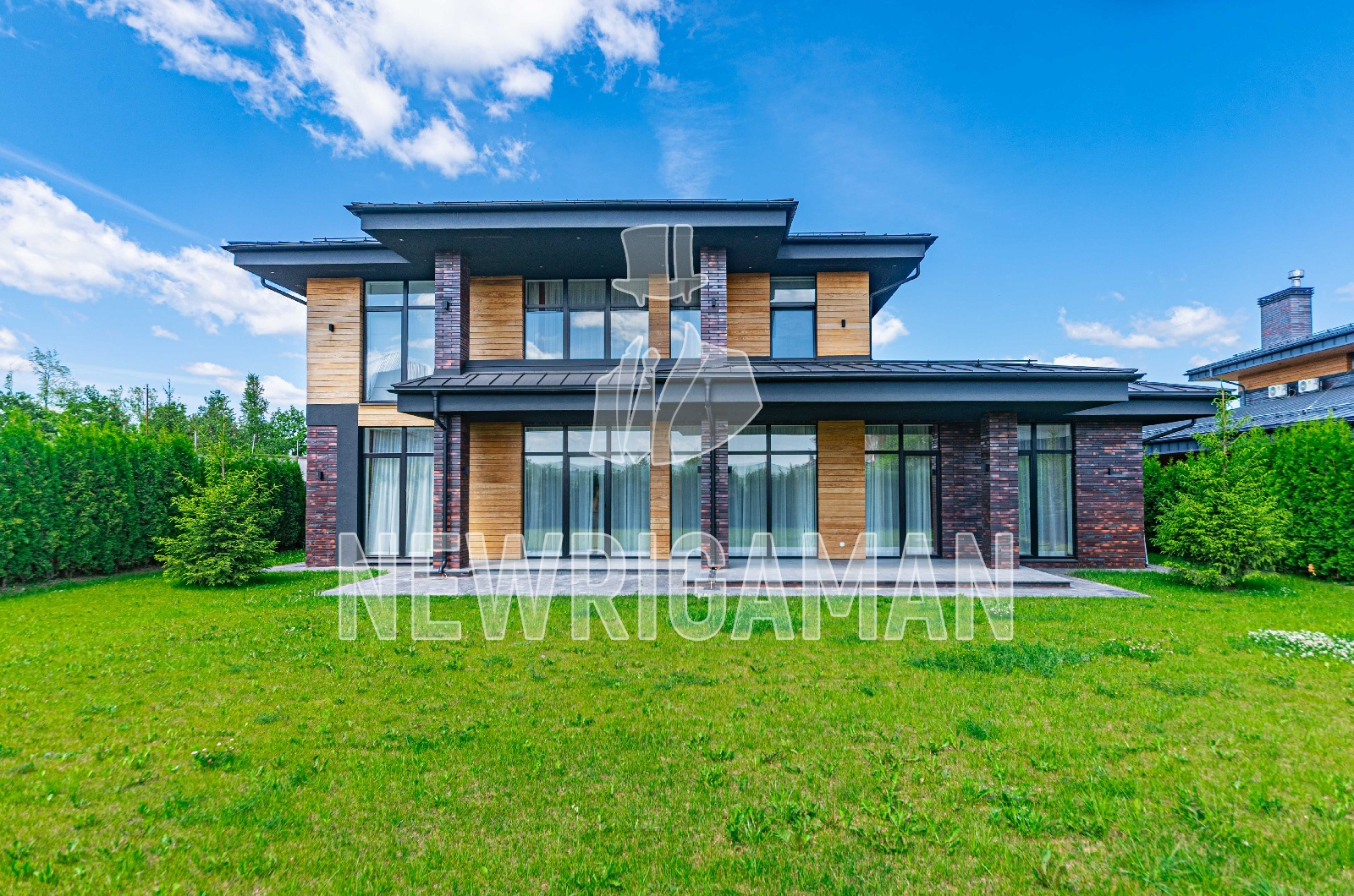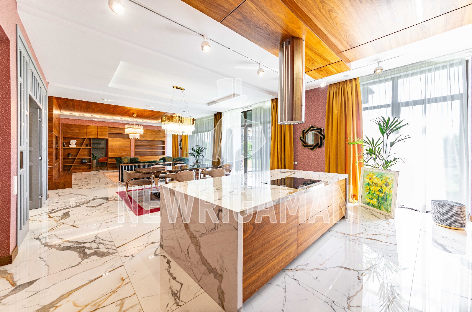 Продажа загородного дома общей площадью 446 кв.м. Новорижское шоссе, 19 км от МКАД. Коттеджный поселок Миллениум Парк. Дом построен в 2 этажа, под ключ. Выполнена великолепная отделка из высококачественных материалов. Дом реализован в стиле Райта с панорамными окнами в пол. Внешняя отделка - клинкер+лиственница. Каждая спальня оборудована собственной ванной и гардеробной. В отделке использованы натуральные качественные материалы из Италии, Германии и Финляндии. Английские обои Morris, аутентичные хрустальные люстры из Италии, авторская живопись и зеркальные панно. Дом полностью готов к проживанию, оснащен современной техникой и качественной премиальной мебелью. Площадь участка 10 соток.
