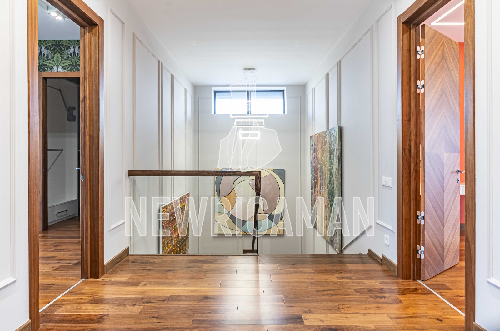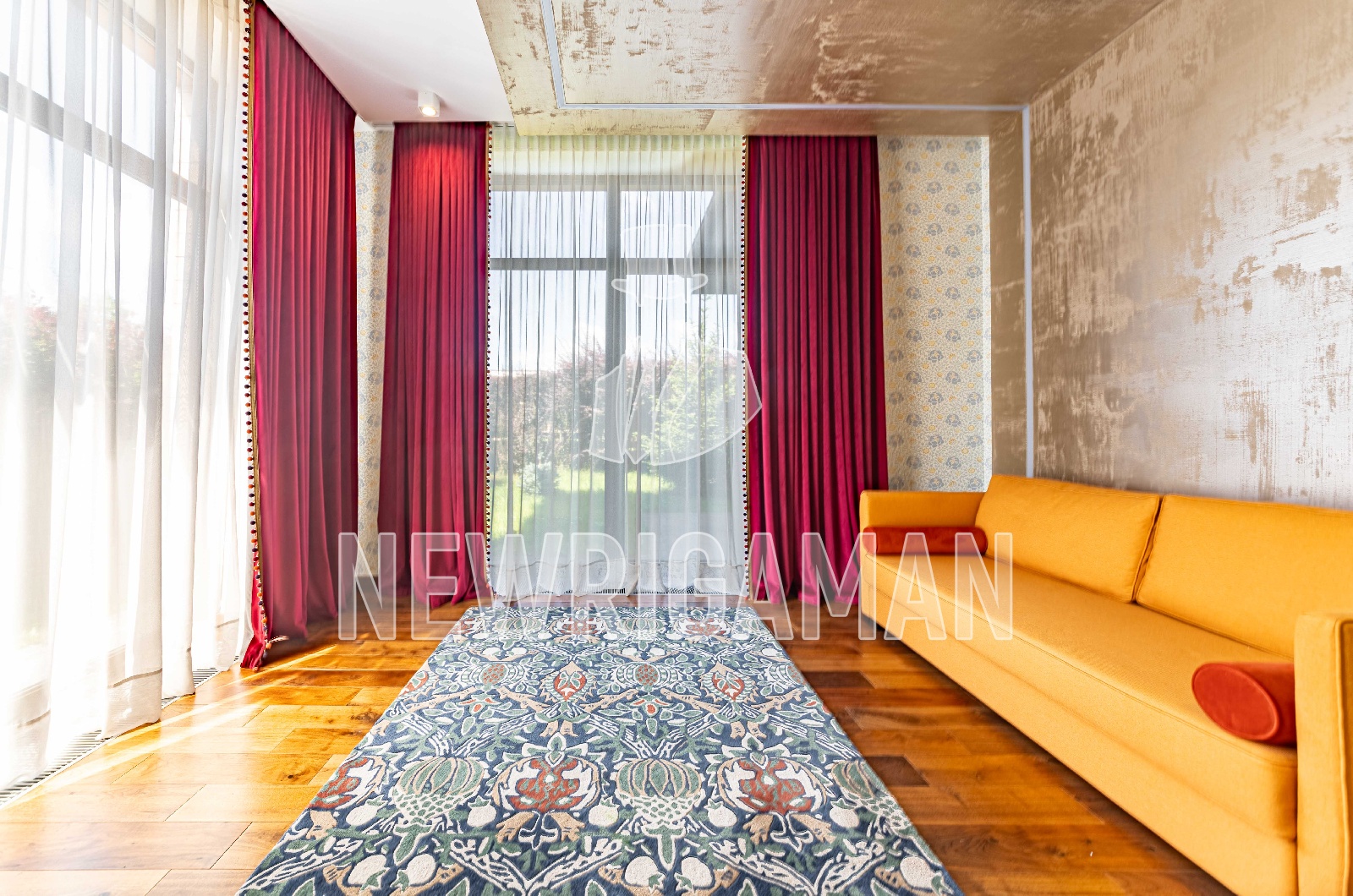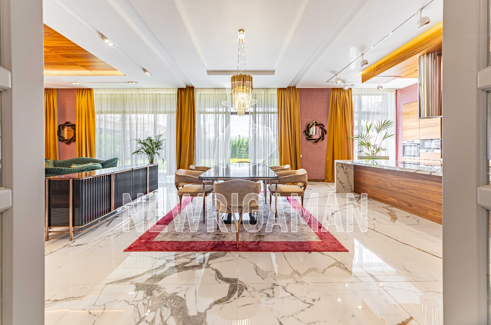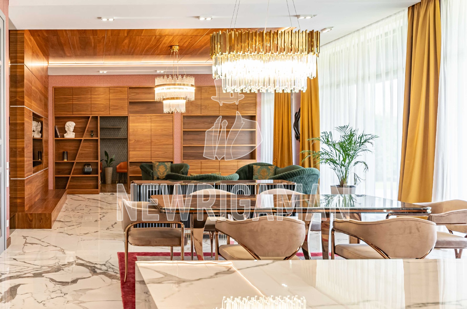 Продажа загородного дома общей площадью 446 кв.м. Новорижское шоссе, 19 км от МКАД. Коттеджный поселок Миллениум Парк. Дом построен в 2 этажа, под ключ. Выполнена великолепная отделка из высококачественных материалов. Дом реализован в стиле Райта с панорамными окнами в пол. Внешняя отделка - клинкер+лиственница. Каждая спальня оборудована собственной ванной и гардеробной. В отделке использованы натуральные качественные материалы из Италии, Германии и Финляндии. Английские обои Morris, аутентичные хрустальные люстры из Италии, авторская живопись и зеркальные панно. Дом полностью готов к проживанию, оснащен современной техникой и качественной премиальной мебелью. Площадь участка 10 соток.
