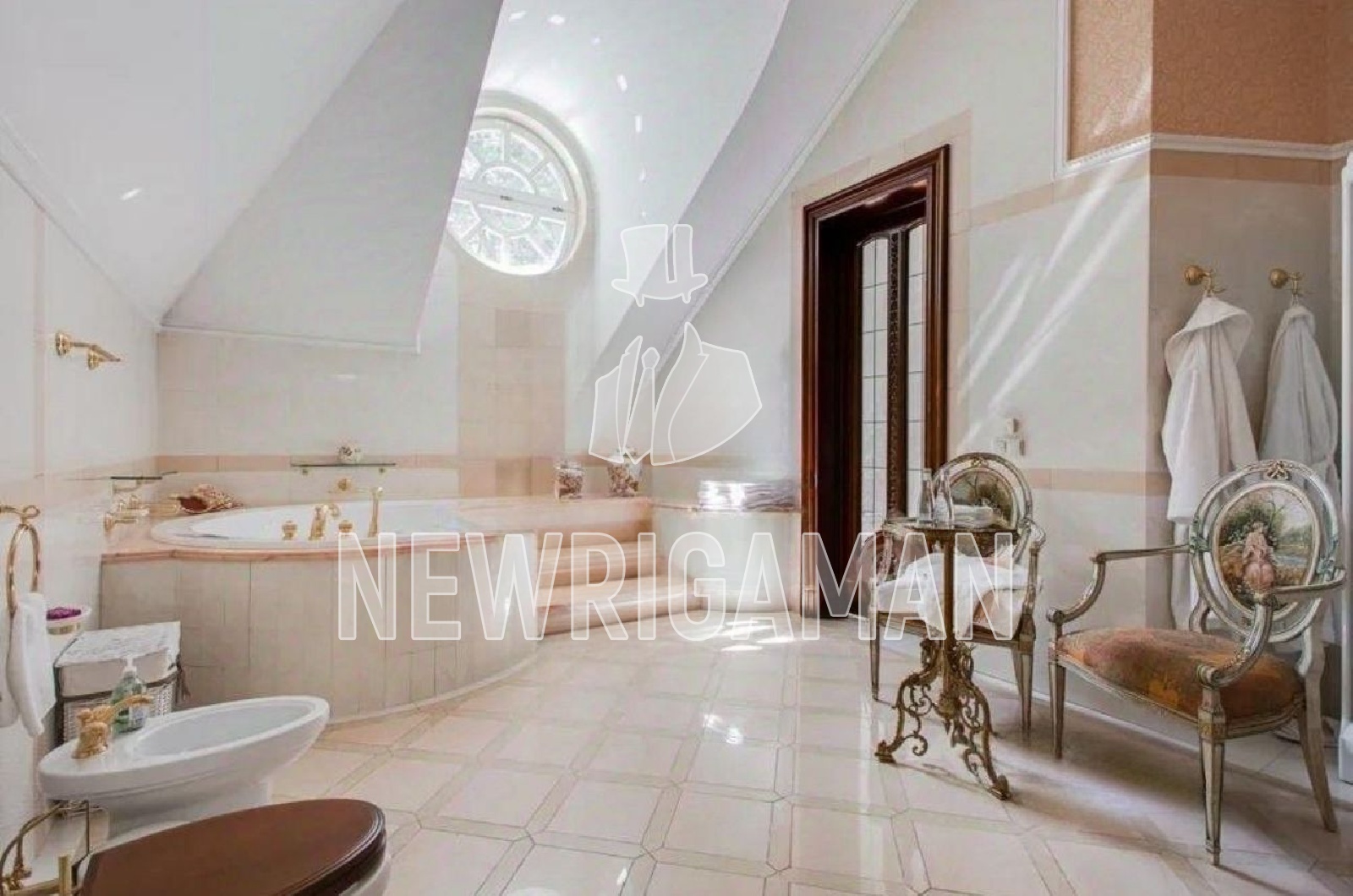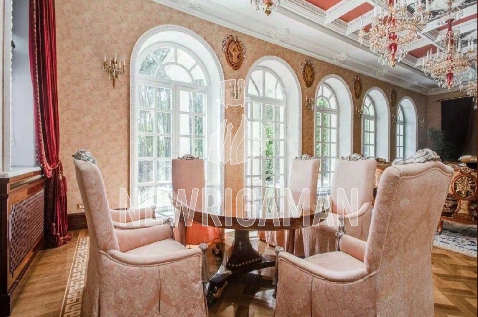Продажа загородного дома общей площадью 1200 кв.м. Поселок Жуковка, Рублево- Успенское шоссе, 9 км от МКАД. Дом построен в 2 этажа. Выполнена дизайнерская отделка под ключ. Фасад дома выполнен из натуральнфх материалов. Оснащен всей необходимой техникой и сантехникой. На участке с хвойными деревьями и ландшафтным дизайном расположены основной дом 1200 кв. м под ключ, СПА-комплекс 900 кв. м под чистовую отделку, гараж с квартирой для персонала 200 кв. м, гараж с квартирами для персонала 550 кв. м. Площадь участка 152 сотки.