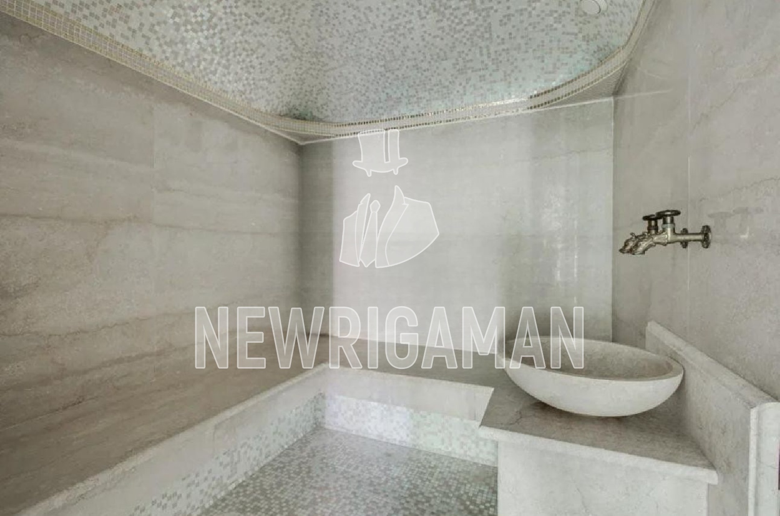 1 этаж - холл, гардеробная, гостиная с камином, парадная столовая, малая столовая, кухня, гостевая спальня с ванной комнатой, гостевой с/у, спа-комплекс: бассейн, хамам, с/у,