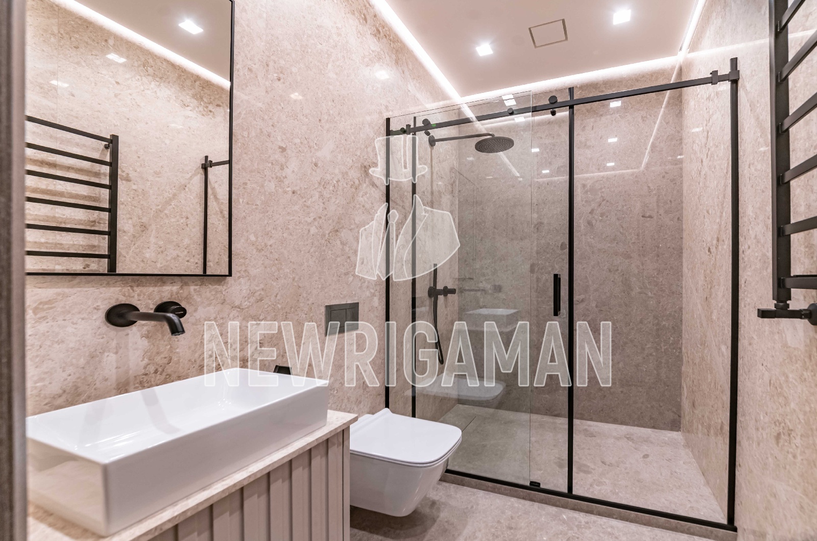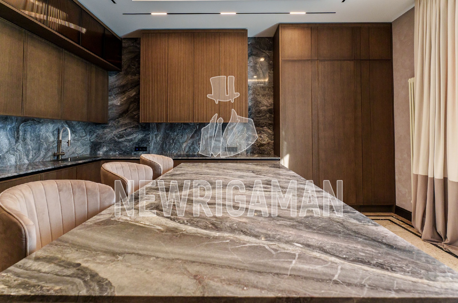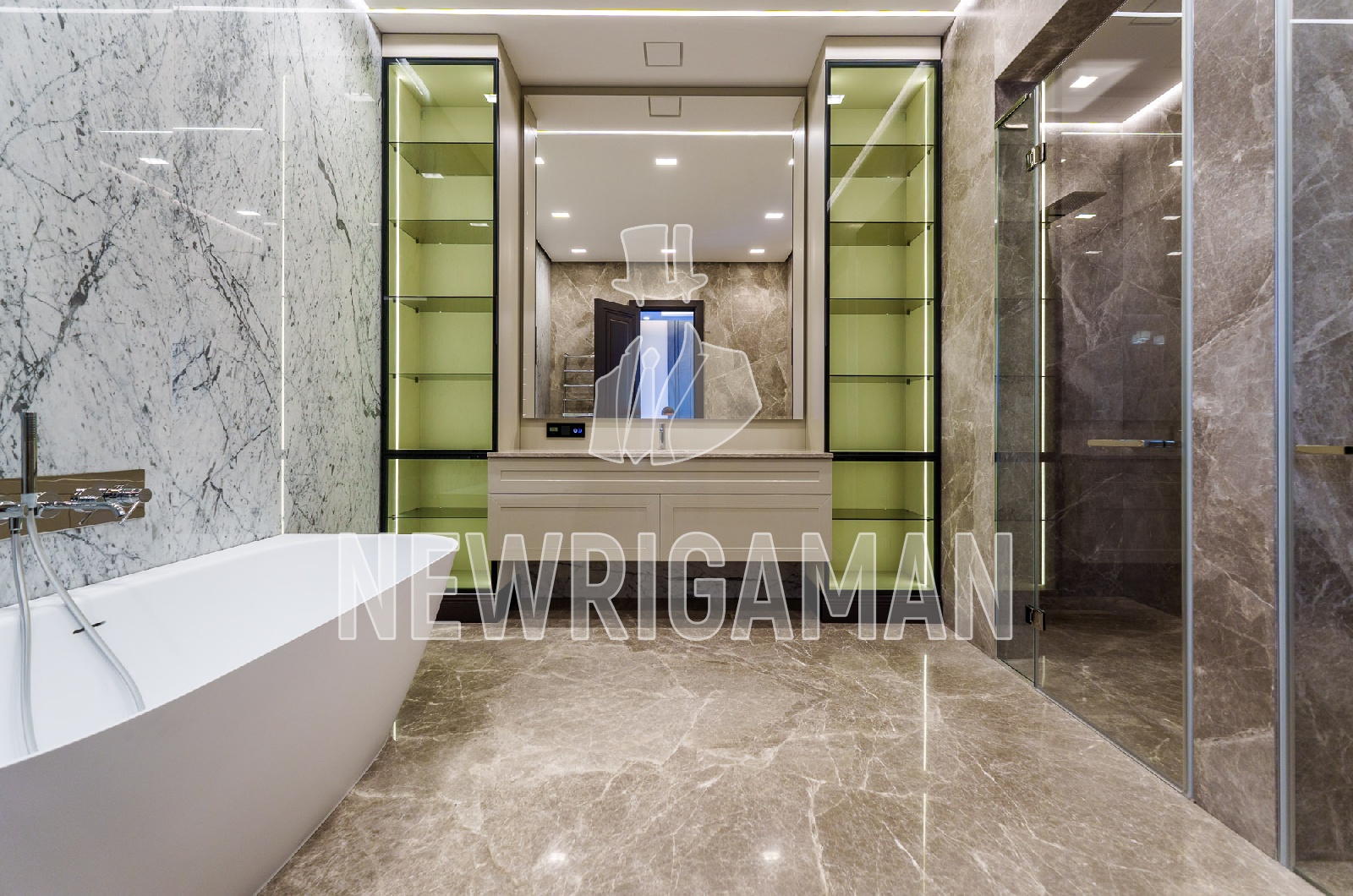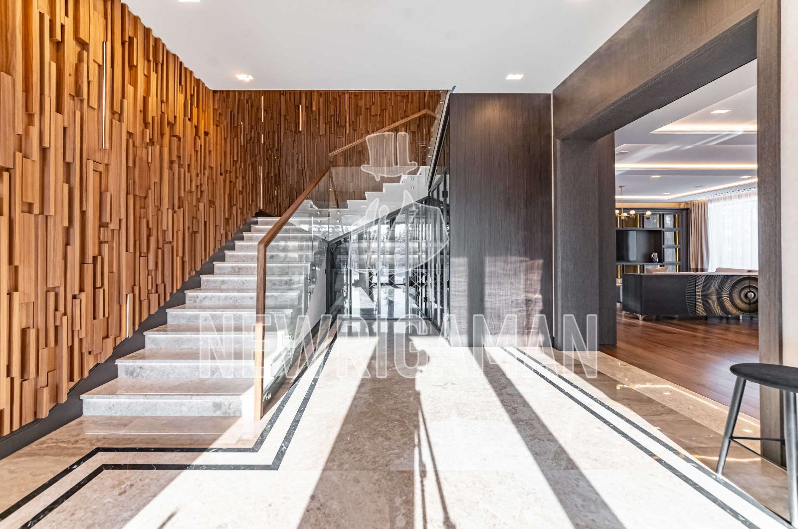1 этаж - холл, гардеробная, гостиная-столовая с выходом на просторную террасу, кухня, рабочая кухня, гостевая спальня с с/у, кабинет, с/у, спа (бассейн, сауна, хамам, раздевалка, душевая, с/у), котельная, гараж на 3 м/м,