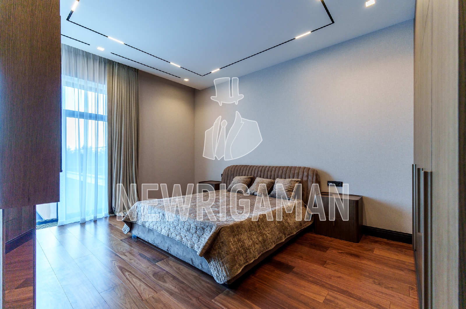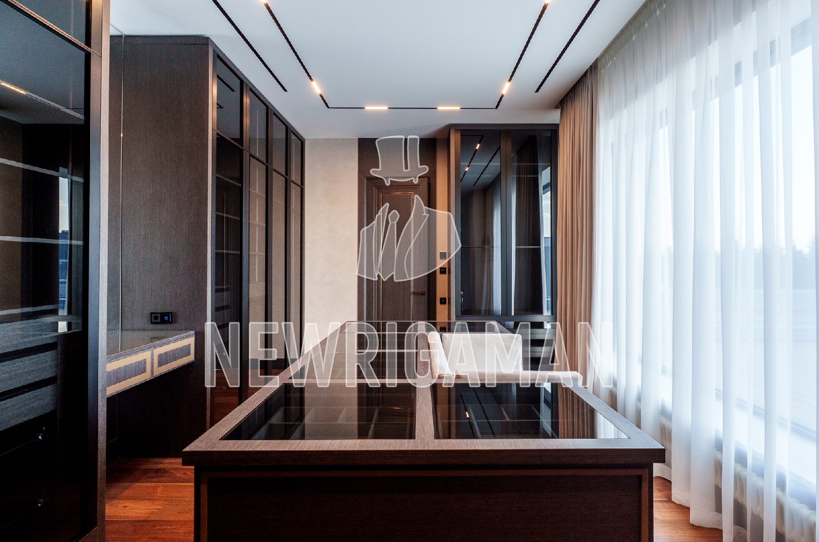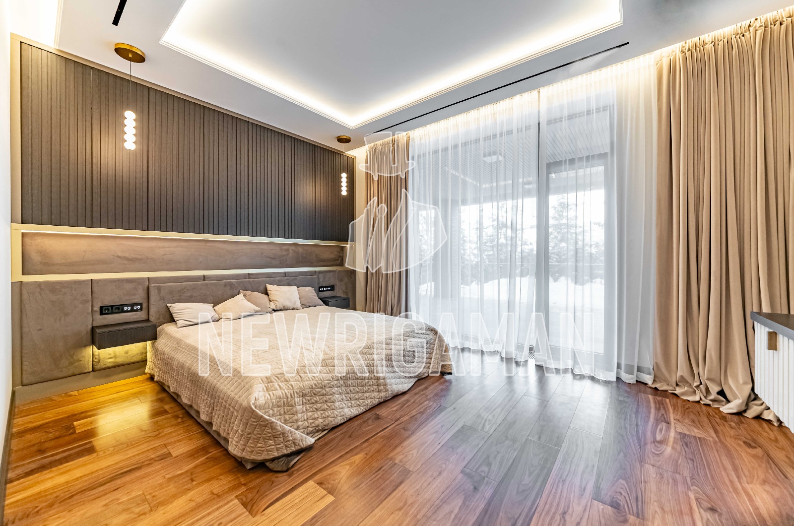 2 этаж - 3 спальни, каждая с гардеробной и ванной комнатой, хозяйский блок: гостиная, спальня с выходом на террасу, гардеробная, ванная комната, блок для персонала с отдельным входом (2 спальни, кухня, с/у).