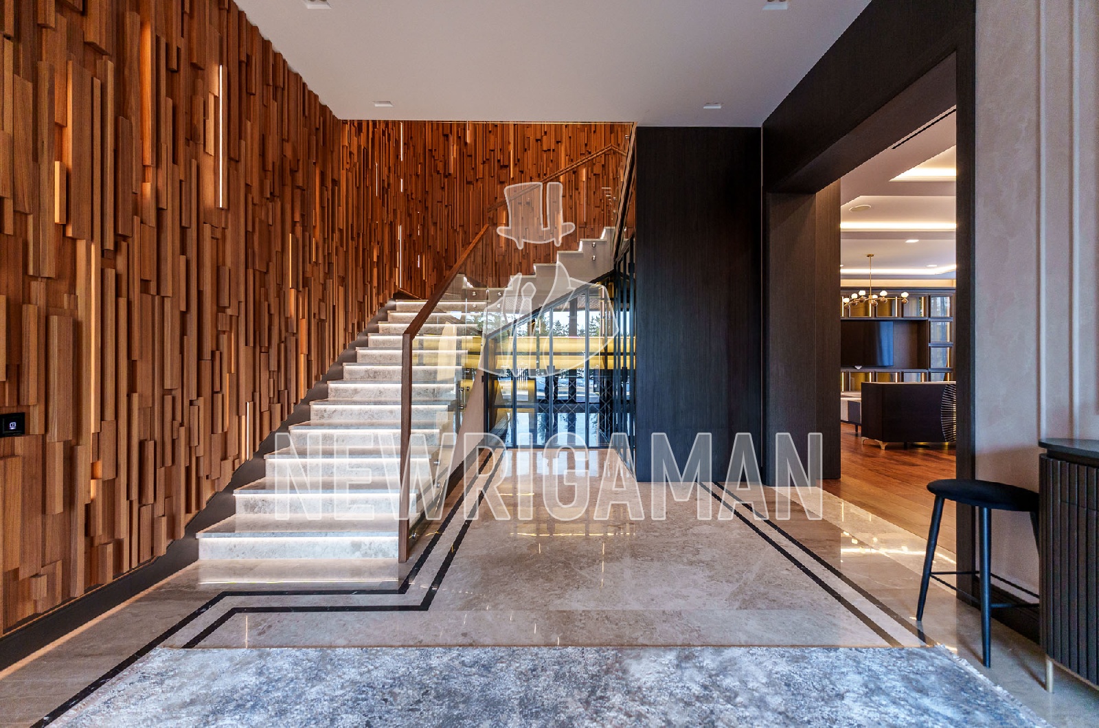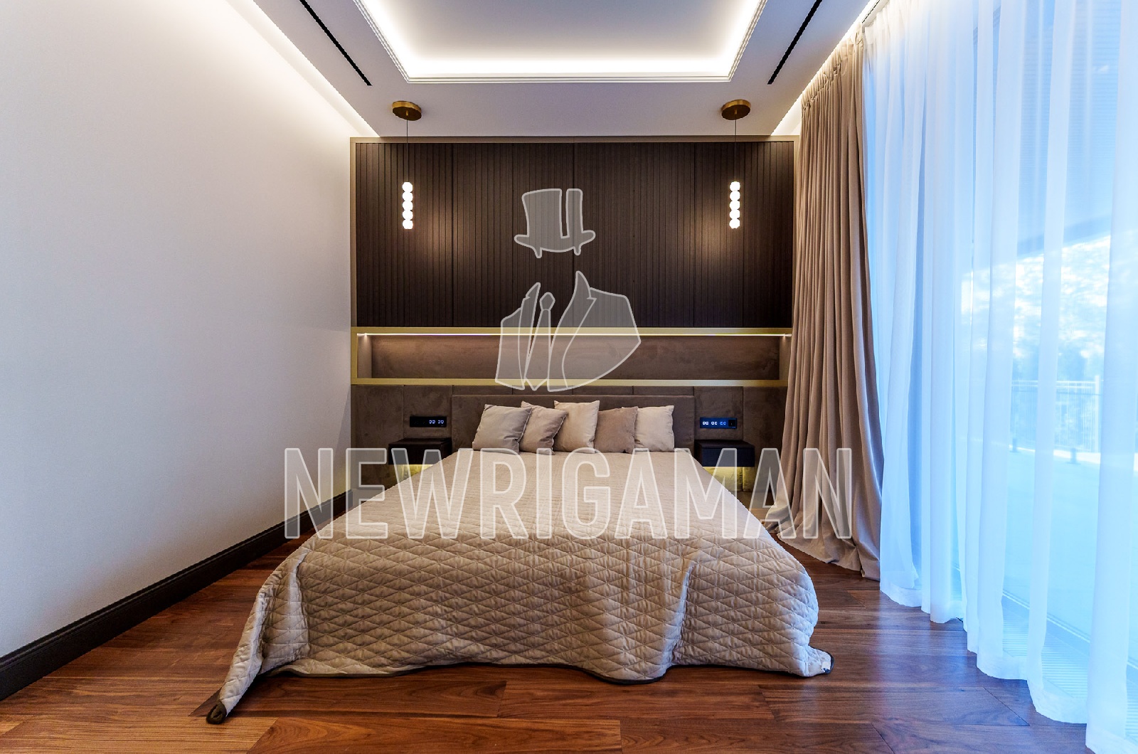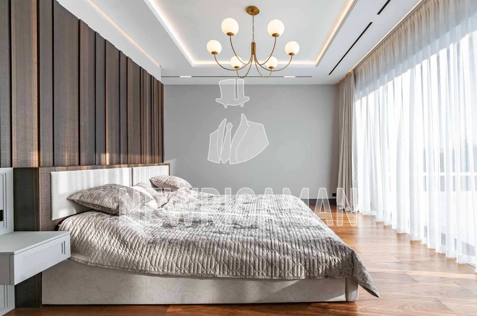 2 этаж - 3 спальни, каждая с гардеробной и ванной комнатой, хозяйский блок: гостиная, спальня с выходом на террасу, гардеробная, ванная комната, блок для персонала с отдельным входом (2 спальни, кухня, с/у).