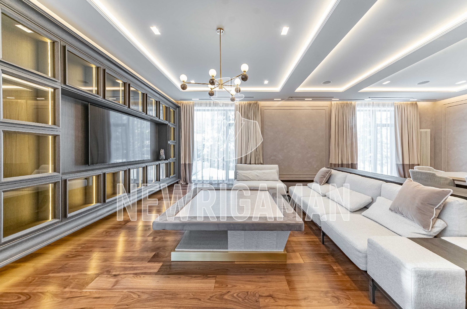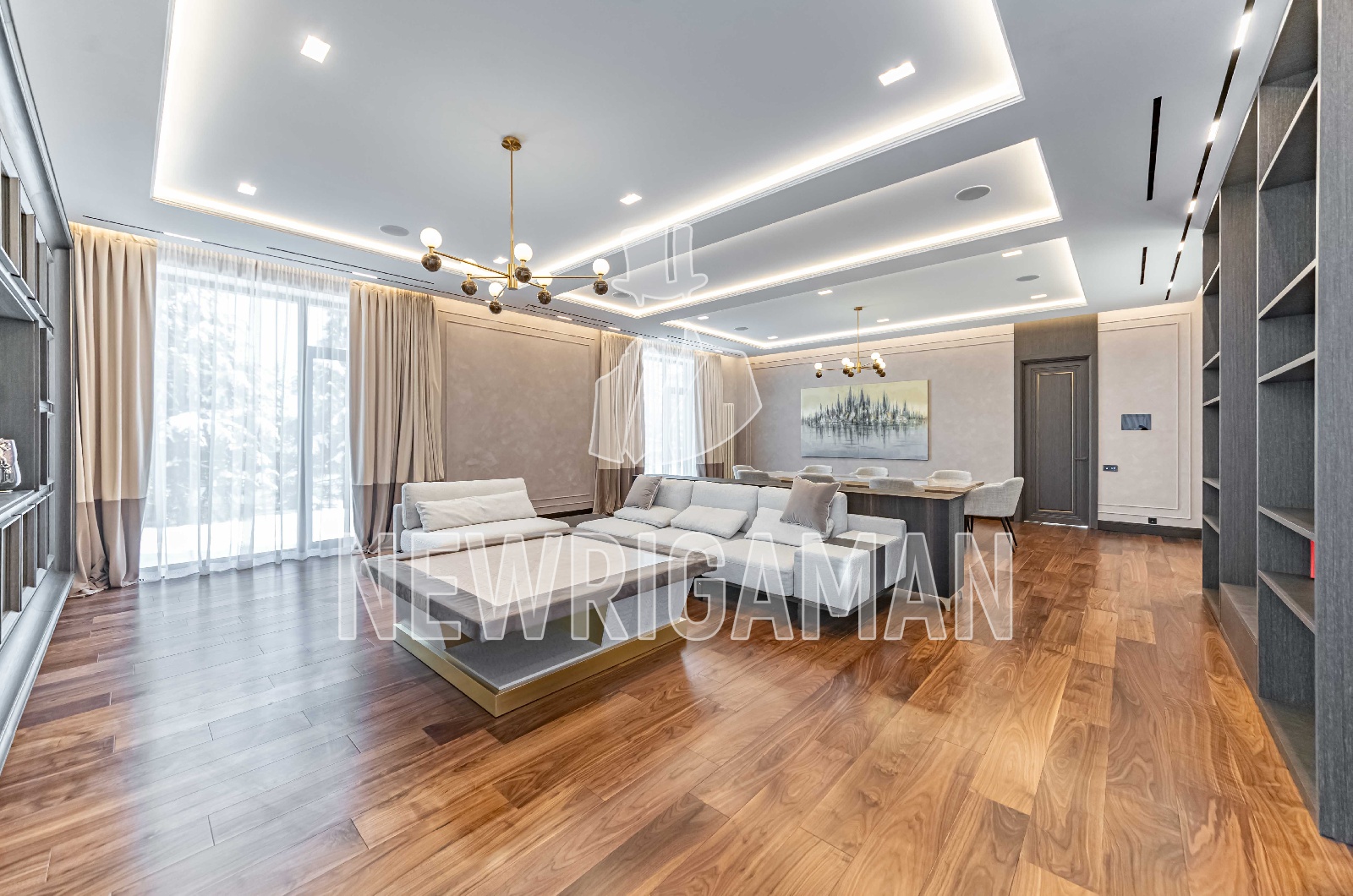 Продажа загородного дома общей площадью 1000 кв.м. Новорижское шоссе, 20 км от МКАД. Коттеджный поселок Агаларов Эстейт. Коттедж построен в 2 этажа. Выполнена дизайнерская отделка с использованием натуральных материалов под ключ. Полы: натуральный мрамор и паркет Американский орех. Для отделки ванных комнат также использованы разнообразные сорта мрамора. Для комфортной жизни установлены приточно-вытяжная вентиляция, кондиционирование и система увлажнения воздуха. Установлены умный дом и акустическая система. Дом полностью оборудован бытовой техникой Miele и Bosh. В доме имеется спа-комплекс с бассейном 9 метров. Предусмотрен просторный гараж на 3 м/м, блок для персонала с отдельным входом. Сделан ландшафтный дизайн участка: высажены крупномеры, кустарники, уложен рулонный газон, проложены дорожки и освещение. Площадь участка 21 сотка.