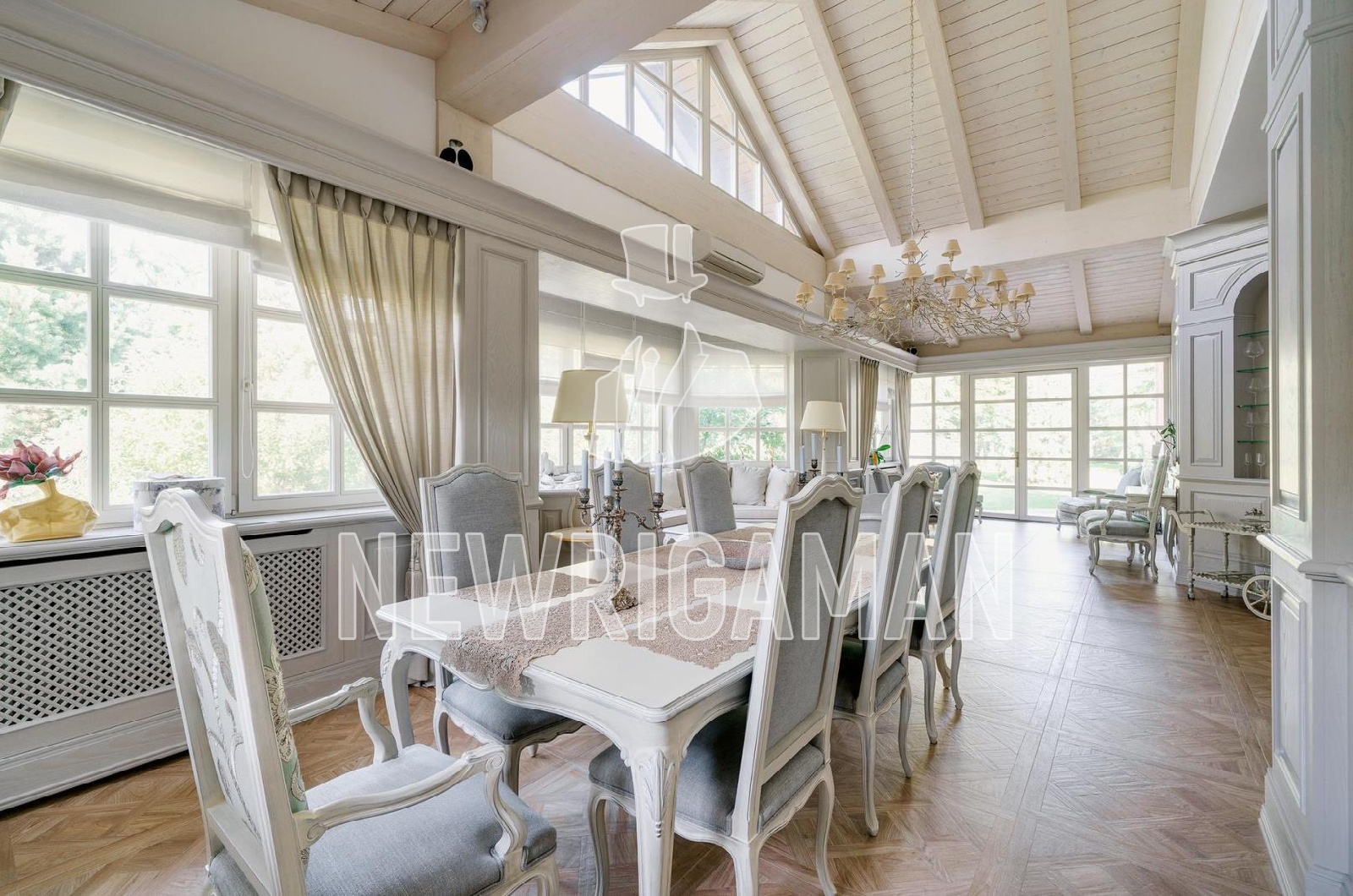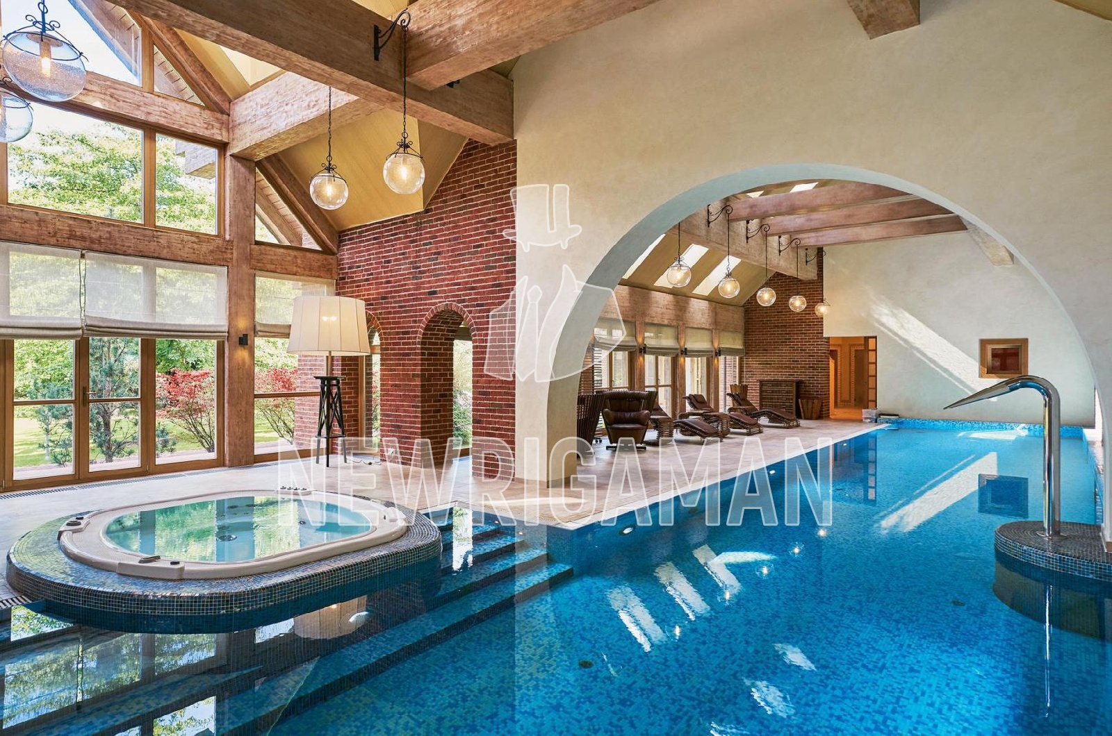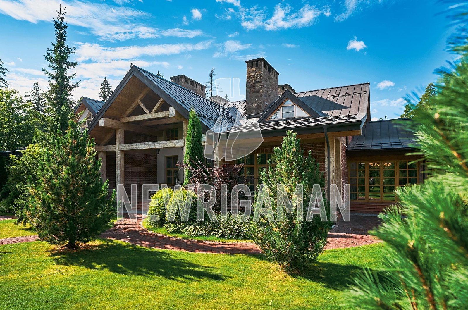 Продажа загородного дома площадью 1185 кв. м. Минское шоссе, 11 км. от МКАД. Коттеджный поселок Грибово. Дом построен в 2 этажа, под ключ. Загородная резиденция объединяет 4 архитектурных объекта в едином стиле швейцарского шале: трехуровневый жилой дом, двухуровневый SPA-комплекс, дом для персонала и гараж с постом охраны. Широкие силуэты крыш с мощной системой стропил из хвойных пород деревьев органично сливаются с кронами вековых деревьев, создавая гармоничный ансамбль, где кирпичная кладка сочетается с бревнами ручной рубки. Основной дом наполнен естественным светом благодаря панорамным окнам, второму свету в гостиной и высоким потолкам. Интерьеры демонстрируют стиль тихой роскоши: кухня с мебелью Mantegna от Angelo Cappellini в классическом стиле; гостиная с диванами Bruno Zampa, витринами Angelo Cappellini и светильниками Zonca, где готический модерн сводов сочетается с элегантной классикой камина; рабочий кабинет с библиотекой, письменным столом Tosato и креслами Masheroni; спальни, оформленные в классическом и современном стилях с мебелью Cimarosa, Flai и дизайнерскими светильниками Bover. На участке площадью 50 соток выполнен ландшафтный дизайн.