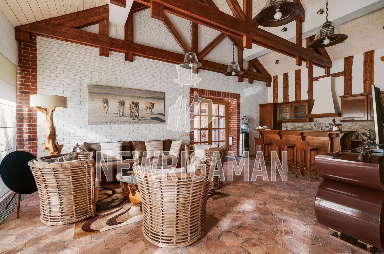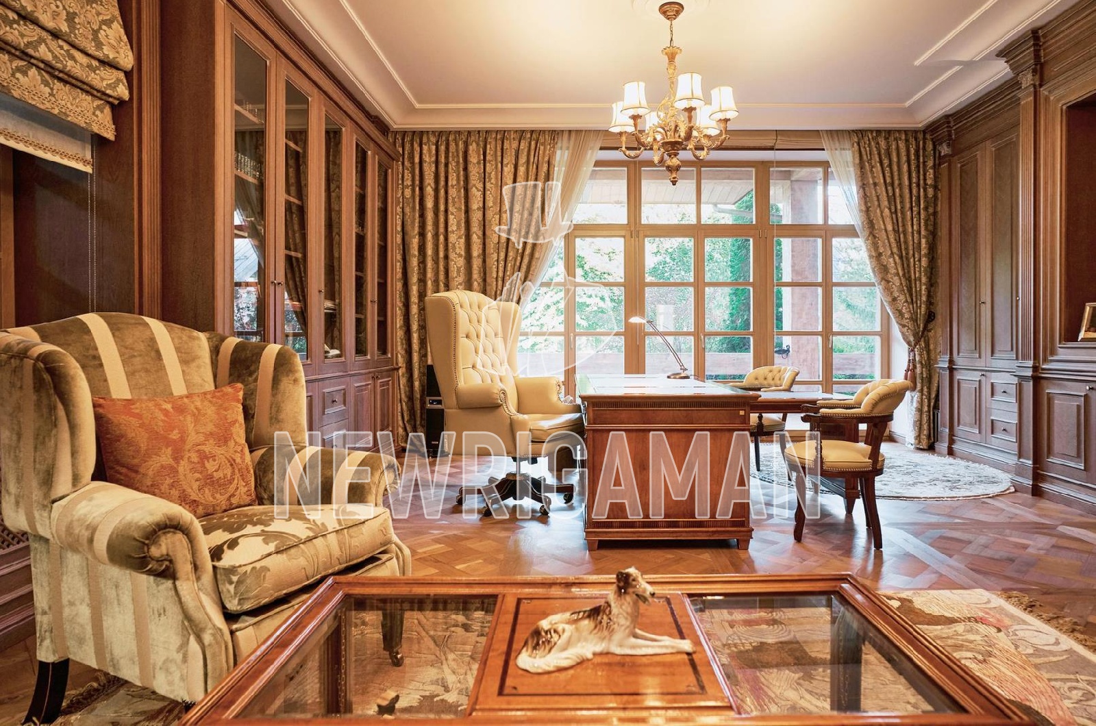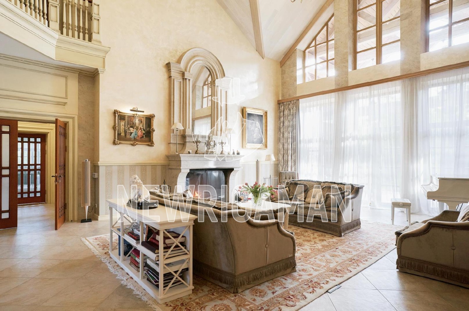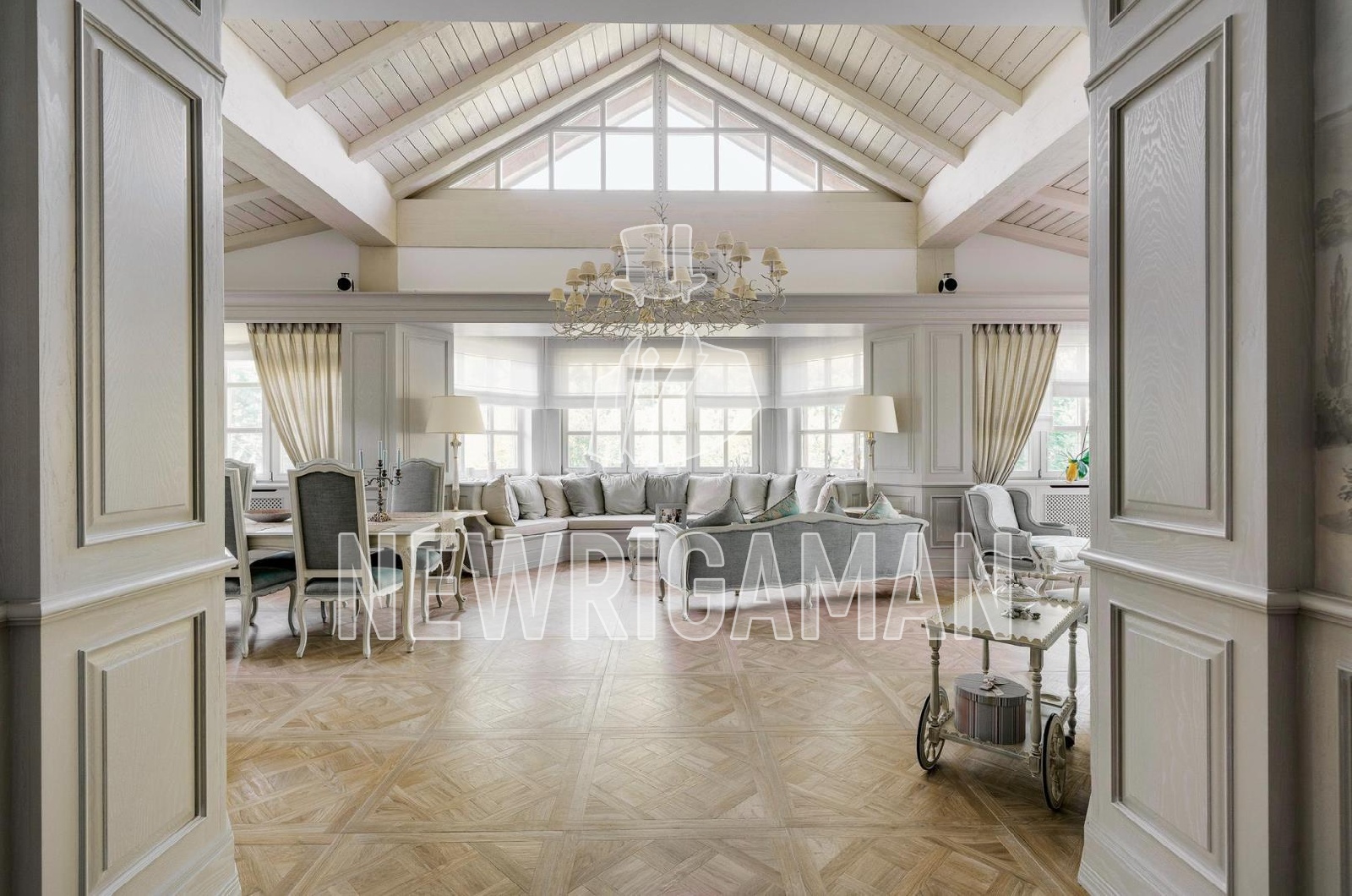 Продажа загородного дома площадью 1185 кв. м. Минское шоссе, 11 км. от МКАД. Коттеджный поселок Грибово. Дом построен в 2 этажа, под ключ. Загородная резиденция объединяет 4 архитектурных объекта в едином стиле швейцарского шале: трехуровневый жилой дом, двухуровневый SPA-комплекс, дом для персонала и гараж с постом охраны. Широкие силуэты крыш с мощной системой стропил из хвойных пород деревьев органично сливаются с кронами вековых деревьев, создавая гармоничный ансамбль, где кирпичная кладка сочетается с бревнами ручной рубки. Основной дом наполнен естественным светом благодаря панорамным окнам, второму свету в гостиной и высоким потолкам. Интерьеры демонстрируют стиль тихой роскоши: кухня с мебелью Mantegna от Angelo Cappellini в классическом стиле; гостиная с диванами Bruno Zampa, витринами Angelo Cappellini и светильниками Zonca, где готический модерн сводов сочетается с элегантной классикой камина; рабочий кабинет с библиотекой, письменным столом Tosato и креслами Masheroni; спальни, оформленные в классическом и современном стилях с мебелью Cimarosa, Flai и дизайнерскими светильниками Bover. На участке площадью 50 соток выполнен ландшафтный дизайн.