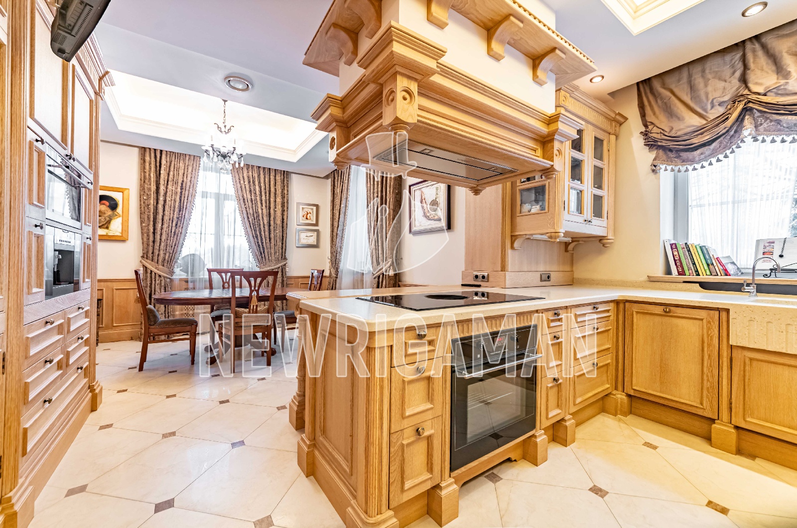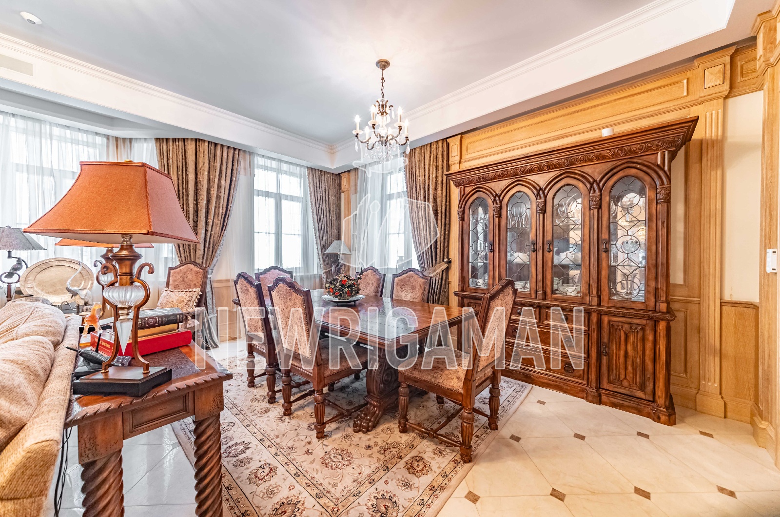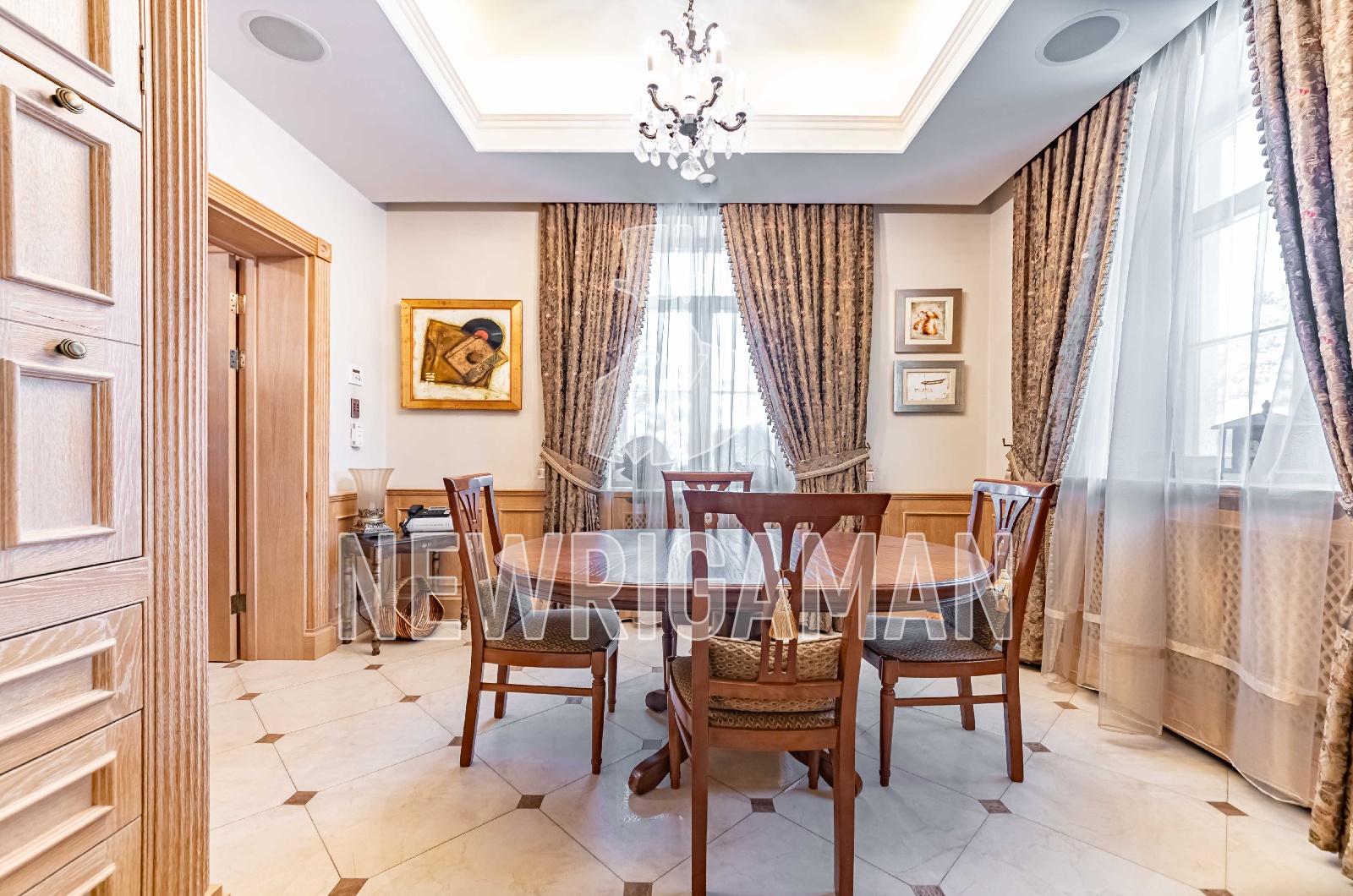 Продается загородный дом общей площадью 535 кв.м. Новорижское шоссе, 14 км. Коттеджный поселок Павлово. Филенчатые деревянные стеновые панели - один из ключевых элементов английского интерьера. Они не только придают пространству благородство и выразительность, но и отличаются высокой практичностью, надежно защищая стены от повседневных повреждений. Рисунок и пропорции филенок, используемых в столярных изделиях, выдержаны в едином стиле, формируя гармоничную основу всего интерьера. Особое внимание в английских домах традиционно уделяется дизайну санузлов и качеству сантехники. Для этого стиля характерны изящные смесители с плавными, витиеватыми формами, а также белые фаянсовые вставки на ручках и вентилях, подчёркивающие классический характер интерьера и его утонченную эстетику. Вдохновением для создания проекта террасы с южной стороны дома послужил замок принцессы Ольденбургской в Рамони, Воронежской области. Его архитектура, пропорции и исторический характер нашли отражение в образе террасы, создавая атмосферу аристократической загородной резиденции. Дом расположен на участке площадью 20 соток, что позволило органично связать архитектуру здания с окружающим ландшафтом, предусмотреть просторную зону отдыха и сохранить ощущение уединения и комфорта в окружении природы.