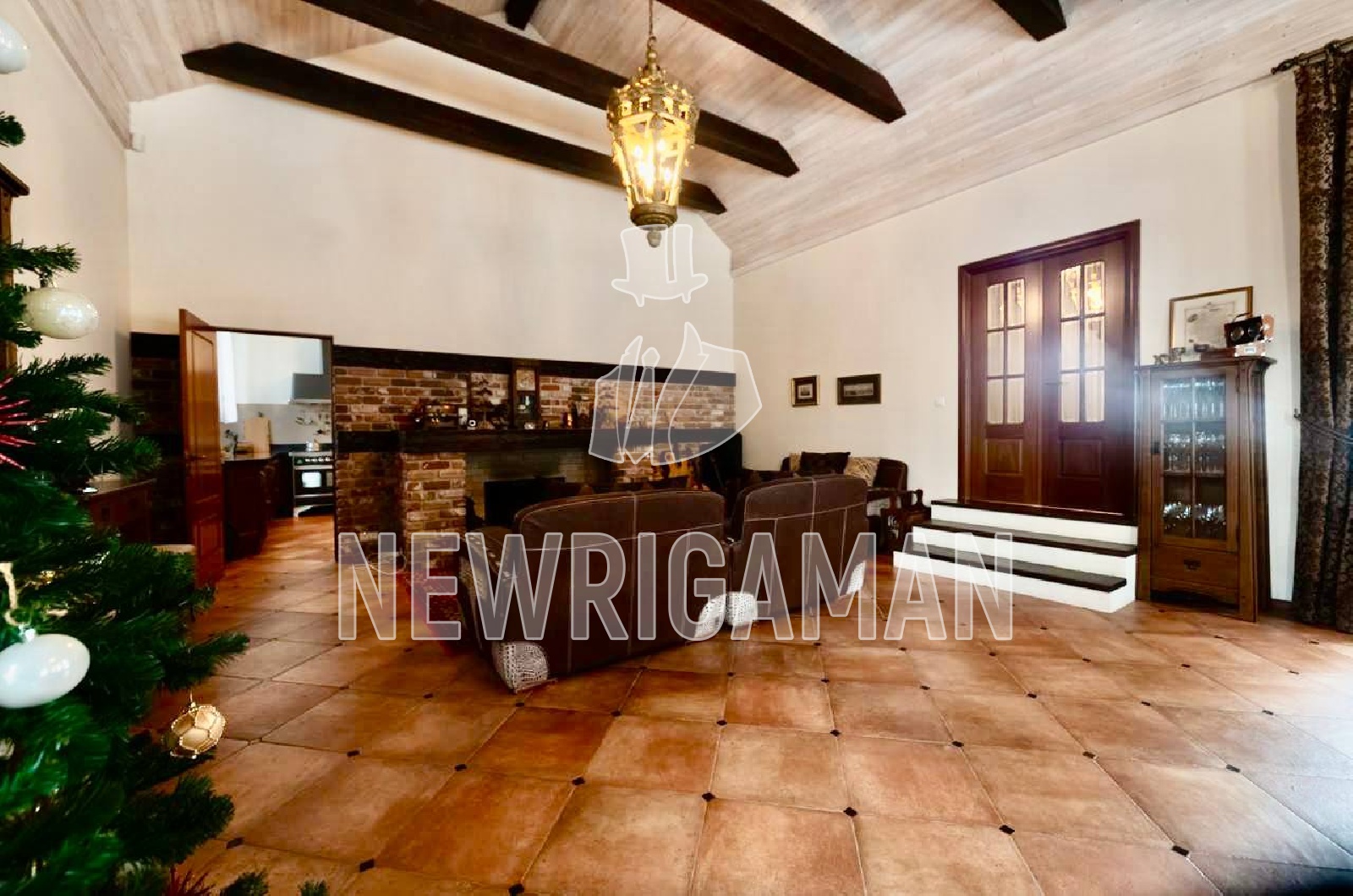 Гостевой дом: просторный холл, гостевая комната, большая гостиная с камином, кухня.