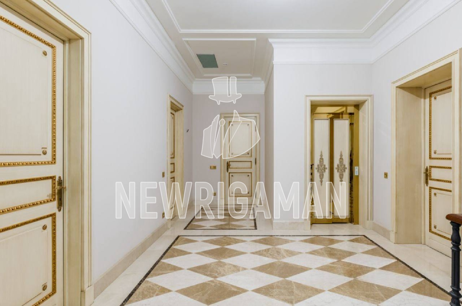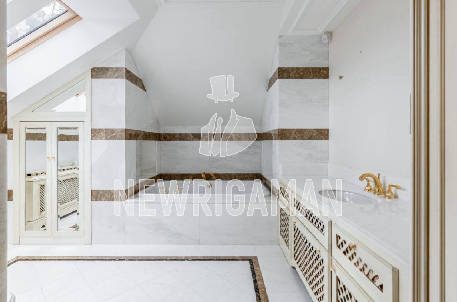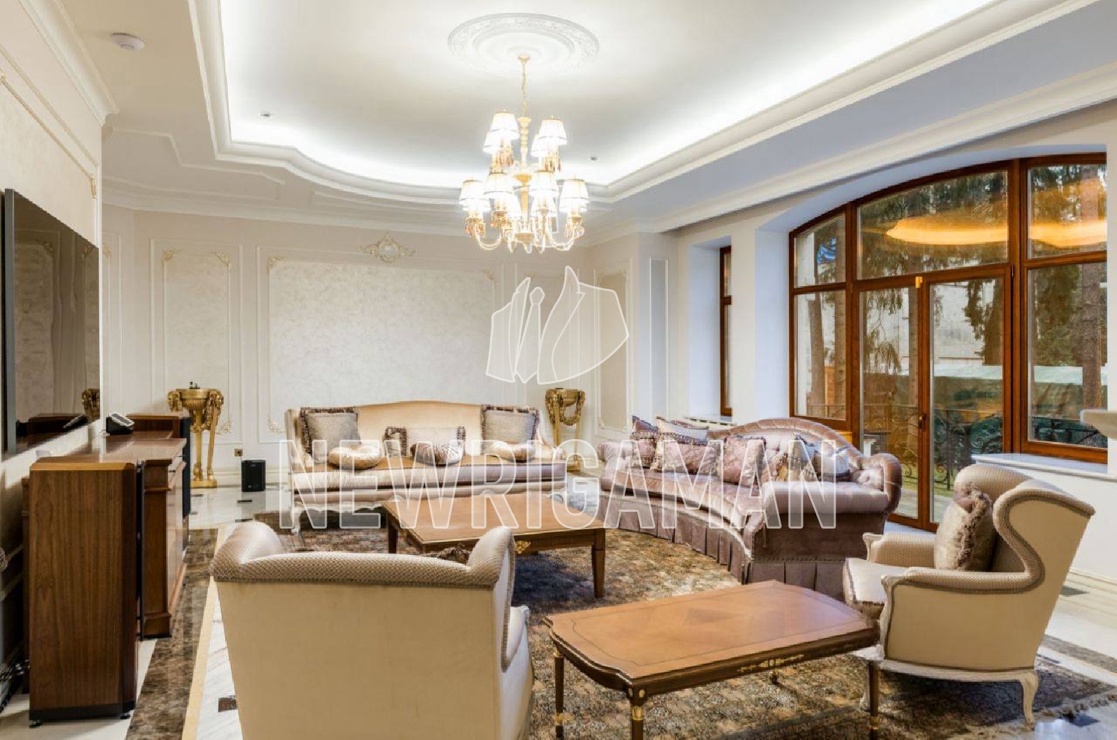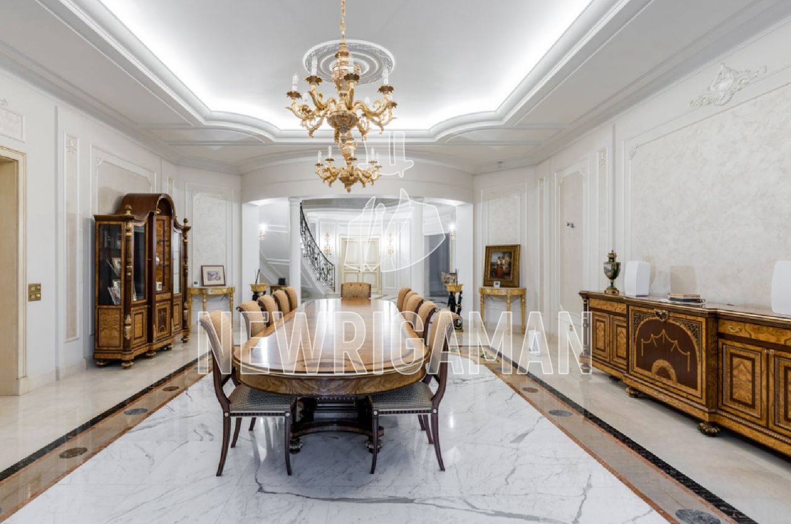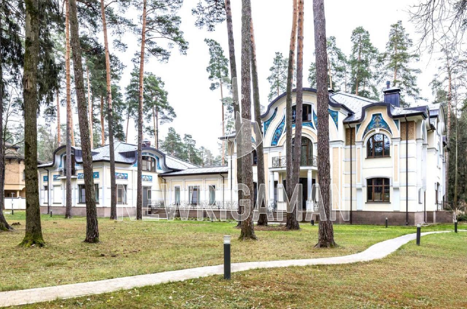 Продажа загородного дома общей площадью 2100 кв.м. Коттеджный поселок Сады Майендорф. Рублево-Успенское шоссе, 7 км от МКАД. Дом построен в 2 этажа, под ключ. Фасад выполнен из высококачественных материалов. Оборудован всей необходимой мебелью м сантехникой. Все коммуникации центральные. На участке также расположен дом охраны (380 м²) с тремя комнатами и кухней, гараж на 6 автомобилей. На участке площадью 75 соток выполнен ландшафтный дизайн.