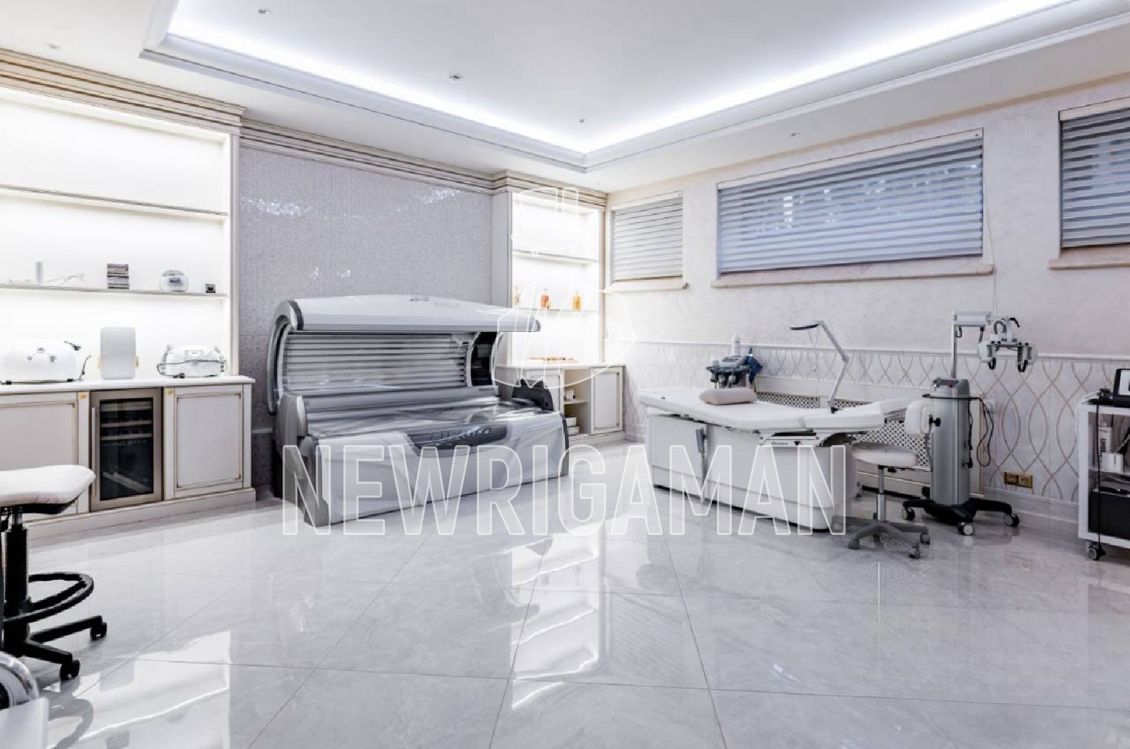 1 этаж - холл, кабинет, гардеробная, гостиная с камином, малая гостиная, столовая, кухня, с/у, гостевая спальня с с/у, спа-зона с бассейном, сауна, хаммам, комната отдыха с мини-кухней,