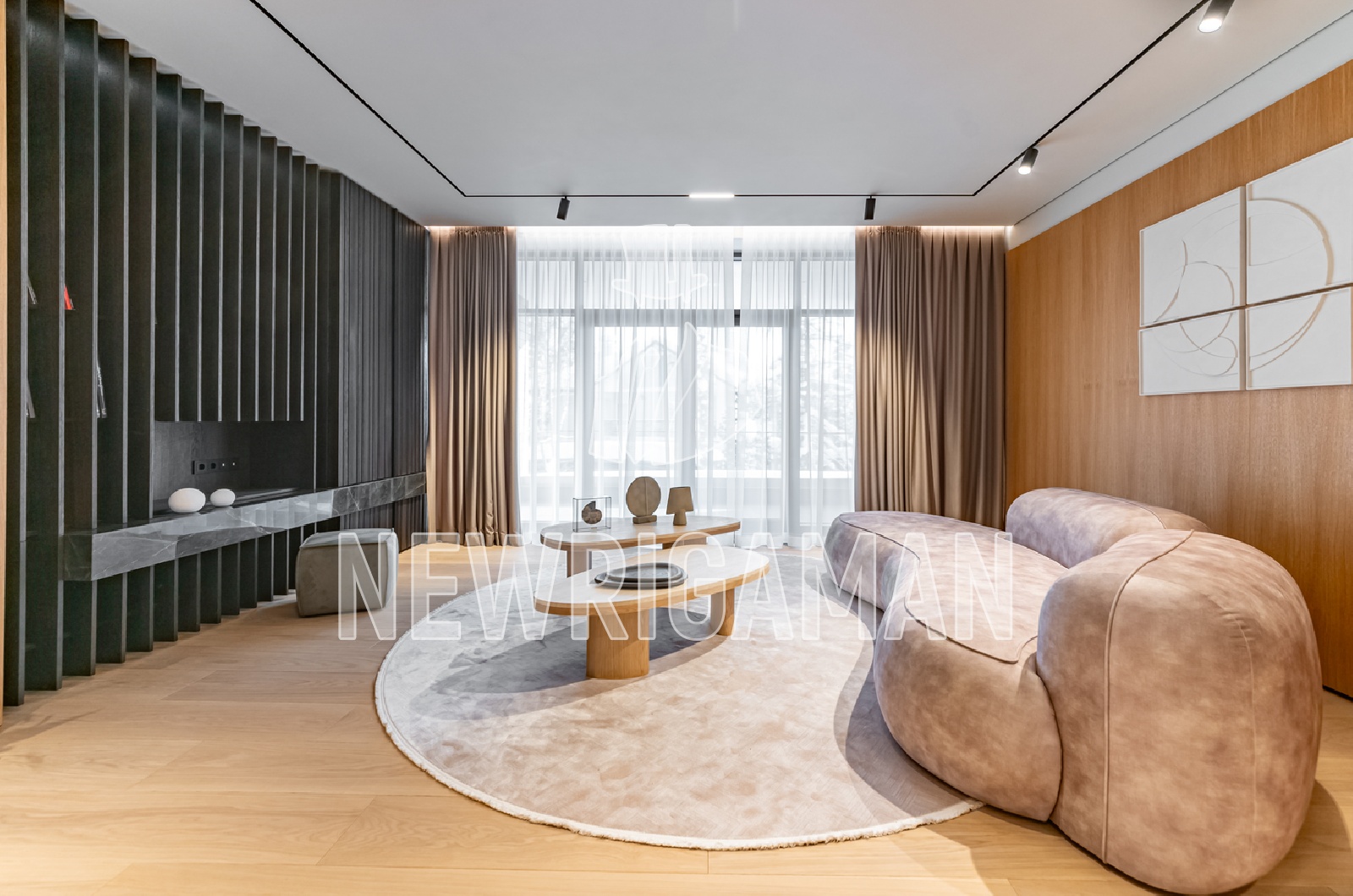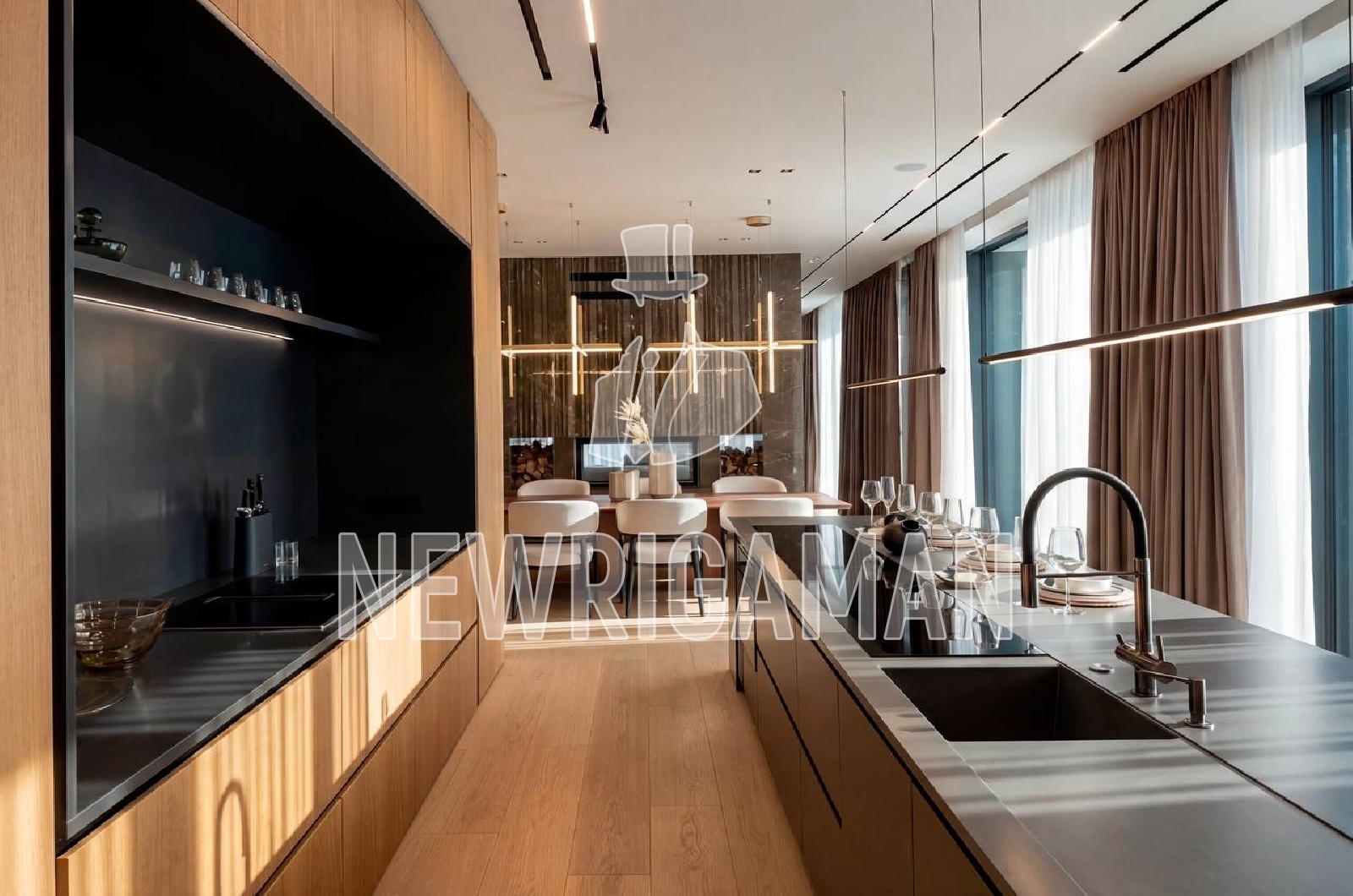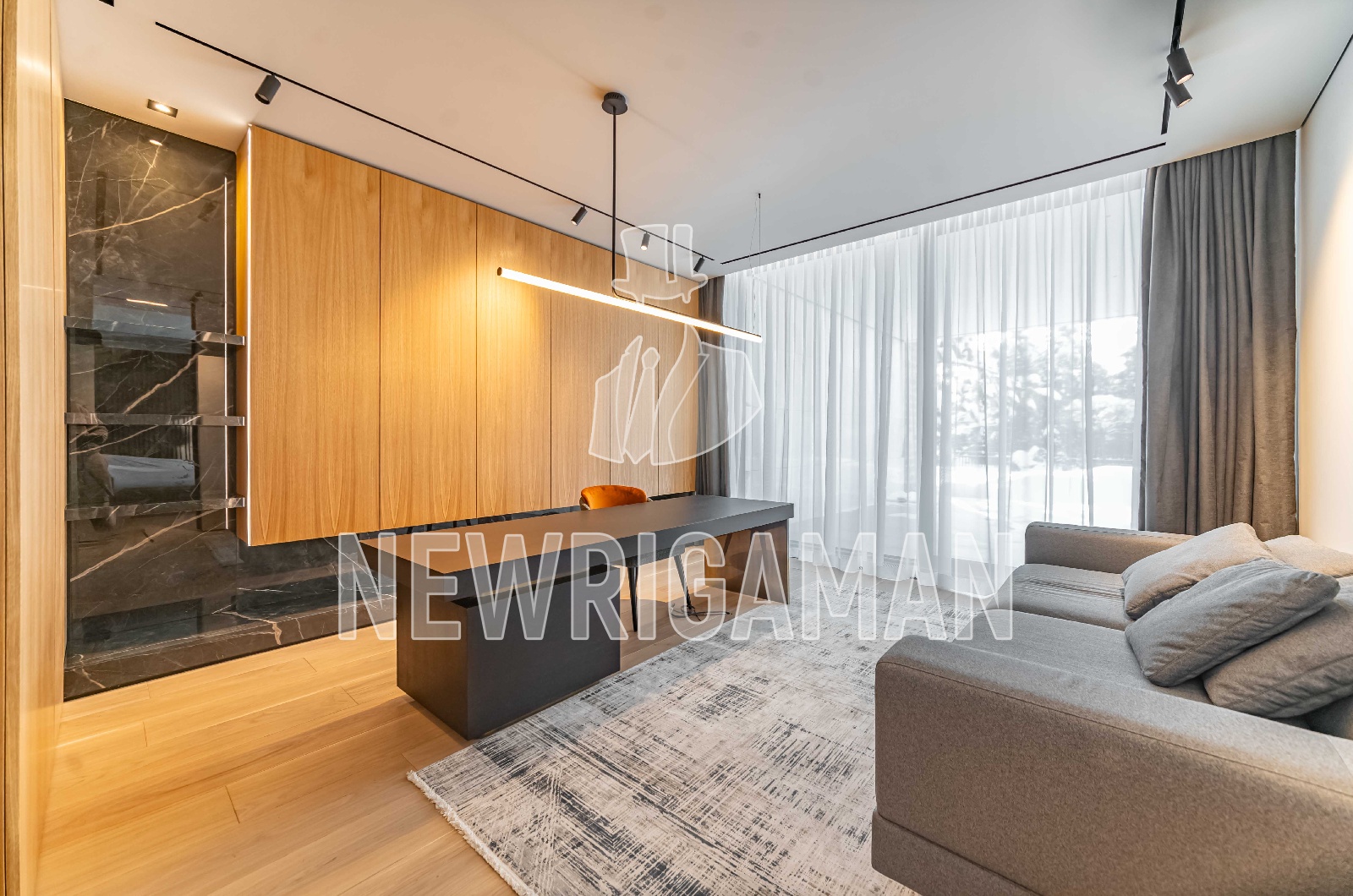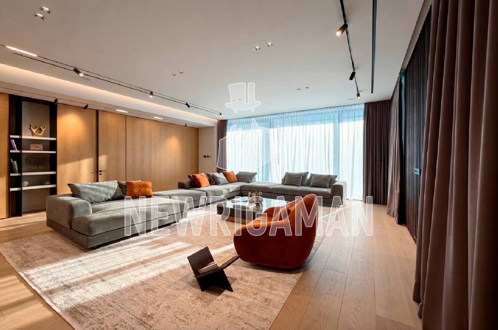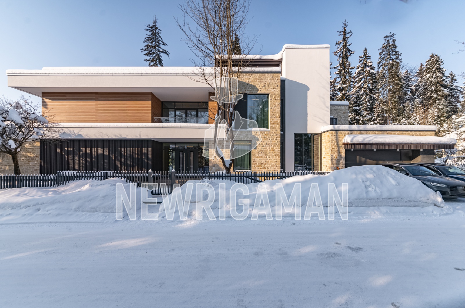 1 этаж - холл, гардеробная, кабинет c с/у, гостиная, столовая, кухня, рабочая кухня, c/у, спальня с с/у, кладовая, комната персонала с кухней и с/у, гараж на 2 м/м,