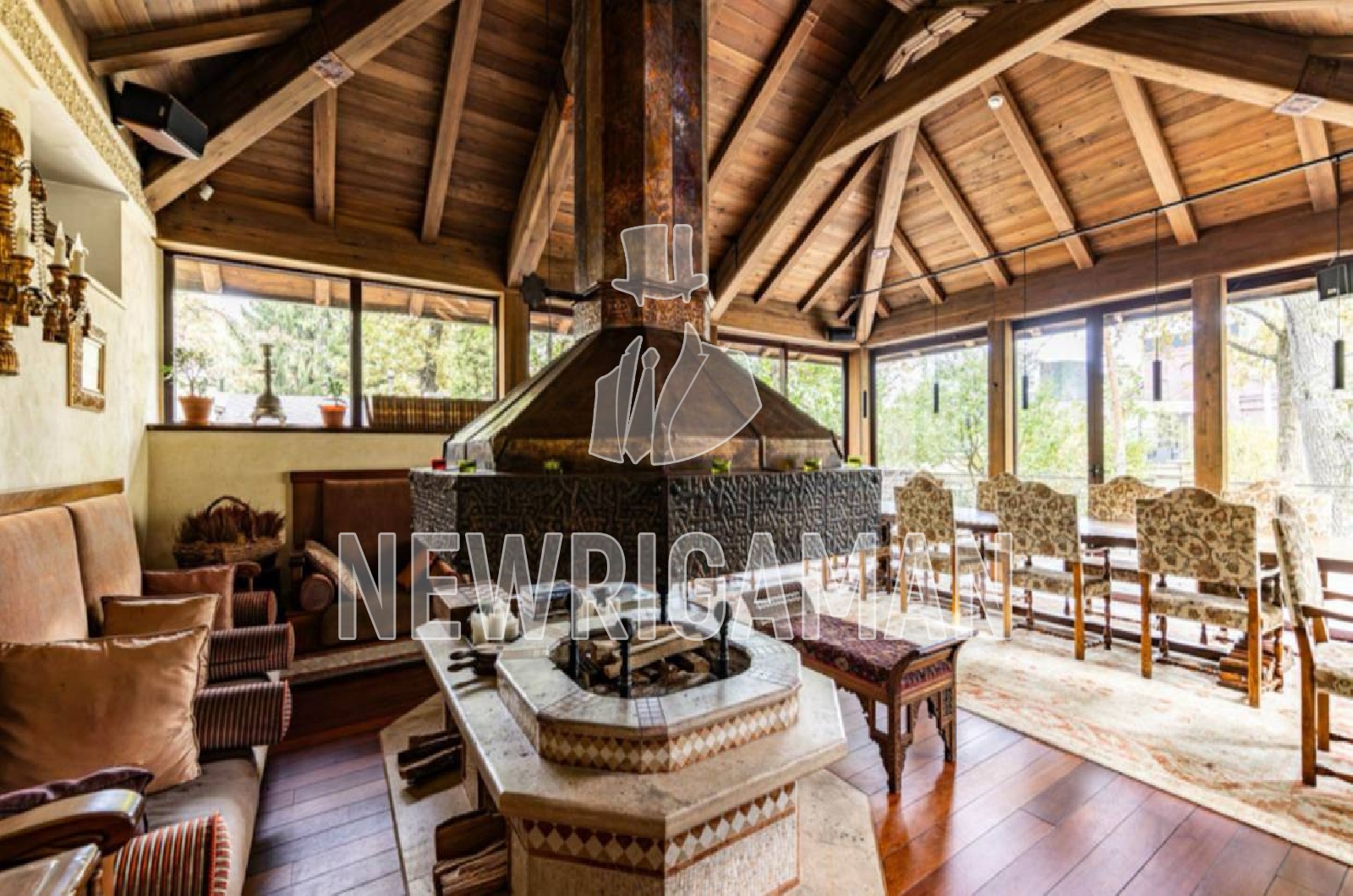 Гостевой дом 2 - кухня, столовая, бар, каминный зал, гардероб, терраса.