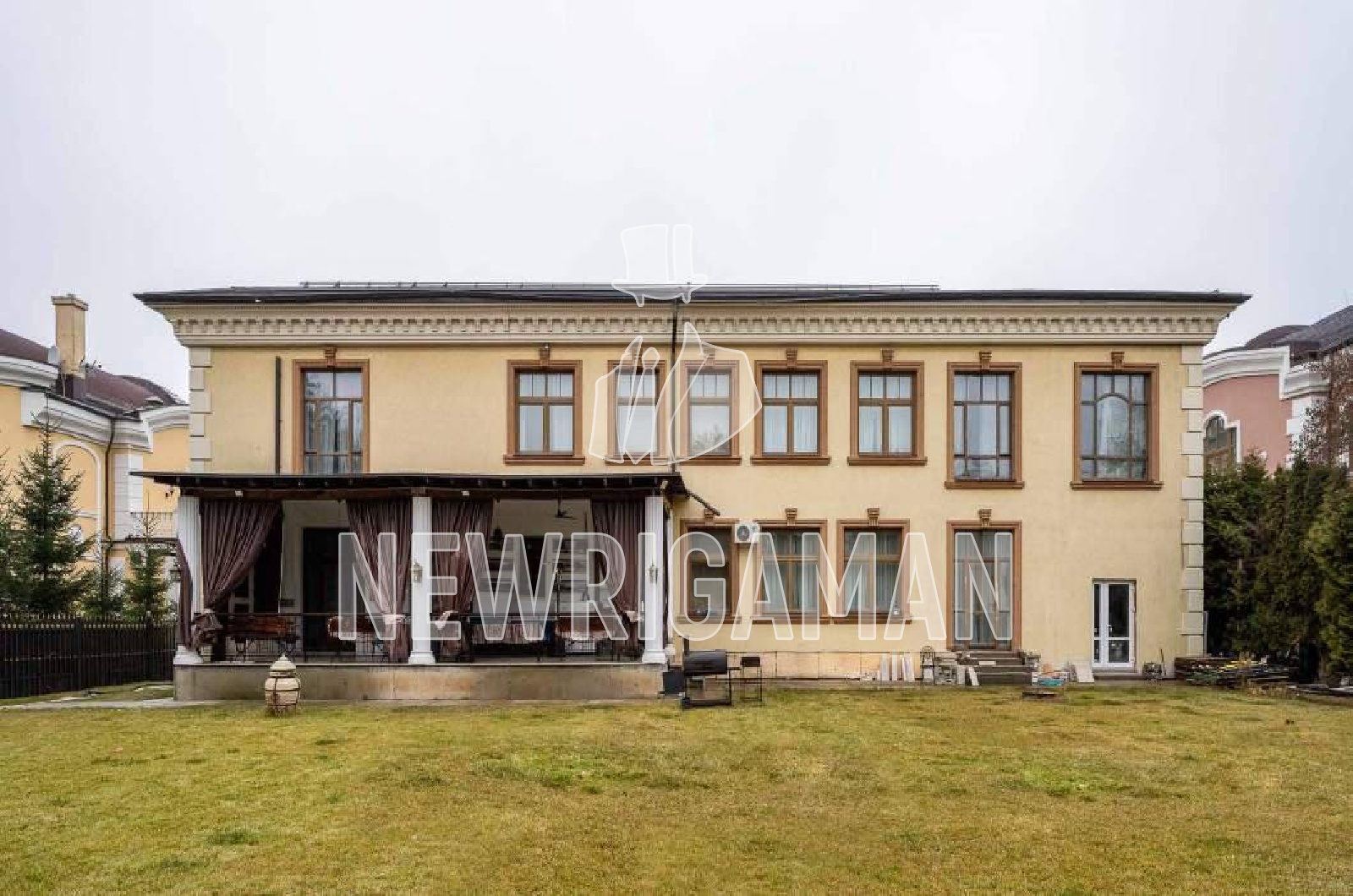 Продажа нового загородного дома площадью 1381 кв.м. Новорижское шоссе 12 км. Коттеджный поселок Новахово. Коттедж построен в 2 этажа, под ключ. Композиционной темой этого дома стала лестница, спроектированная в 20х годах ХХ века Коко Шанель для своего салона на улице Камбон в Париже. Двухсветная гостиная в виде полураскрытого веера через высокие окна-двери открывает панораму сада, скрытого от посторонних глаз высокими хвойными деревьями. Широкая лестница с мраморными ступенями, панорамные окна, напольные панно из натурального оникса, увеличенные двери из массива ореха и настенные панели из американского дуба создают атмосферу роскоши и изящества, что делает данный проект необычайно притягательным. Интерьер в классическом стиле завершен на 85%, несколько помещений свободного назначения позволяют как продолжить задумку автора, так и дополнить ее собственным решением в зависимости от сценариев жизни нового владельца. Планировки тщательно продуманы автором для комфортной жизни и достойного приема гостей. Площадь участка 18 соток.