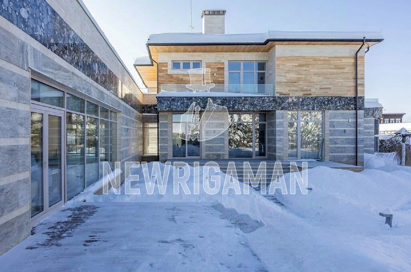 Продажа загородного дома общей площадью 700 кв.м. Новорижское шоссе, 19 км от МКАД. Коттеджный поселок Миллениум парк. Дом построен в 2 этажа, под ключ. Выполнена дизайнерская отделка под ключ. Фасад здания отделан травертином, тиком и итальянским гранитом. Пол также уложен травертином. Двери и окна выполнены из массива дуба. Высота потолков 3.5 метра. В котельной установлены два газовых котла buderus, система водоотчистки. В каждой комнате установлены кондиционеры Daikin. На участке площадью 21 сотка выполнен дорогой ландшафтный дизайн в классическом стиле. Установлен автополив по всему периметру участка.
