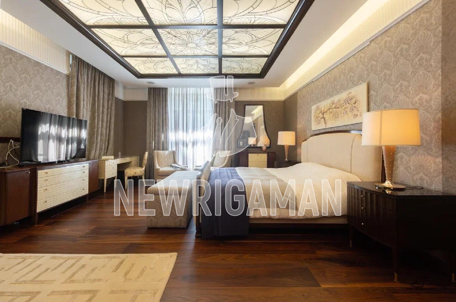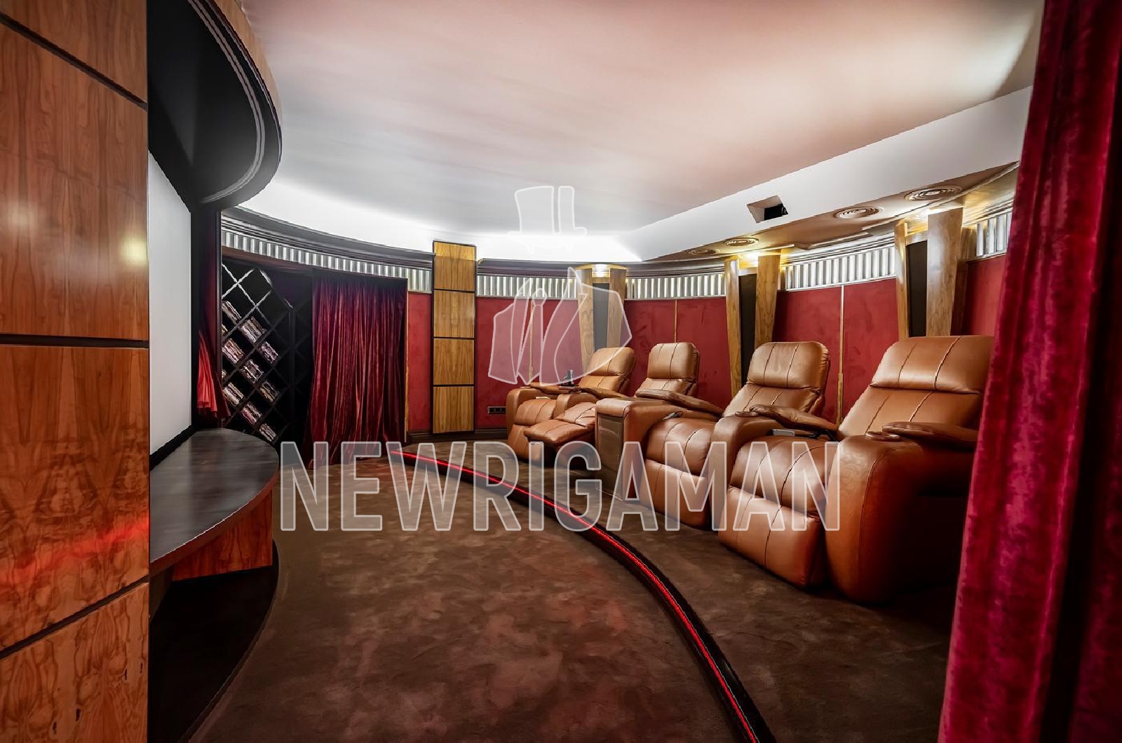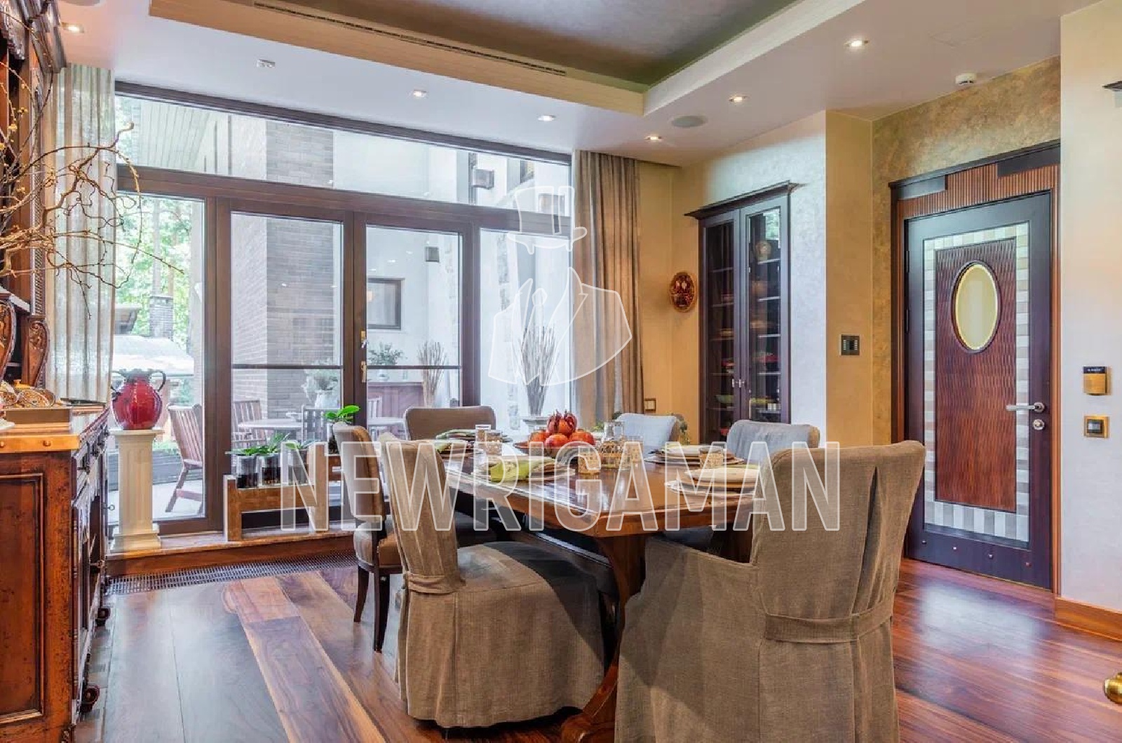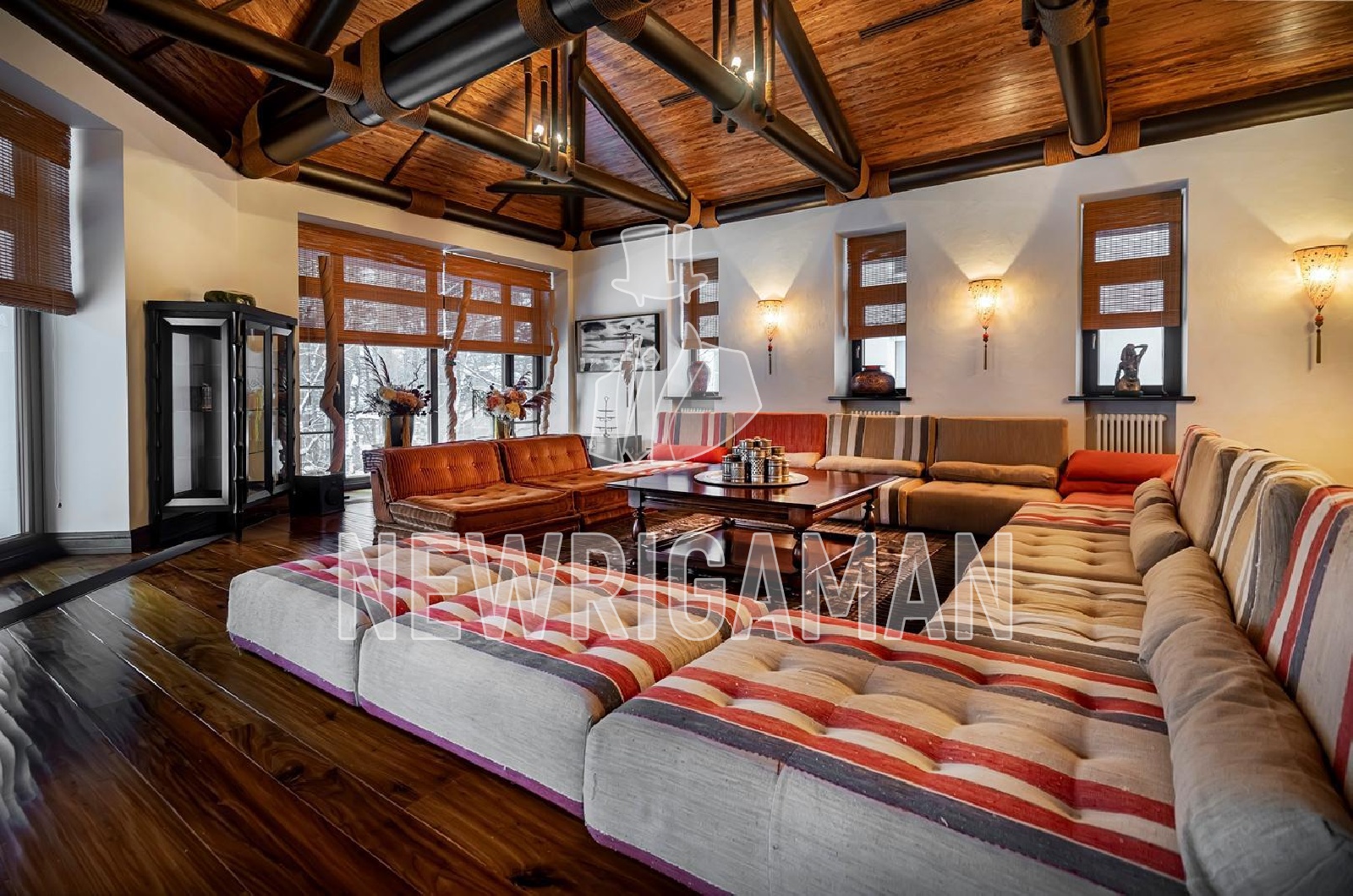 Продажа загородного дома площадью 1077 кв. м. Сколковское шоссе, 2 км от МКАД. Коттеджный поселок Сколково. Дом построен в 3 этажа под ключ. Фасады здания выполнены архитектурным бюро Николая Голованова и Дмитрия Величкина в стилистике известнейшего американского архитектора Фрэнка Ллойда Райта, облицованы дорогостоящим немецким клинкерным кирпичом и кварцитом. Вся кровельная фурнитура всех построек на участке выполнена из меди. Подшивки карнизов – дерево. Окна с тройным остеклением, отсечением излишних УФ лучей и шумоизоляцией, в деревянных рамах. У дома имеются просторные балконы. Интерьеры выдержаны в стиле Ар-деко с современными элементами. В отделке использованы только высококлассные дорогостоящие материалы и оборудование. Паркет – из массива американского ореха и дуба. Настенные деревянные панели из массива карельской березы, ореха, махагона, и др. Панно из полудрагоценных камней: агат, содалит, оникс. Пол в холле выполнен из мрамора Portoro Nero – одного из самых редких и дорогих видов мрамора, добываемого под толщей вод Средиземного моря в Италии. В доме собрана коллекция картин, арт объектов, художественной керамики. Баня из цельного сибирского кедрового бруса с печью Mironoff мелко дисперсного пара, двумя зонами отдыха, купелью и столом для мыльного массажа – это изюминка данного домовладения! Выполнено благоустройство, разбит сад и дорожки, осуществлены уличные подсветки. Подведены все коммуникации. На участке разбита беседка, имеется терраса из кухни. Завершается строительство крытой беседки с барбекю. На участке оборудован гараж на две машины с комнатой охраны и апартаменты для обслуживающего персонала. Площадь участка 45 соток.