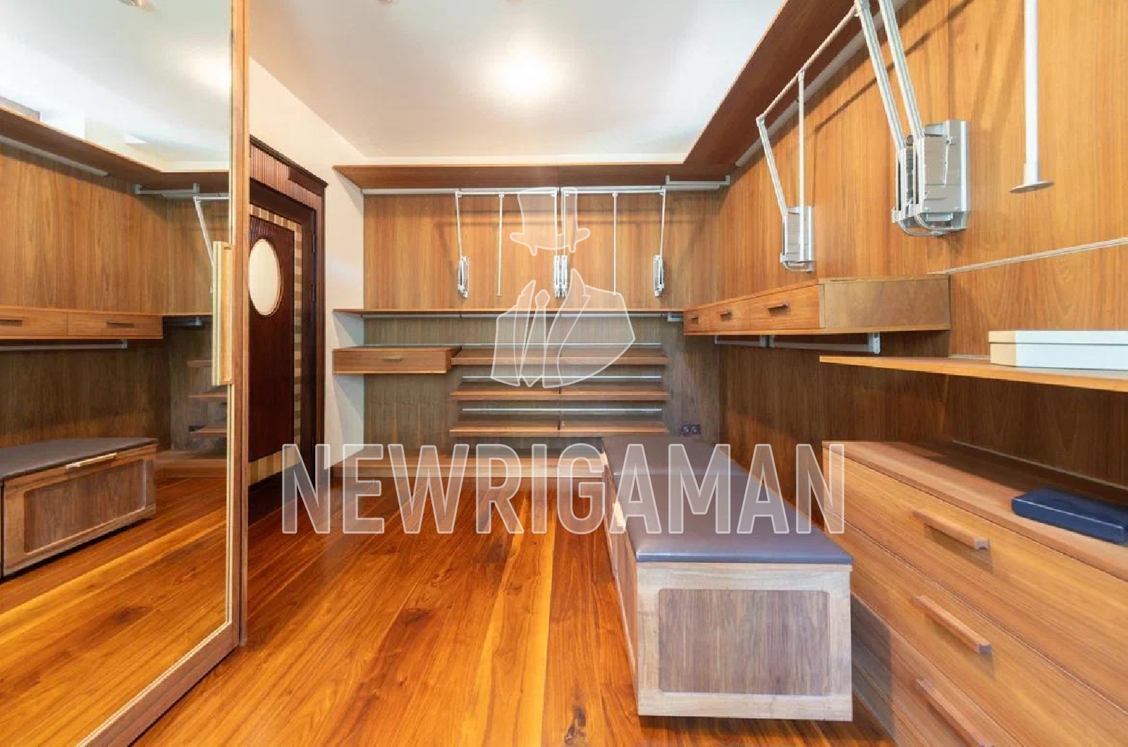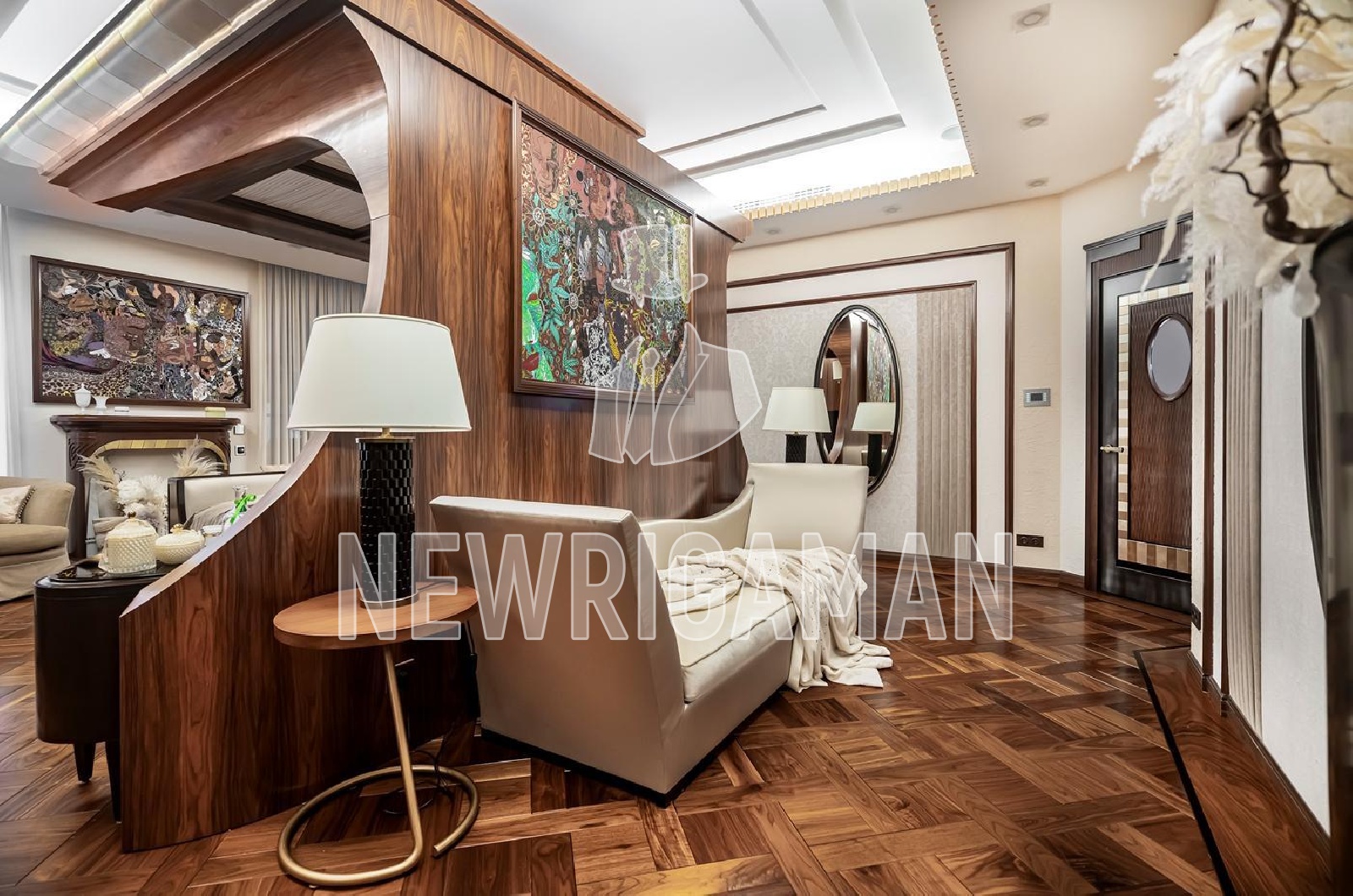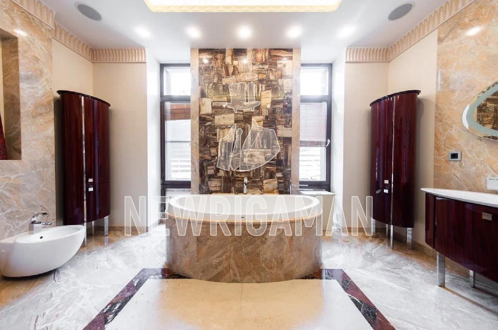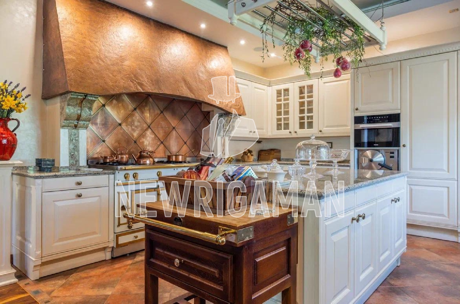 Продажа загородного дома площадью 1077 кв. м. Сколковское шоссе, 2 км от МКАД. Коттеджный поселок Сколково. Дом построен в 3 этажа под ключ. Фасады здания выполнены архитектурным бюро Николая Голованова и Дмитрия Величкина в стилистике известнейшего американского архитектора Фрэнка Ллойда Райта, облицованы дорогостоящим немецким клинкерным кирпичом и кварцитом. Вся кровельная фурнитура всех построек на участке выполнена из меди. Подшивки карнизов – дерево. Окна с тройным остеклением, отсечением излишних УФ лучей и шумоизоляцией, в деревянных рамах. У дома имеются просторные балконы. Интерьеры выдержаны в стиле Ар-деко с современными элементами. В отделке использованы только высококлассные дорогостоящие материалы и оборудование. Паркет – из массива американского ореха и дуба. Настенные деревянные панели из массива карельской березы, ореха, махагона, и др. Панно из полудрагоценных камней: агат, содалит, оникс. Пол в холле выполнен из мрамора Portoro Nero – одного из самых редких и дорогих видов мрамора, добываемого под толщей вод Средиземного моря в Италии. В доме собрана коллекция картин, арт объектов, художественной керамики. Баня из цельного сибирского кедрового бруса с печью Mironoff мелко дисперсного пара, двумя зонами отдыха, купелью и столом для мыльного массажа – это изюминка данного домовладения! Выполнено благоустройство, разбит сад и дорожки, осуществлены уличные подсветки. Подведены все коммуникации. На участке разбита беседка, имеется терраса из кухни. Завершается строительство крытой беседки с барбекю. На участке оборудован гараж на две машины с комнатой охраны и апартаменты для обслуживающего персонала. Площадь участка 45 соток.