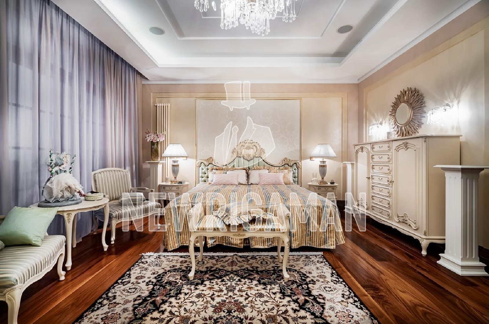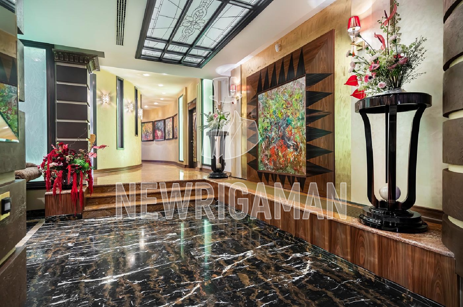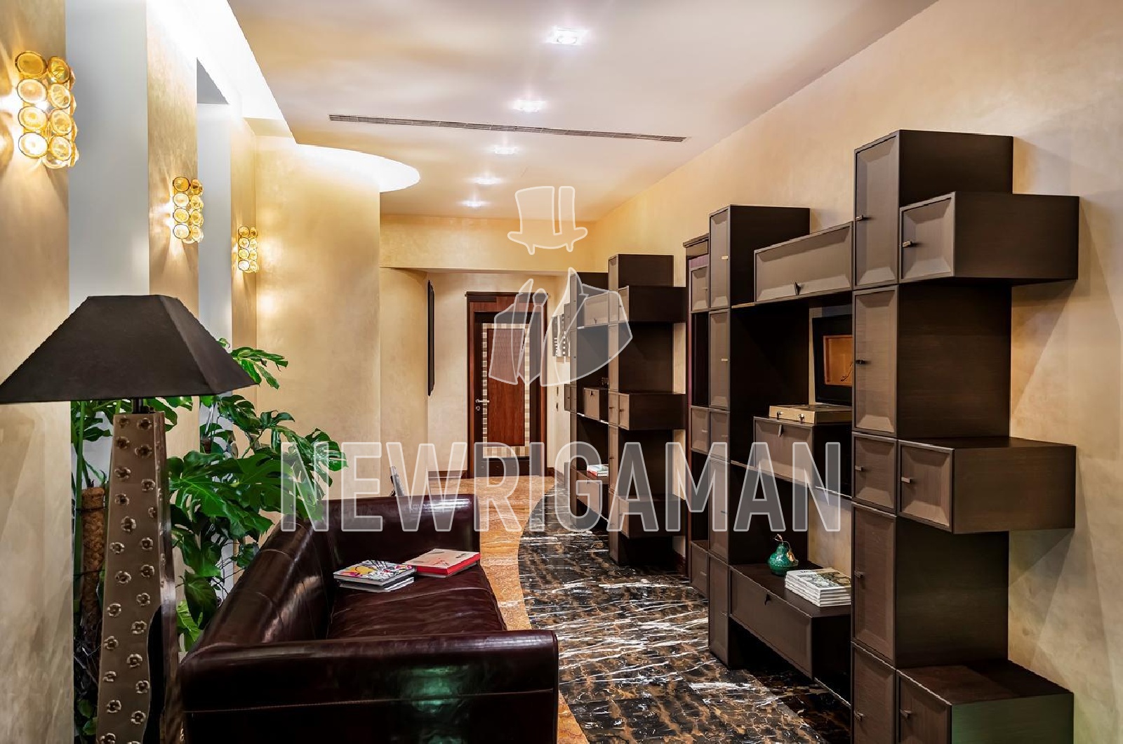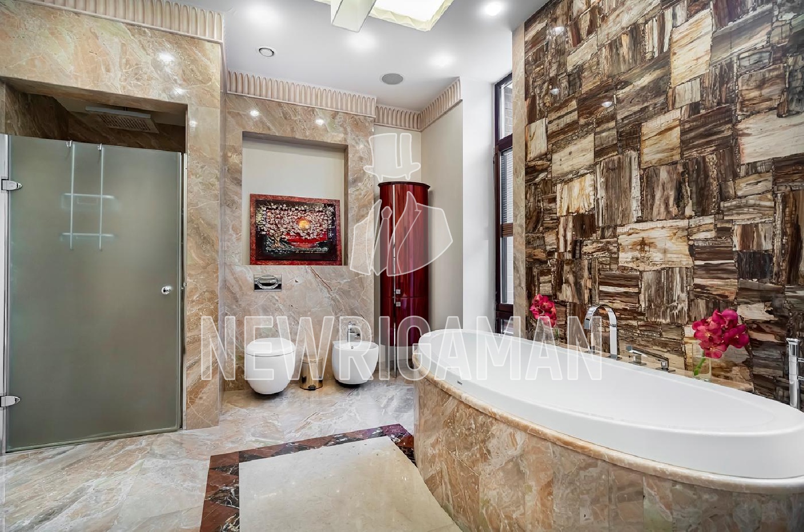 Продажа загородного дома площадью 1077 кв. м. Сколковское шоссе, 2 км от МКАД. Коттеджный поселок Сколково. Дом построен в 3 этажа под ключ. Фасады здания выполнены архитектурным бюро Николая Голованова и Дмитрия Величкина в стилистике известнейшего американского архитектора Фрэнка Ллойда Райта, облицованы дорогостоящим немецким клинкерным кирпичом и кварцитом. Вся кровельная фурнитура всех построек на участке выполнена из меди. Подшивки карнизов – дерево. Окна с тройным остеклением, отсечением излишних УФ лучей и шумоизоляцией, в деревянных рамах. У дома имеются просторные балконы. Интерьеры выдержаны в стиле Ар-деко с современными элементами. В отделке использованы только высококлассные дорогостоящие материалы и оборудование. Паркет – из массива американского ореха и дуба. Настенные деревянные панели из массива карельской березы, ореха, махагона, и др. Панно из полудрагоценных камней: агат, содалит, оникс. Пол в холле выполнен из мрамора Portoro Nero – одного из самых редких и дорогих видов мрамора, добываемого под толщей вод Средиземного моря в Италии. В доме собрана коллекция картин, арт объектов, художественной керамики. Баня из цельного сибирского кедрового бруса с печью Mironoff мелко дисперсного пара, двумя зонами отдыха, купелью и столом для мыльного массажа – это изюминка данного домовладения! Выполнено благоустройство, разбит сад и дорожки, осуществлены уличные подсветки. Подведены все коммуникации. На участке разбита беседка, имеется терраса из кухни. Завершается строительство крытой беседки с барбекю. На участке оборудован гараж на две машины с комнатой охраны и апартаменты для обслуживающего персонала. Площадь участка 45 соток.