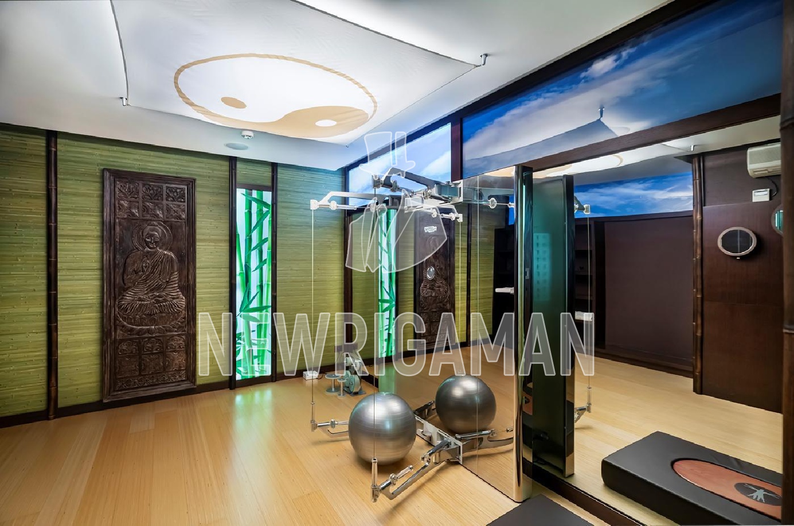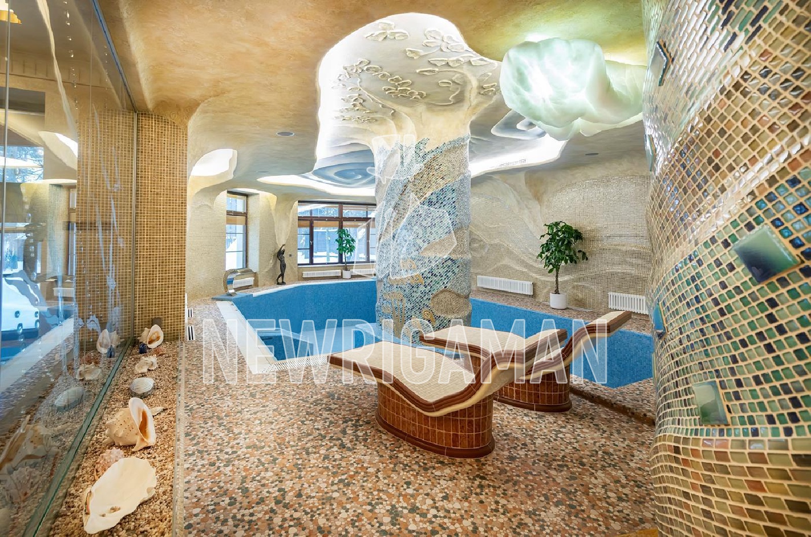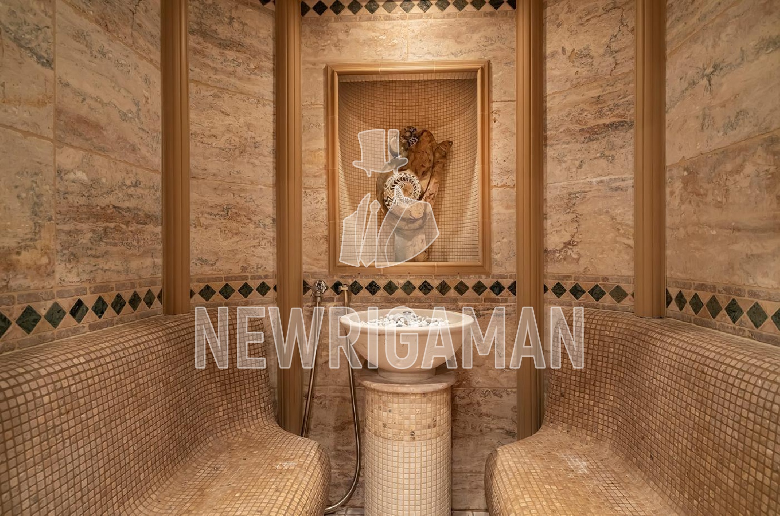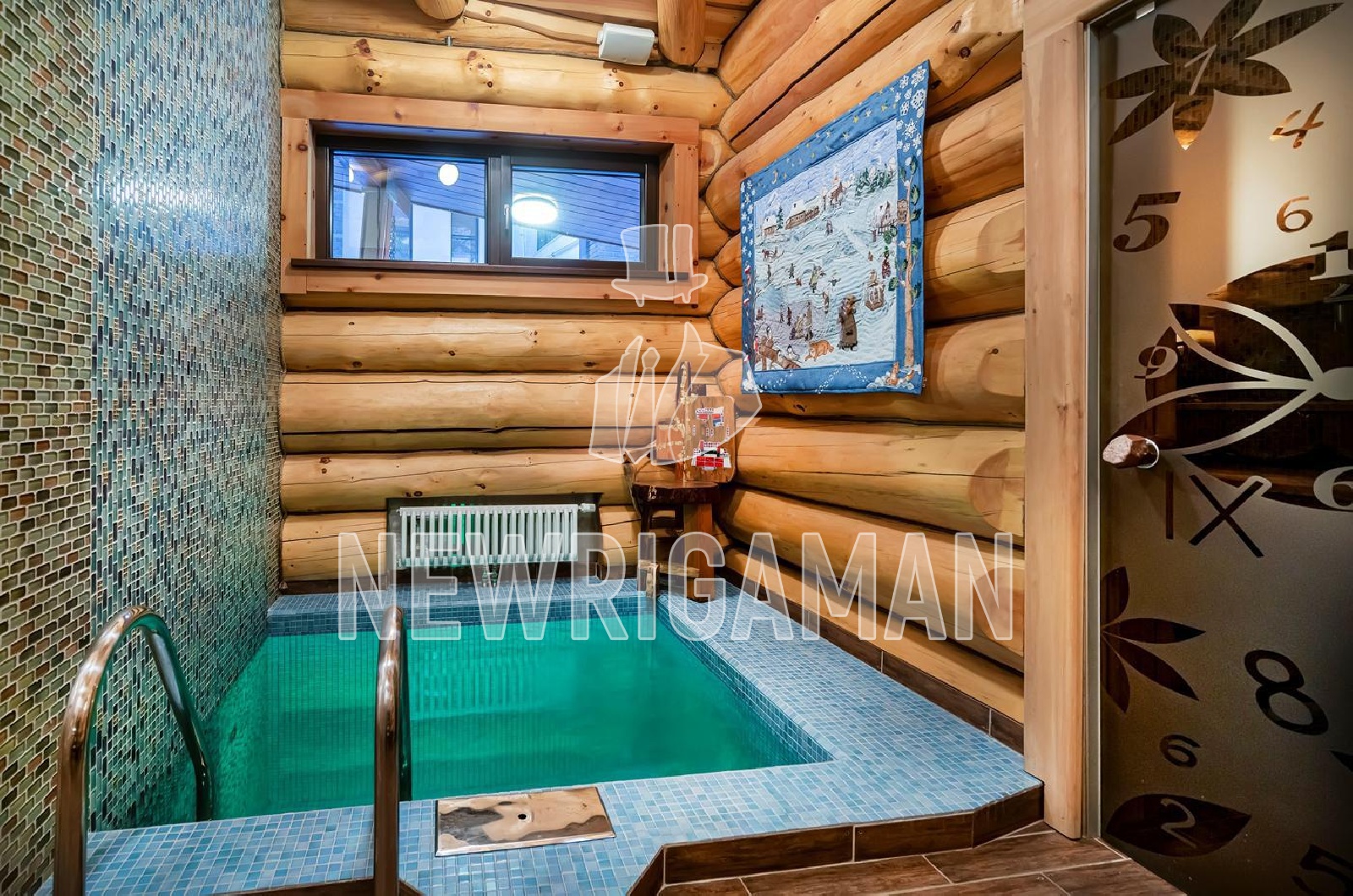 1 этаж - холл, гостиная с дровяным камином, вторым светом и панорамными окнами, кухня с выходом на террасу, столовая, 2 спальни с гардеробными и с/у, спортзал, хаммам, бассейн, душевая, с/у,
