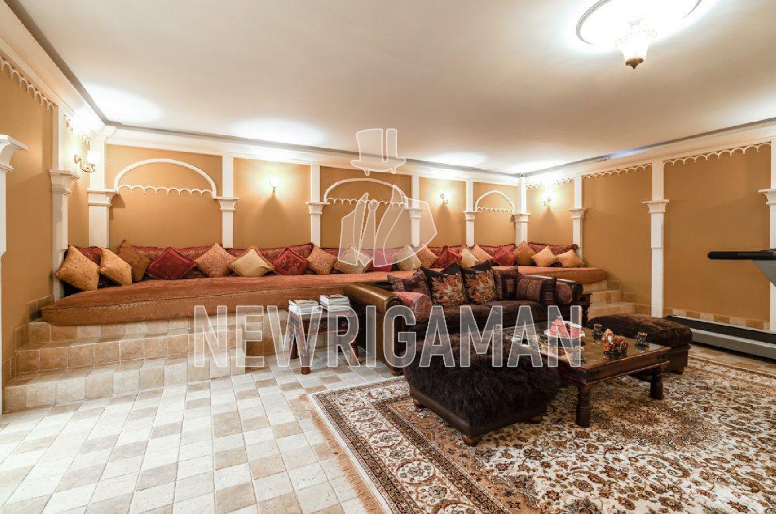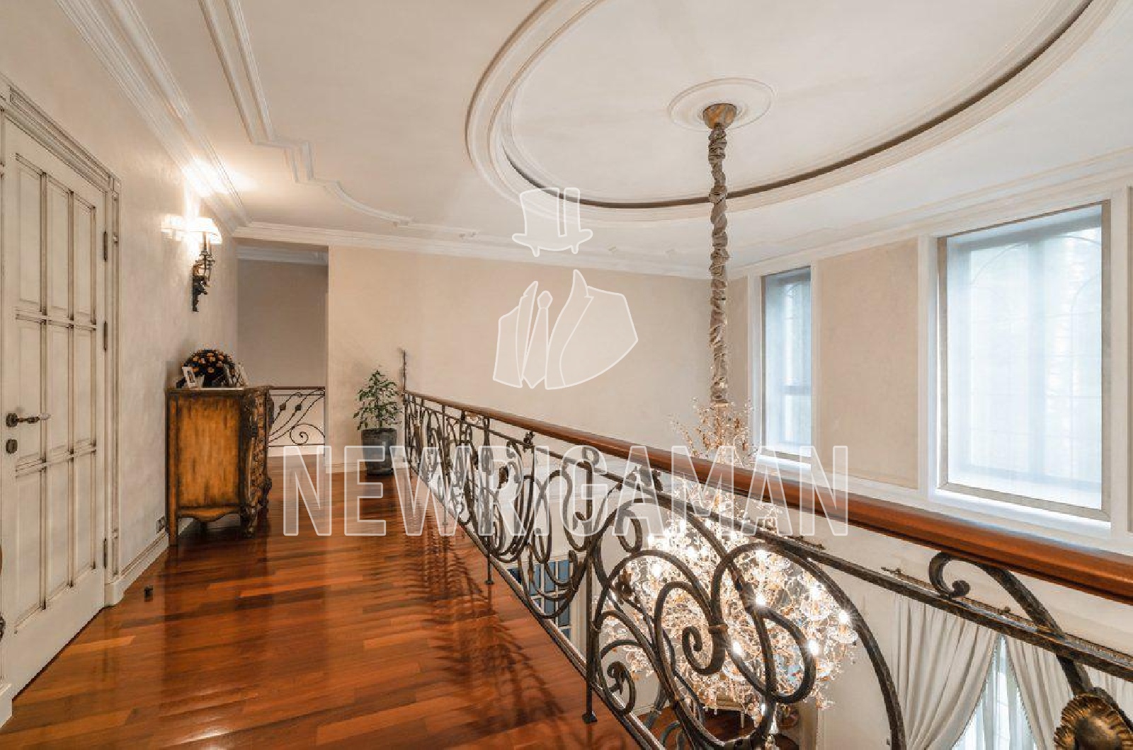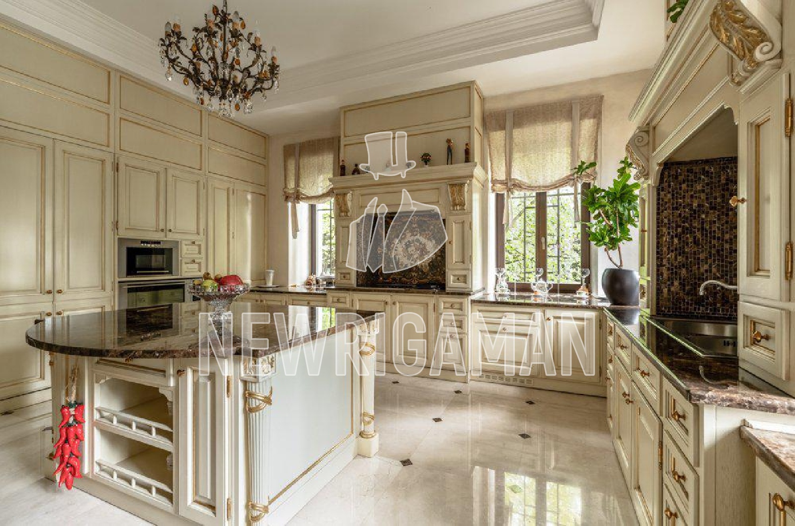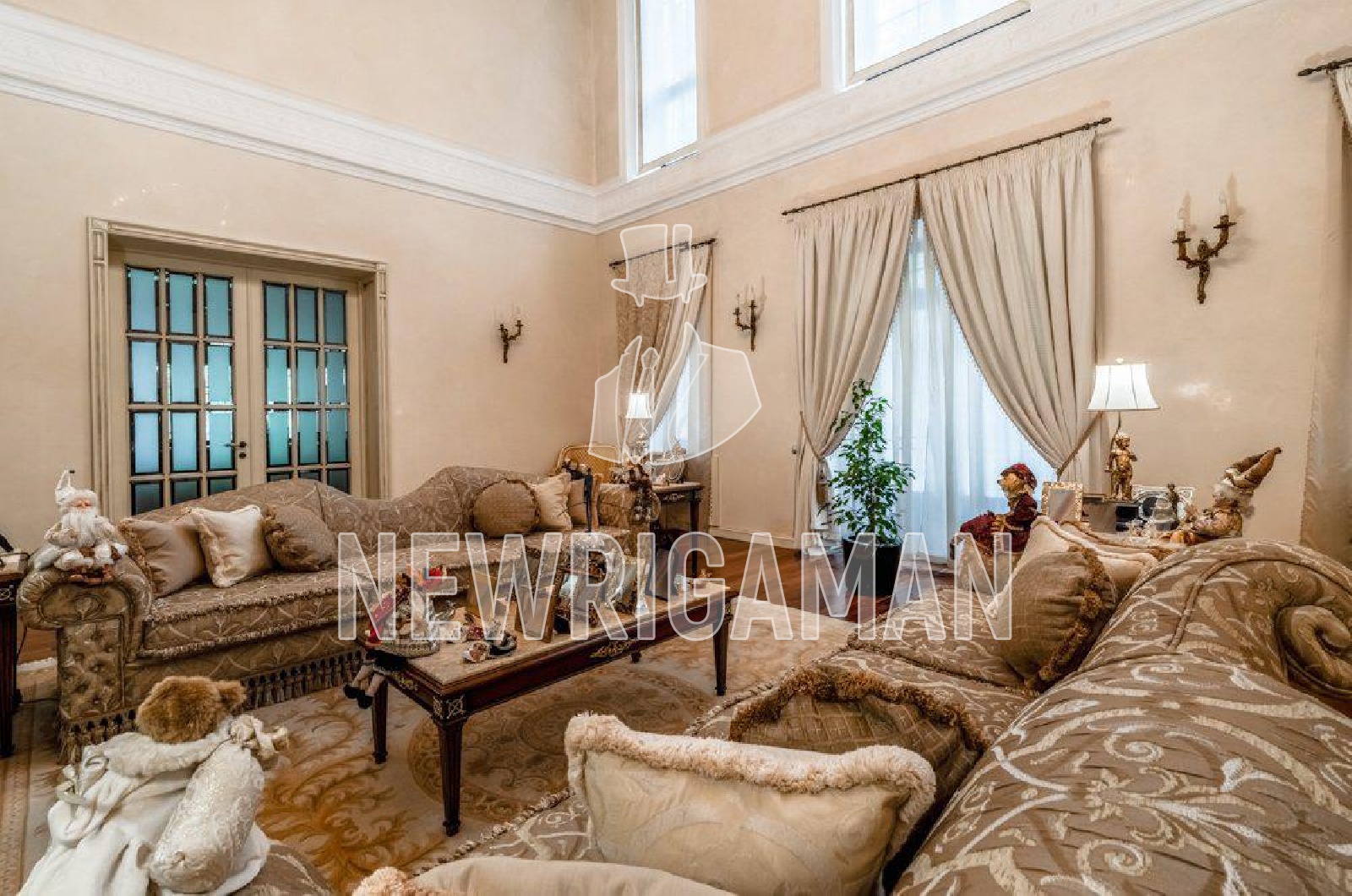 потолка 8 метров) и выходом на террасу, домашний кинотеатр, столовая, кухня,